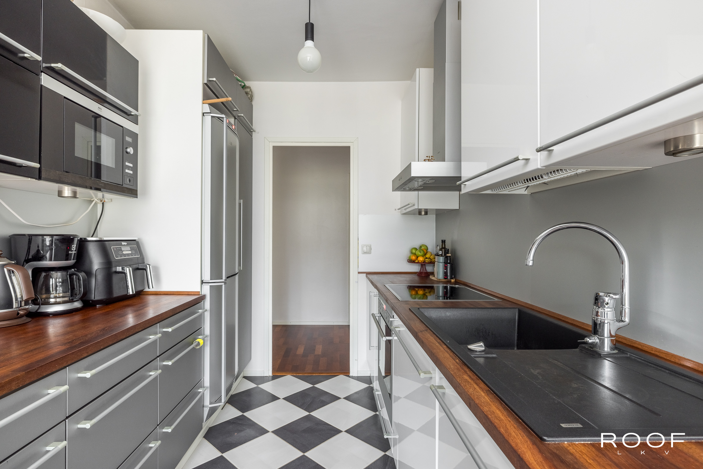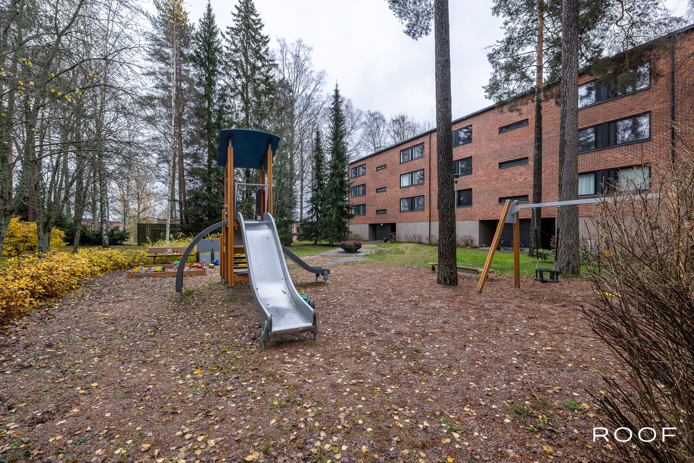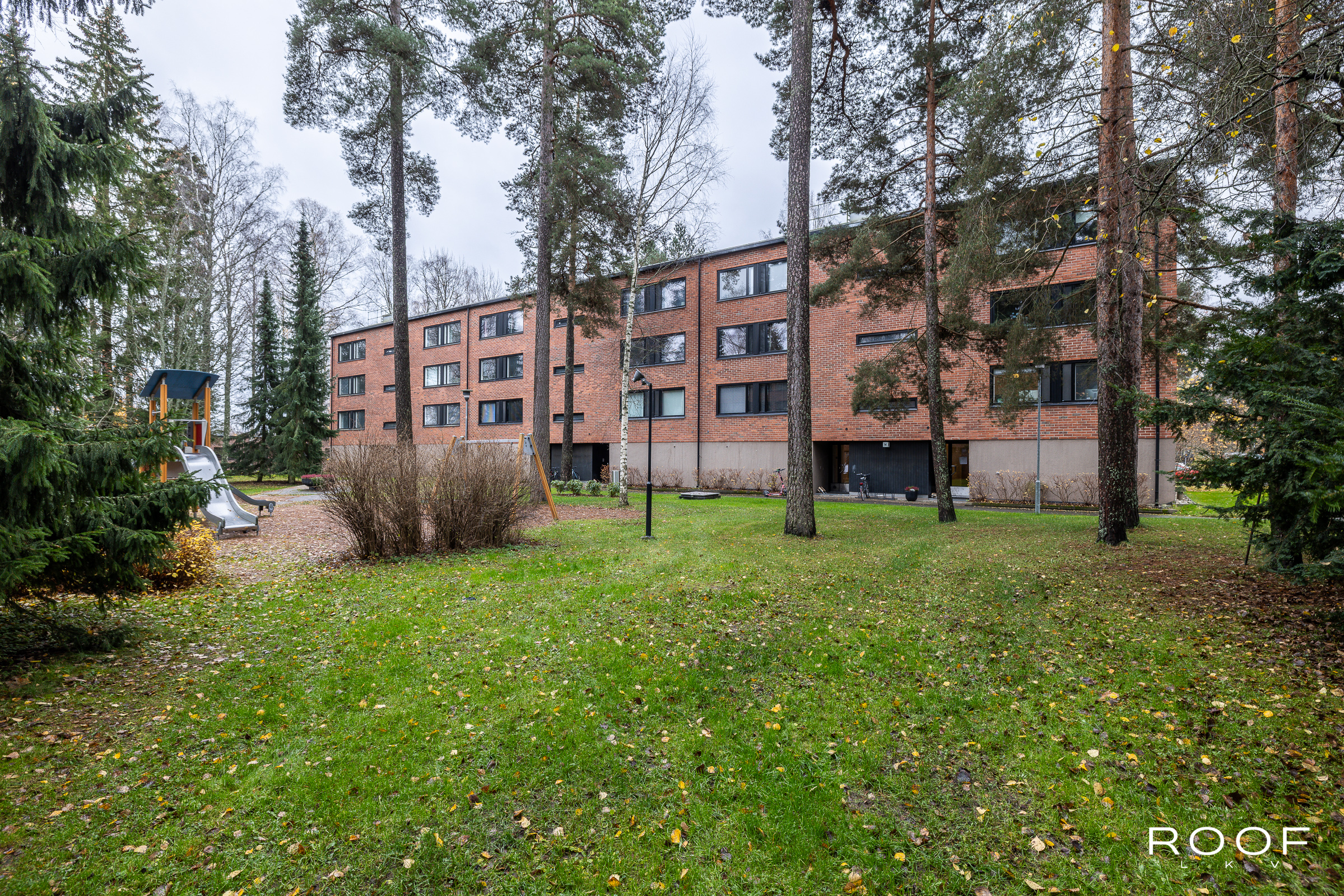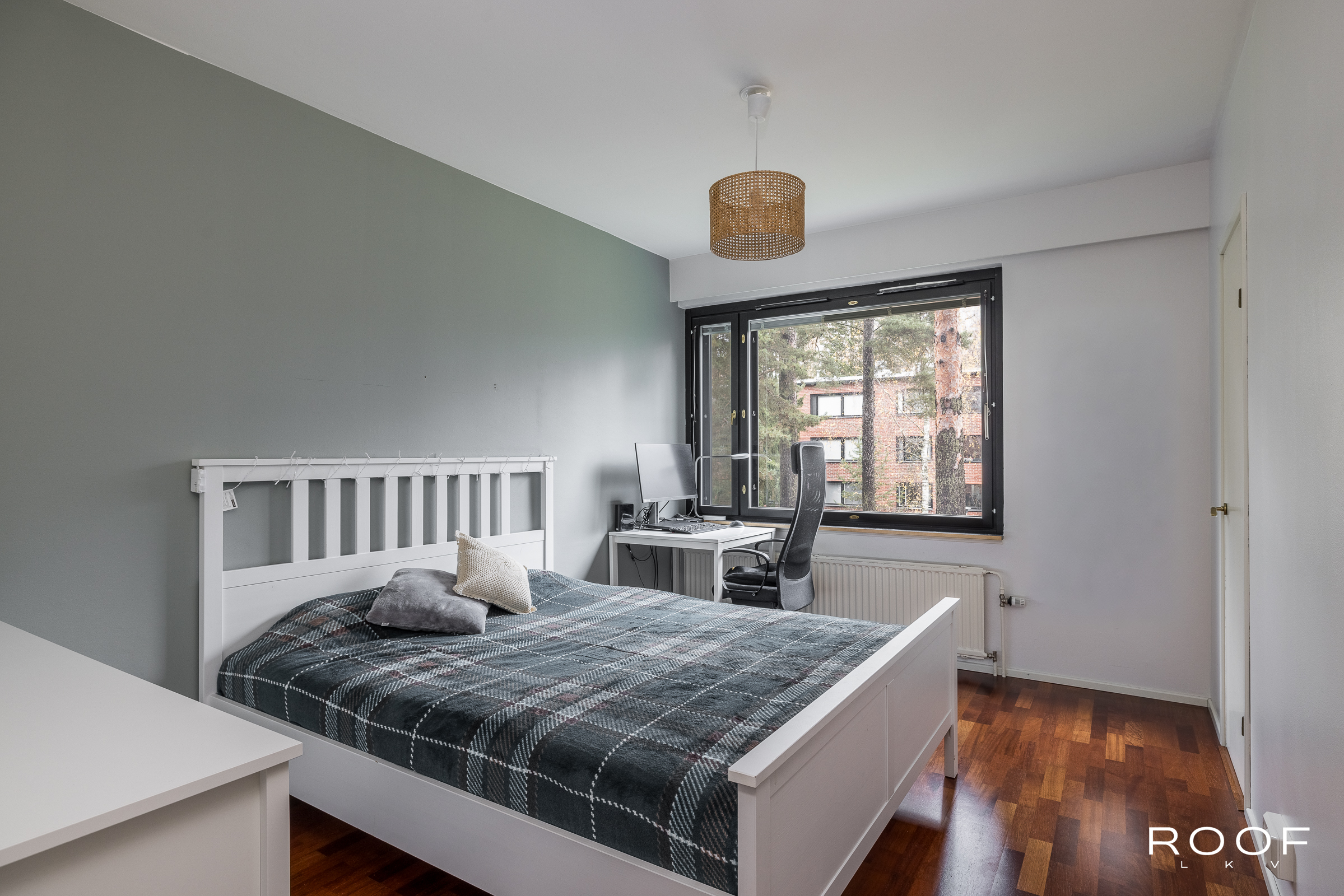 Tässä kodissa katseen vangitsijana on Merbau-puu, jota on käytetty tyylikkäästi lattiamateriaalina sekä keittiön työtasossa. Kodin pinnat on siistissä kunnossa. Keittiössä on reilusti lasku- ja säilytystilaa, ruokailupöydän saat mahtumaan keittiöön ja suuremman ruokailuryhmän saa halutessaan olohuoneen puolelle. Osassa asunnoissa on avattu keittiön ja olohuoneen välinen seinä, jolloin on mahdollista saada avokeittiö. Kylpyhuone on uusittu linjasaneerauksen yhteydessä, kylpyhuoneeseen on valittu astetta laadukkaammat materiaalit. Olohuoneesta on käynti lasitetulle eteläparvekkeelle. Molemmat makuuhuoneet ovat tilavia, toisessa makuuhuoneessa on vaatehuone.
