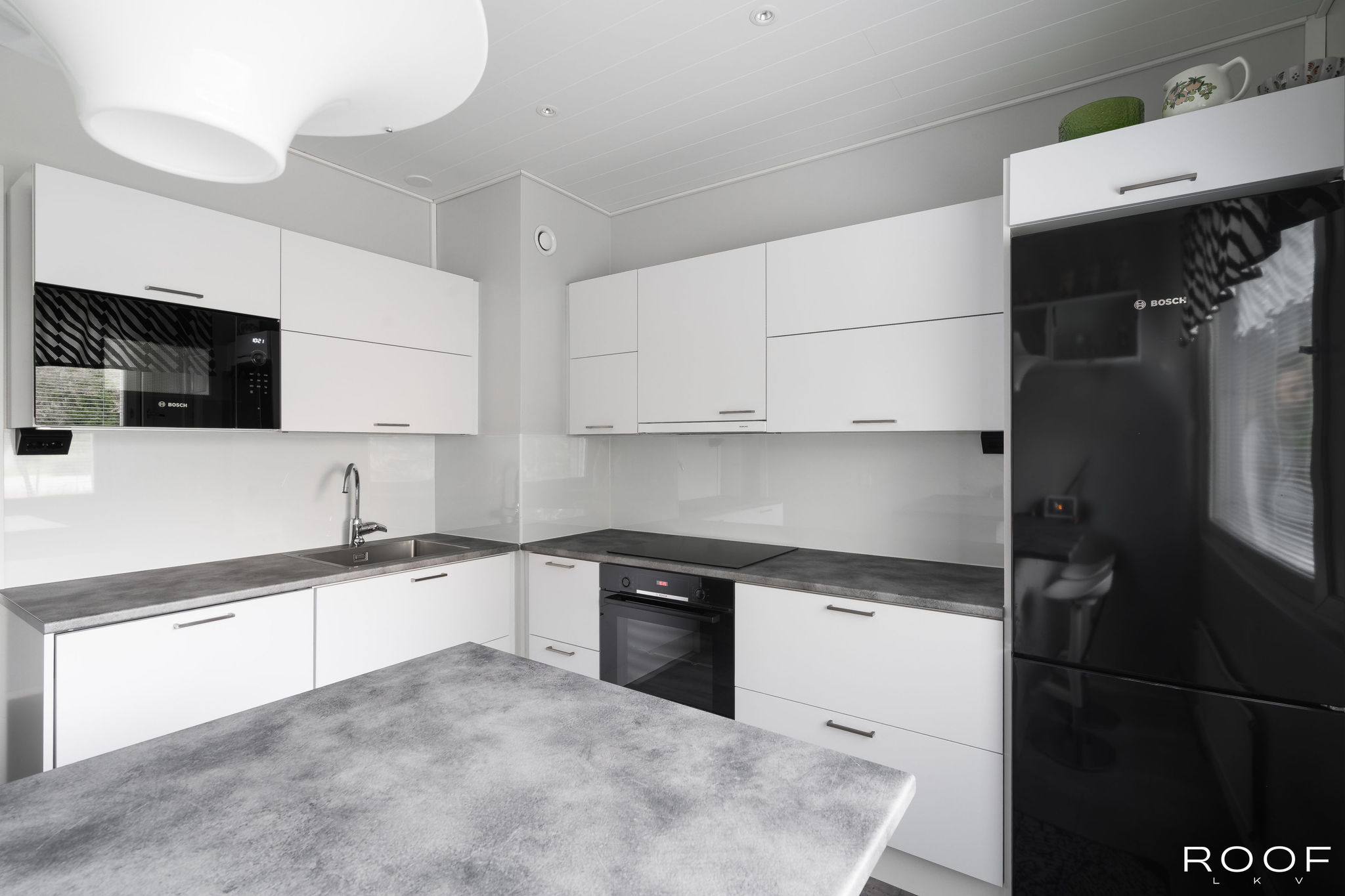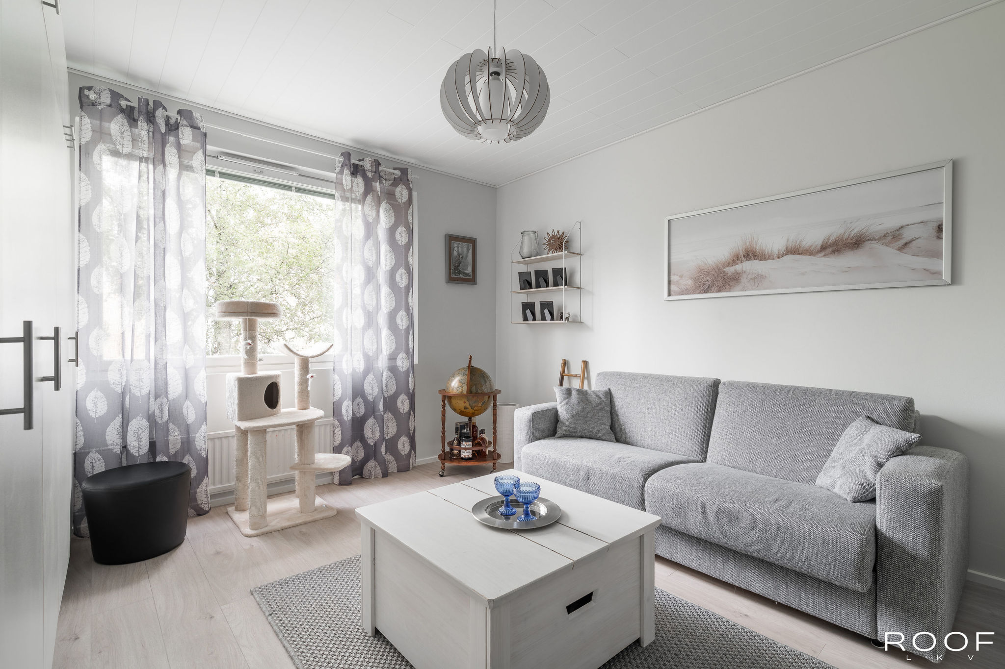 Siisti ja tilava koti, mikä on remontoitu viime vuonna laajalti. Kaikki katot on paneloitu. Paneleihin on upotettu valoja. Kaikki seinät on maalattu tai tapetoitu, kylpyhuoneen seinät kaakeloitu. Lattioille on asennettu laminaatti ja kylpyhuoneeseen laatta ja sen alle asennettu lattialämmitys. Toisessa makuuhuoneessa on isohko vaatehuone ja toisessa koko seinän pituudelta kaapistoa. Asunnon ulko-oven sisäovi on äänieristetty ovi, ja tältä osin pitää rappukäytävän äänet pois asunnosta. Parveke on siisti ja lasitettu. Tämä on todellakin muuttovalmis koti.