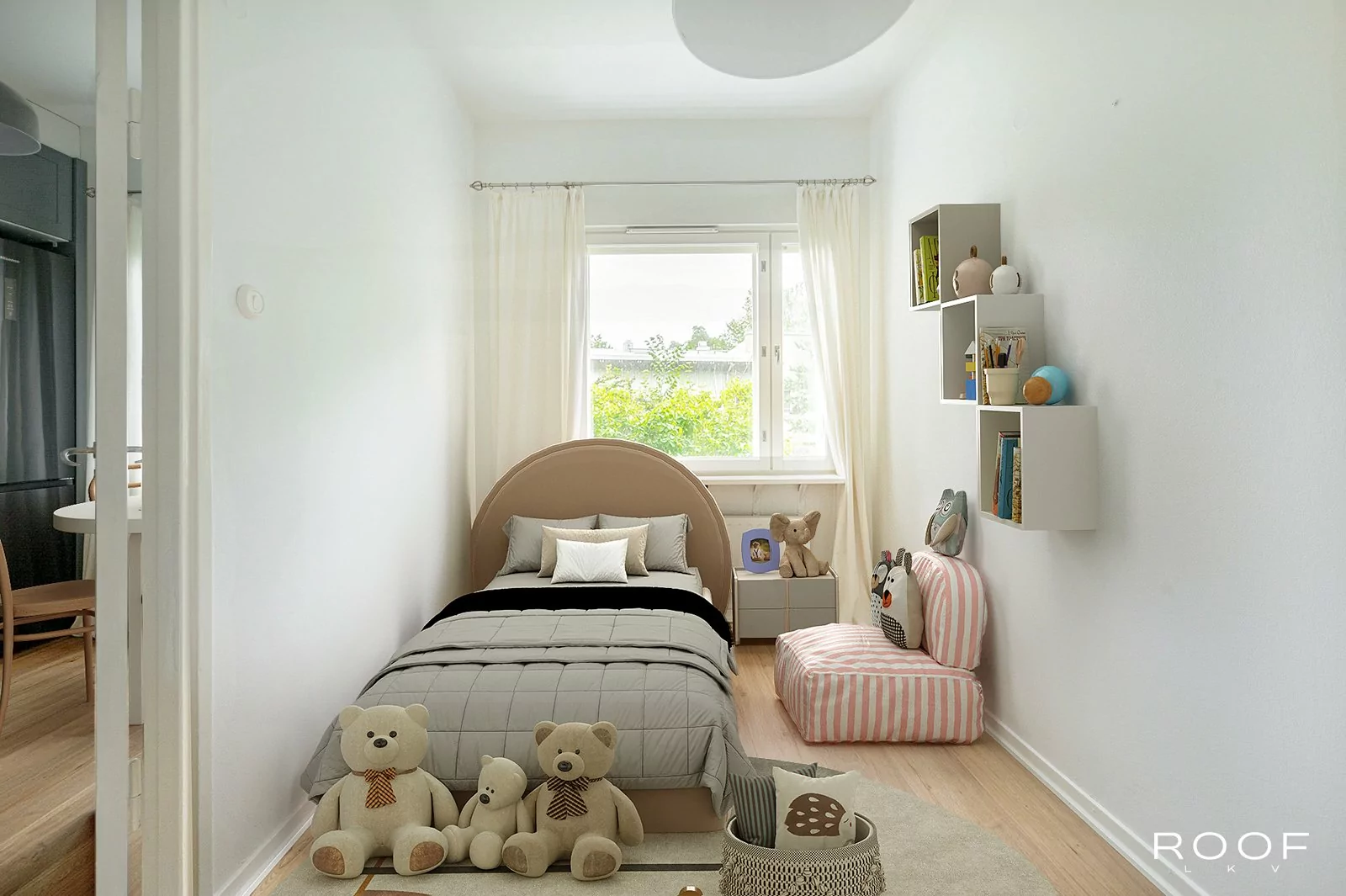 Olohuone on tilava ja valoisa, josta on uloskäynti parvekkeelle sekä yhteen makuuhuoneista. Tilaan mahtuu suurikin sohvaryhmä sekä perhe ystävineen.