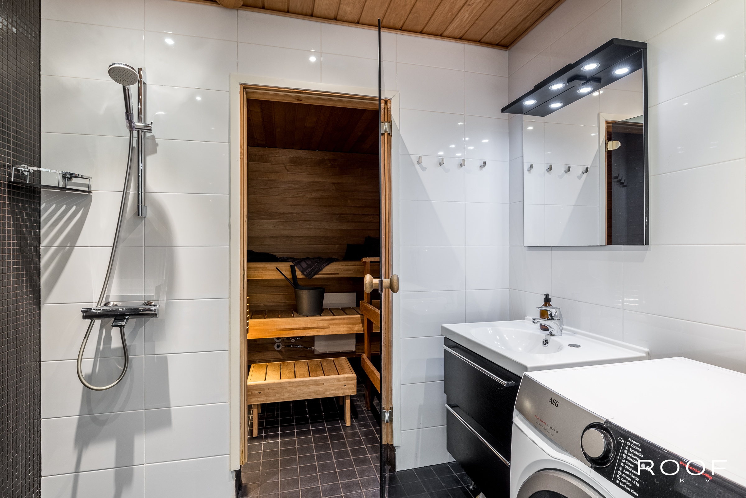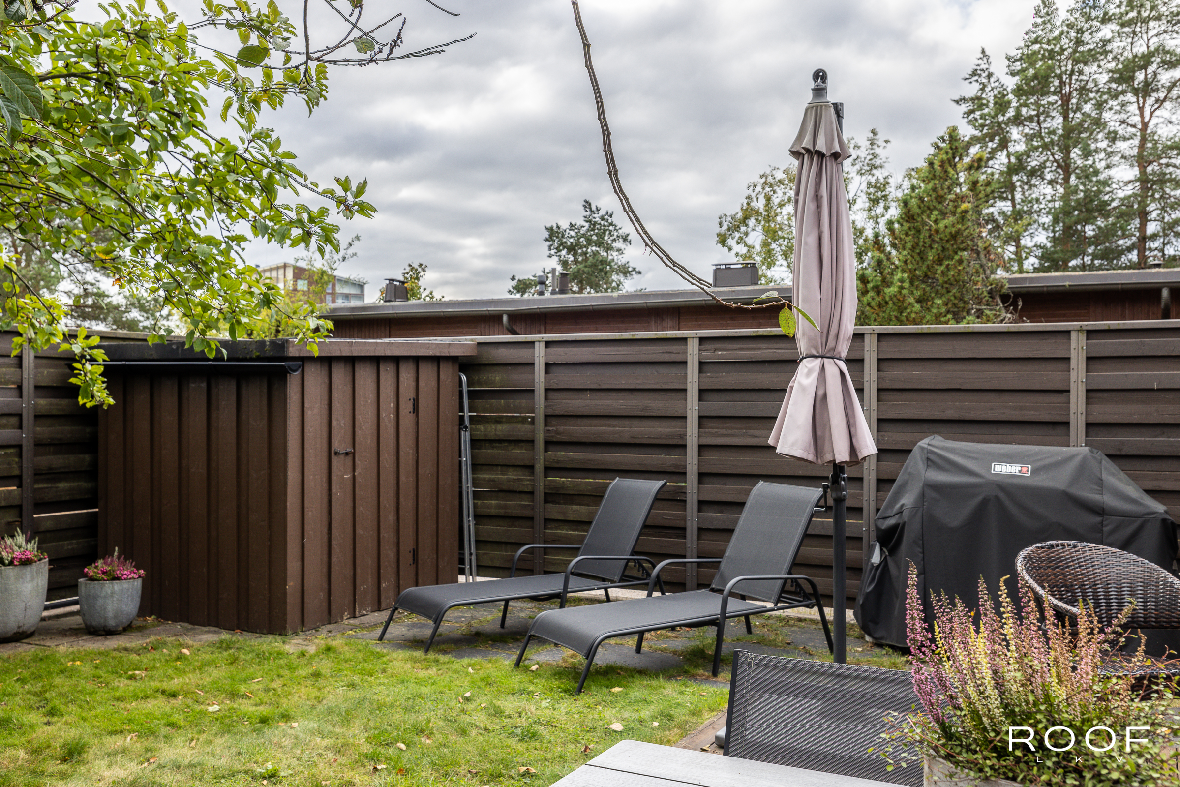 Saunassa rentoudut omassa rauhassa, ja arkea helpottaa erillinen wc. Kaiken kruunaa vehreä, aurinkoinen etelään avautuva piha – täydellinen paikka nauttia kesäpäivistä, grillata tai vain levähtää.