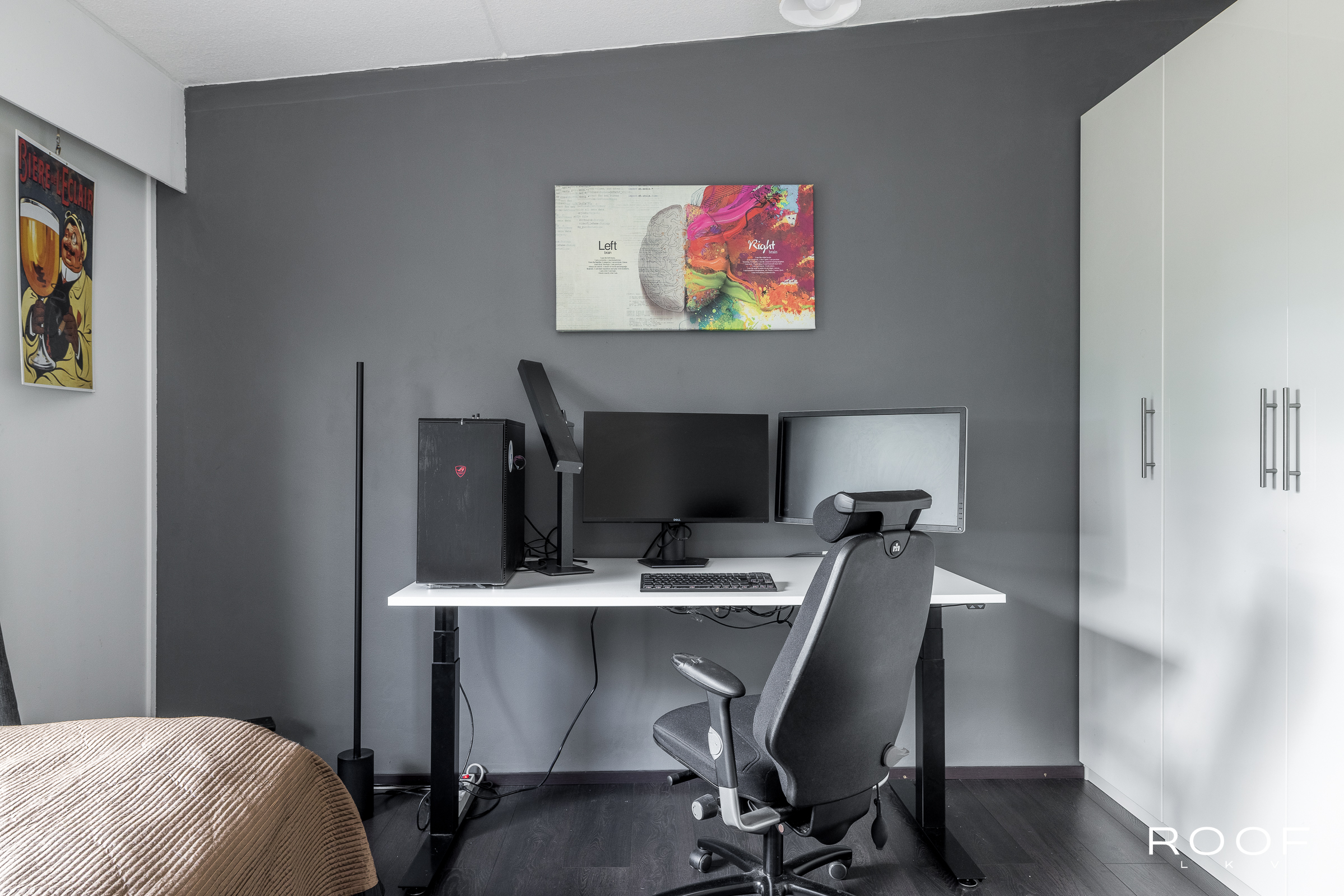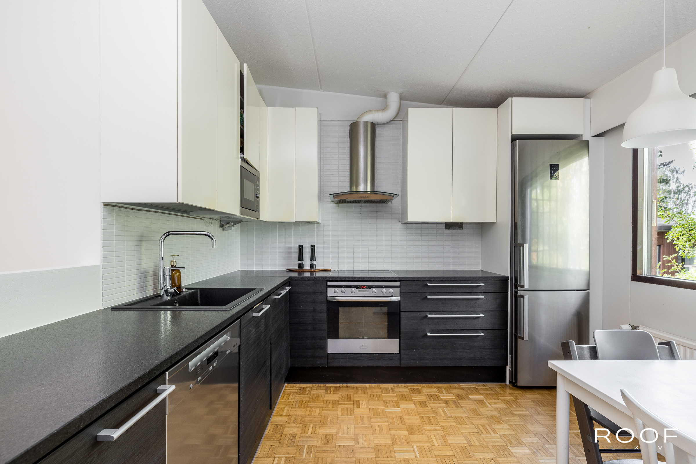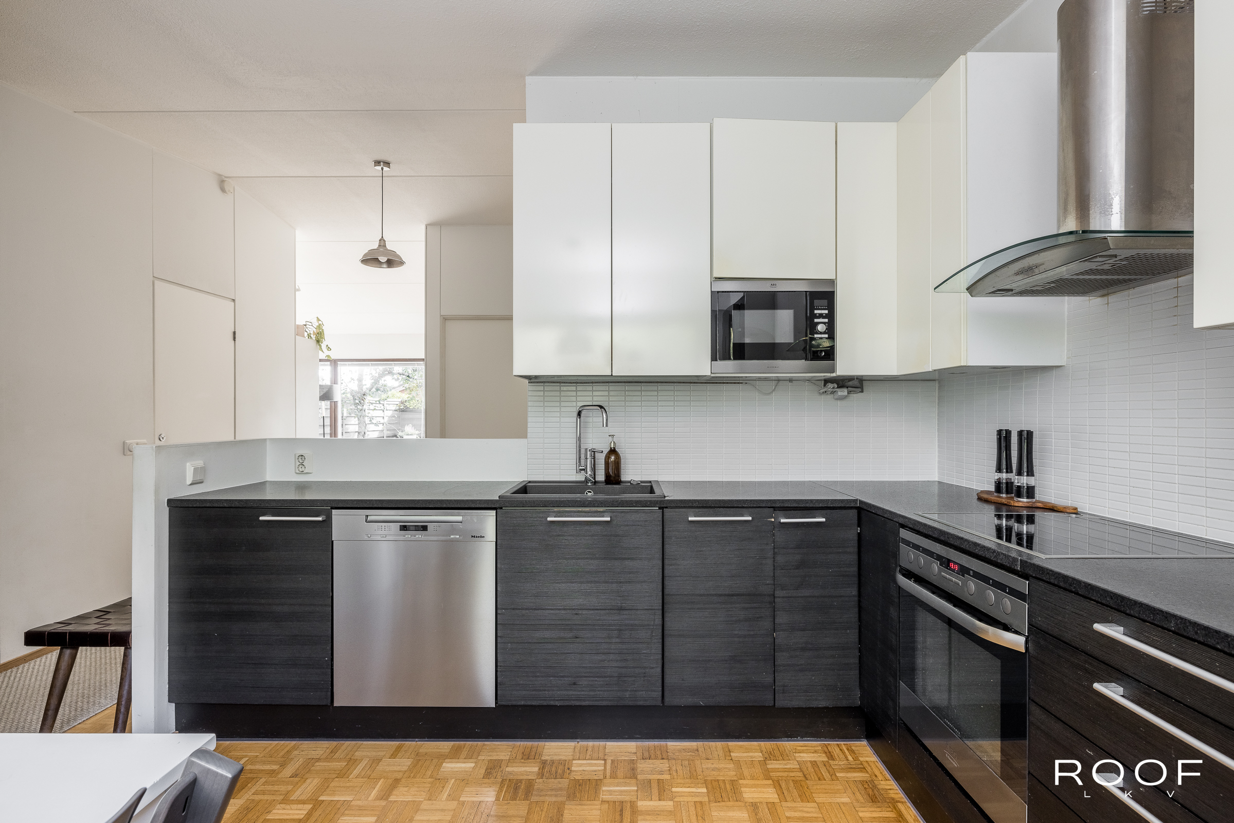 Huoneistossa on kaksi makuuhuonetta, jotka soveltuvat erinomaisesti niin perhekäyttöön kuin työ- tai vierashuoneeksi. Keittiö sekä kylpyhuoneet on remontoitu hyvällä maulla vuonna 2010 – tilat ovat tyylikkäät ja käytännölliset.