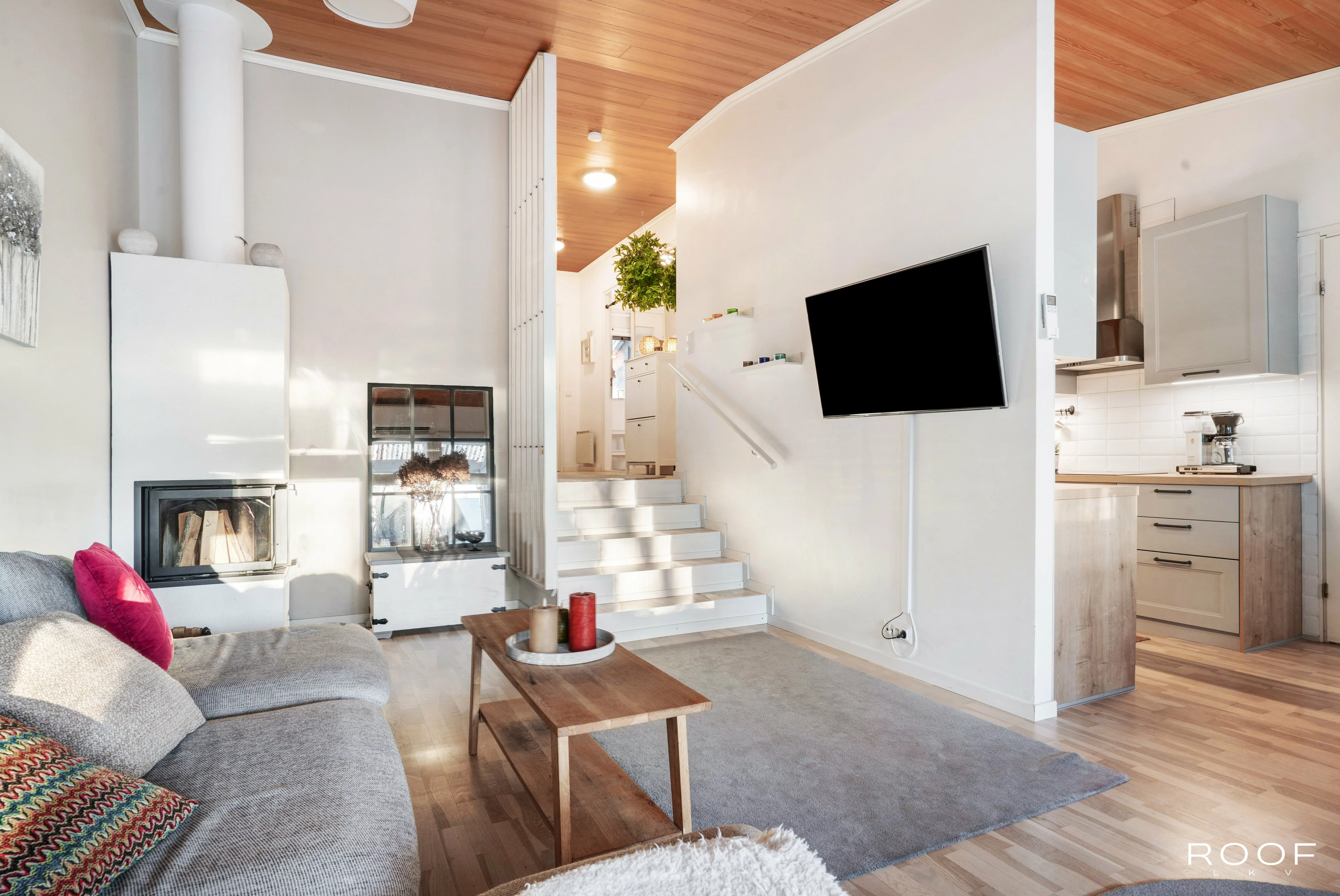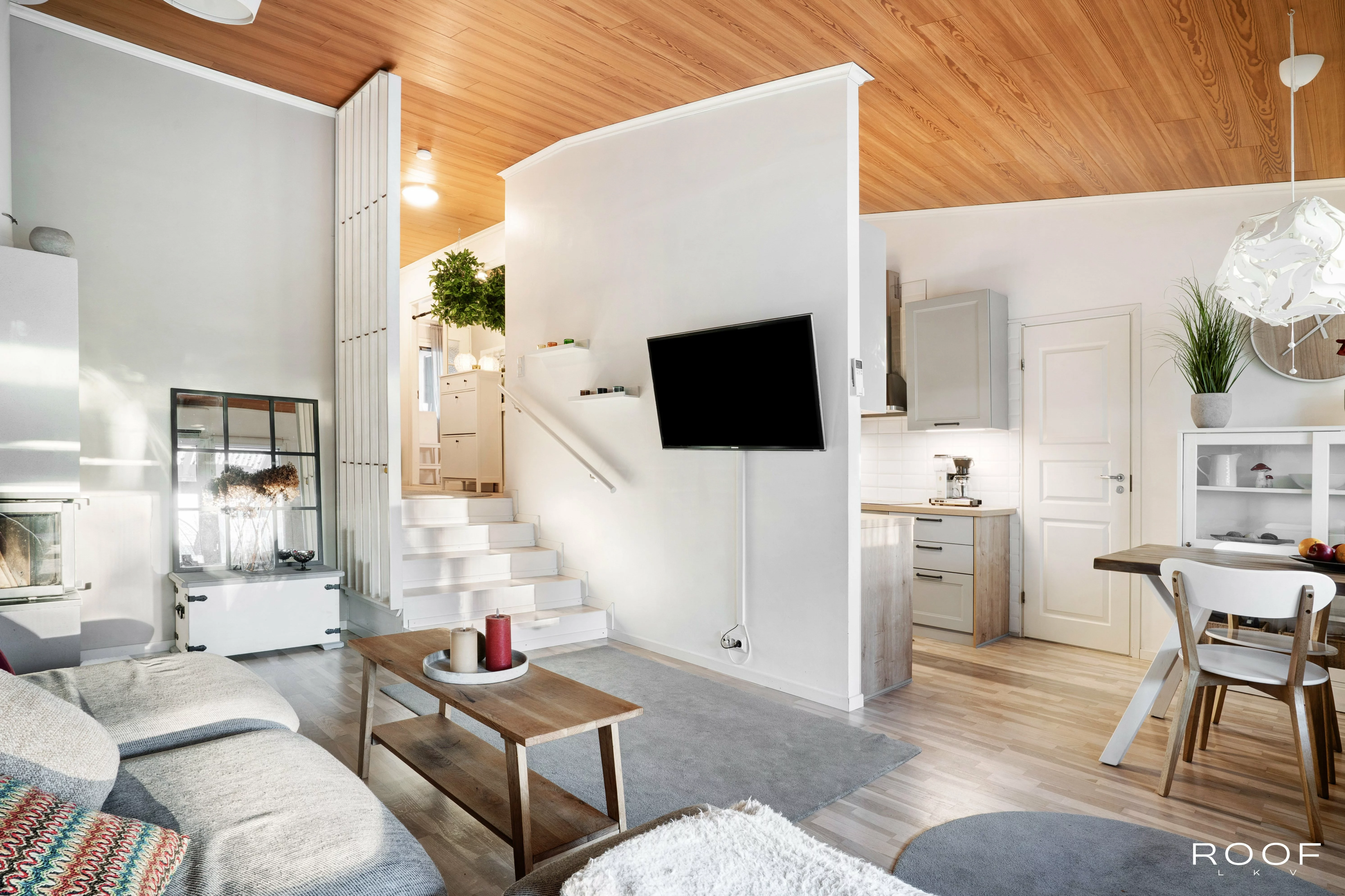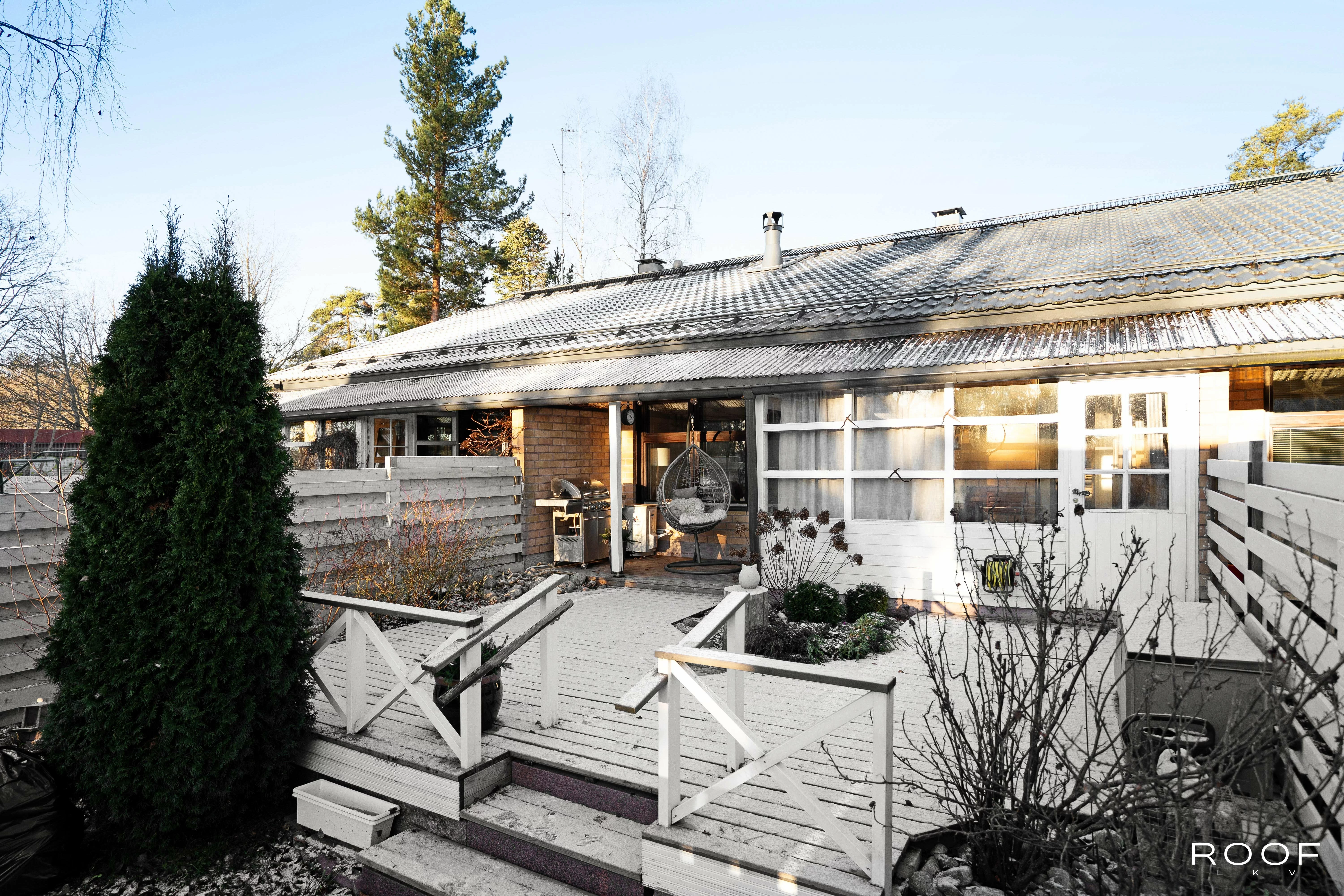Kodissa on kaksi makuuhuonetta, olohuone ja keittiö sekä kylpyhuone ja sauna. Lisäksi erillinen WC, kodinhoitohuone ja oma varasto tuovat arkeen toimivuutta. Olohuoneen yhteydessä on lasitettu terassi ja suojaisa piha. Vino katto ja tasoero lisäävät tilan tuntua. Parkkipaikka sijaitsee ulko-oven vieressä.