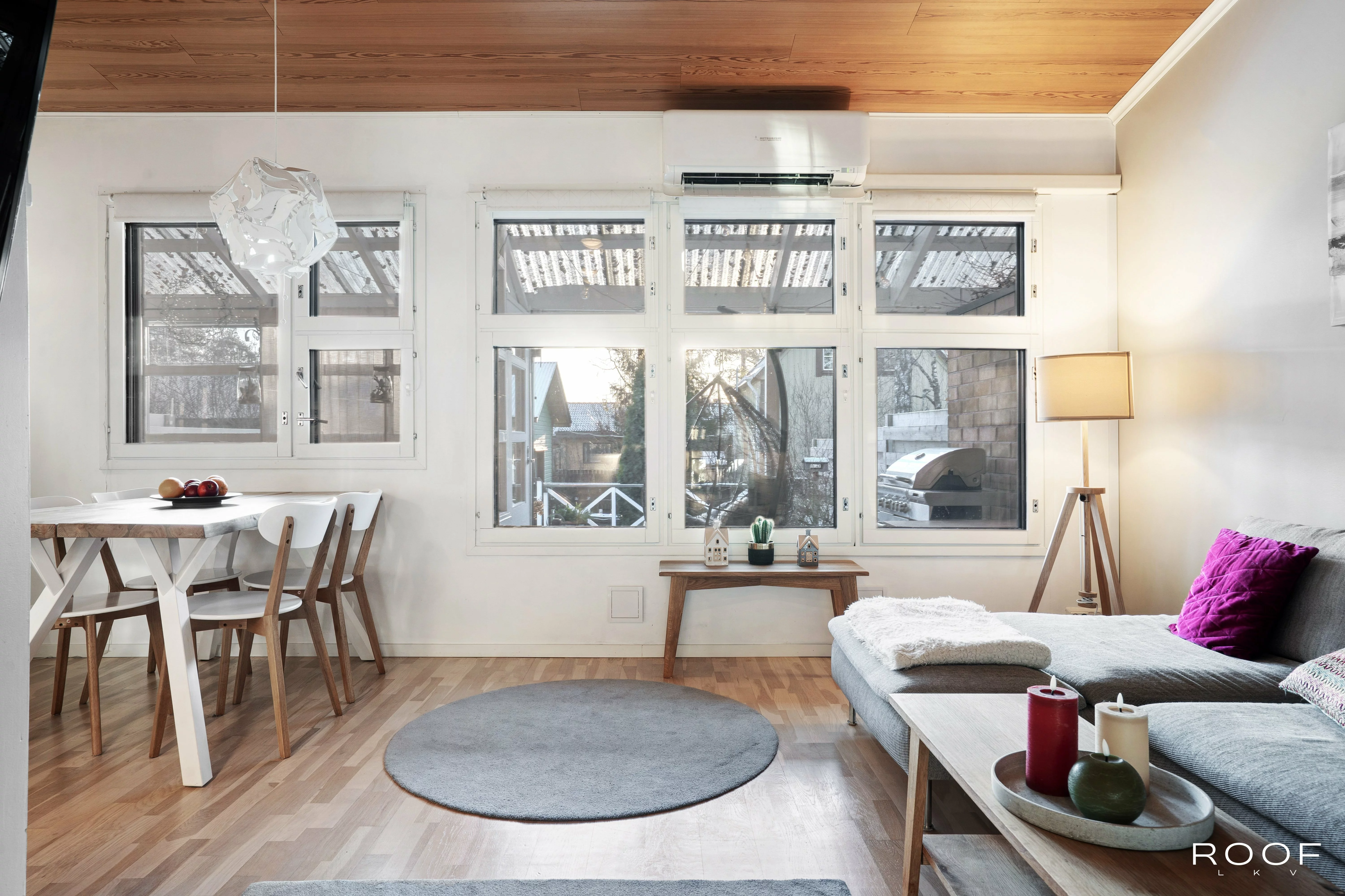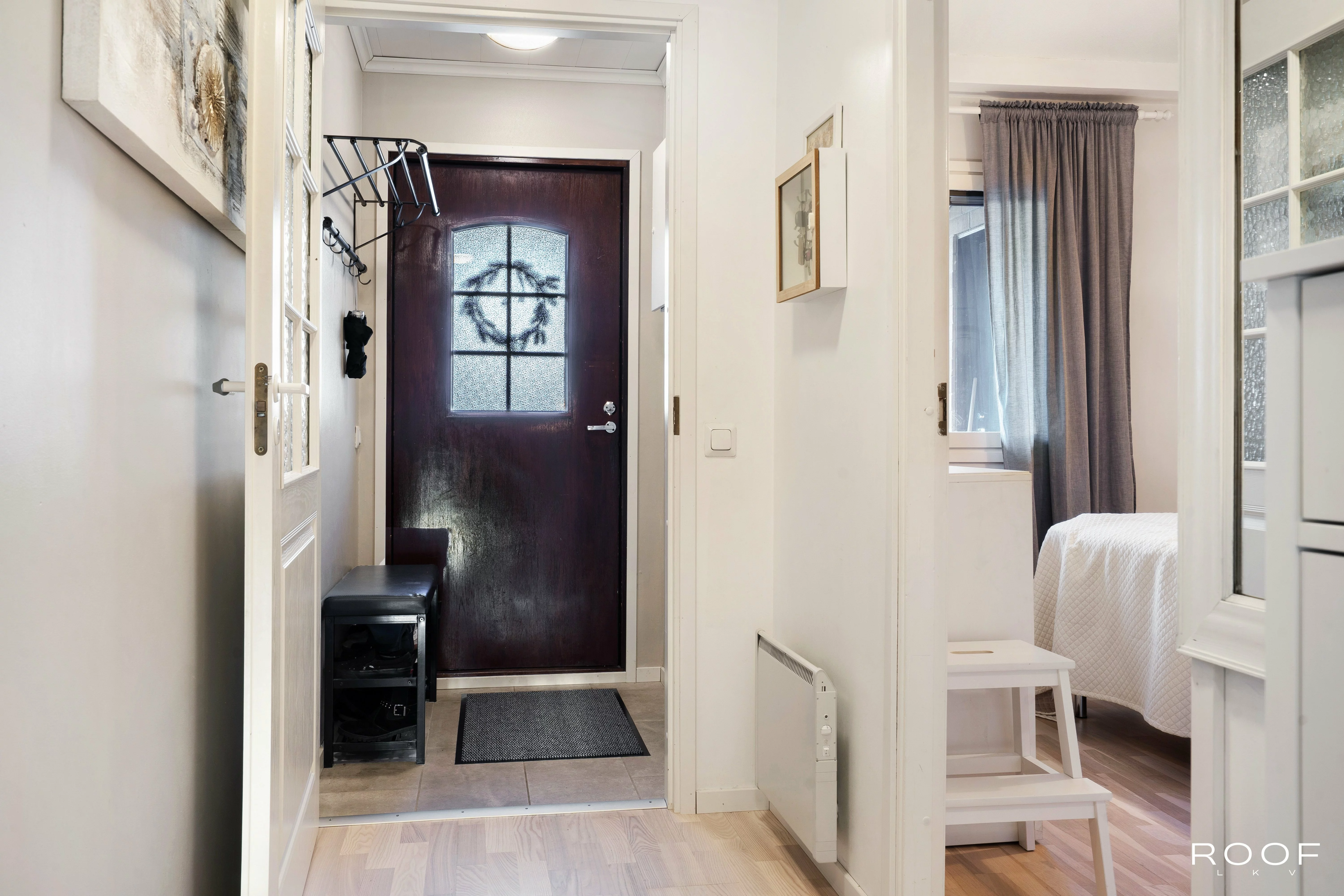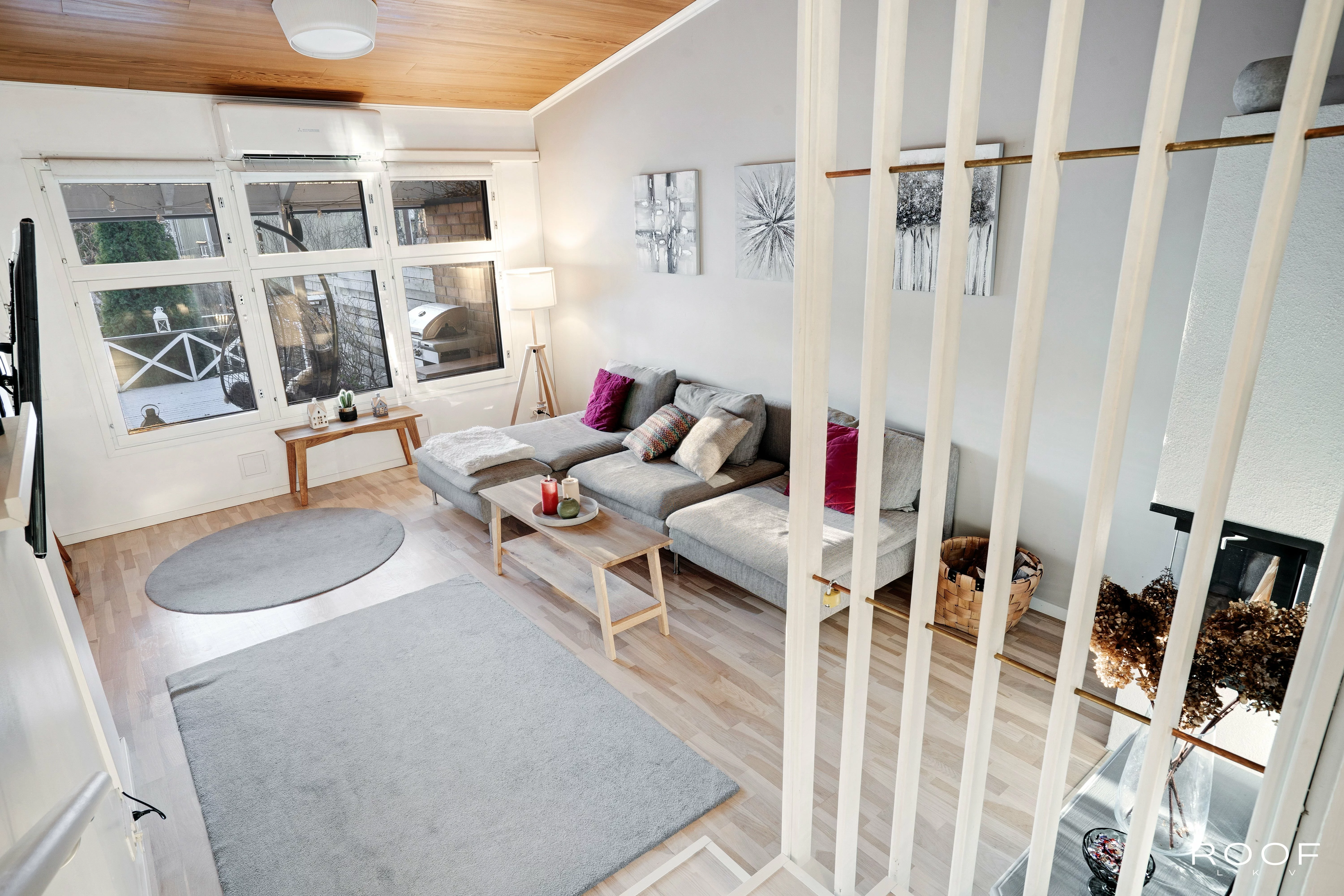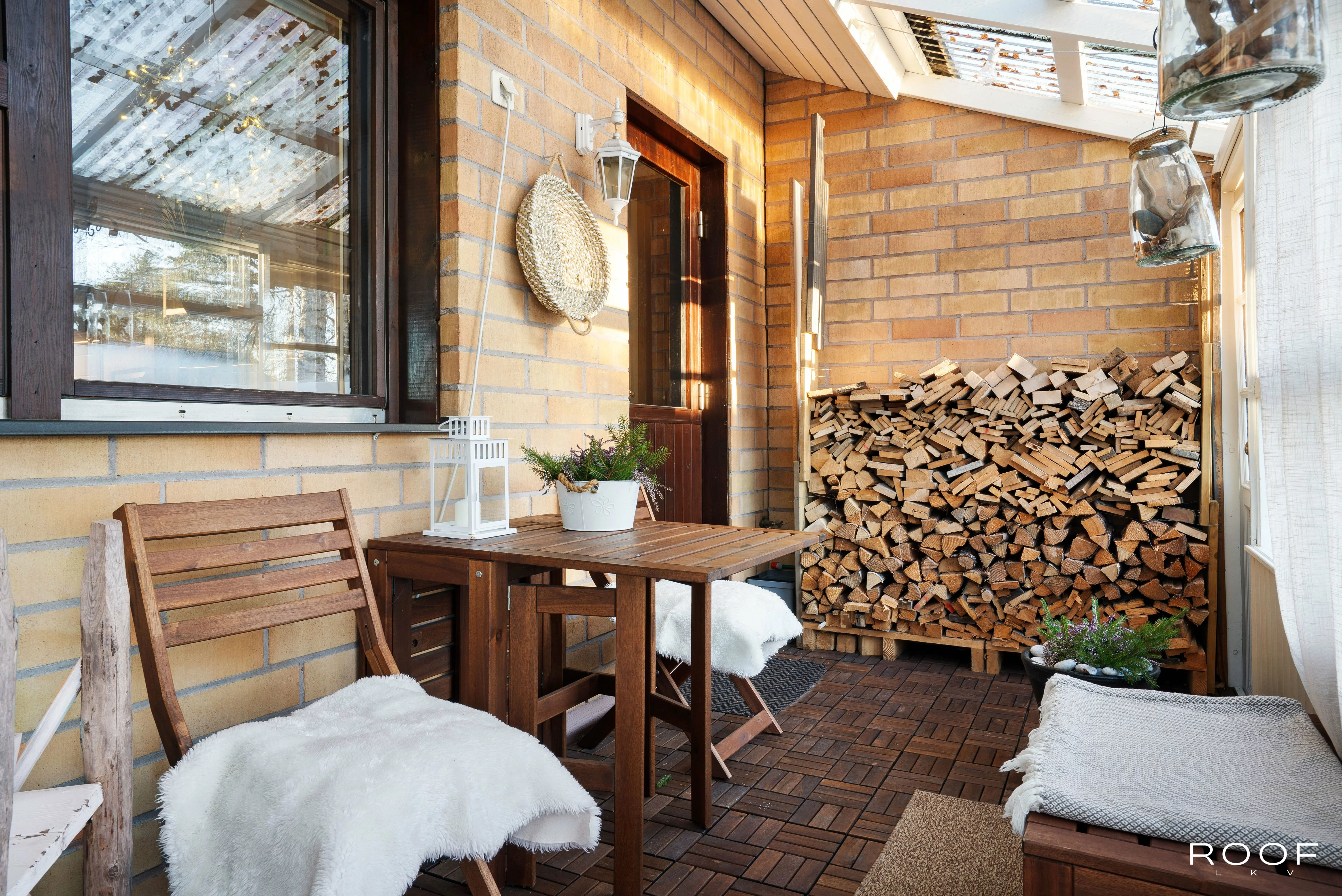 Kodissa on kaksi makuuhuonetta, olohuone ja keittiö sekä kylpyhuone ja sauna. Lisäksi erillinen WC, kodinhoitohuone ja oma varasto tuovat arkeen toimivuutta. Olohuoneen yhteydessä on lasitettu terassi ja suojaisa piha. Vino katto ja tasoero lisäävät tilan tuntua. Parkkipaikka sijaitsee ulko-oven vieressä.