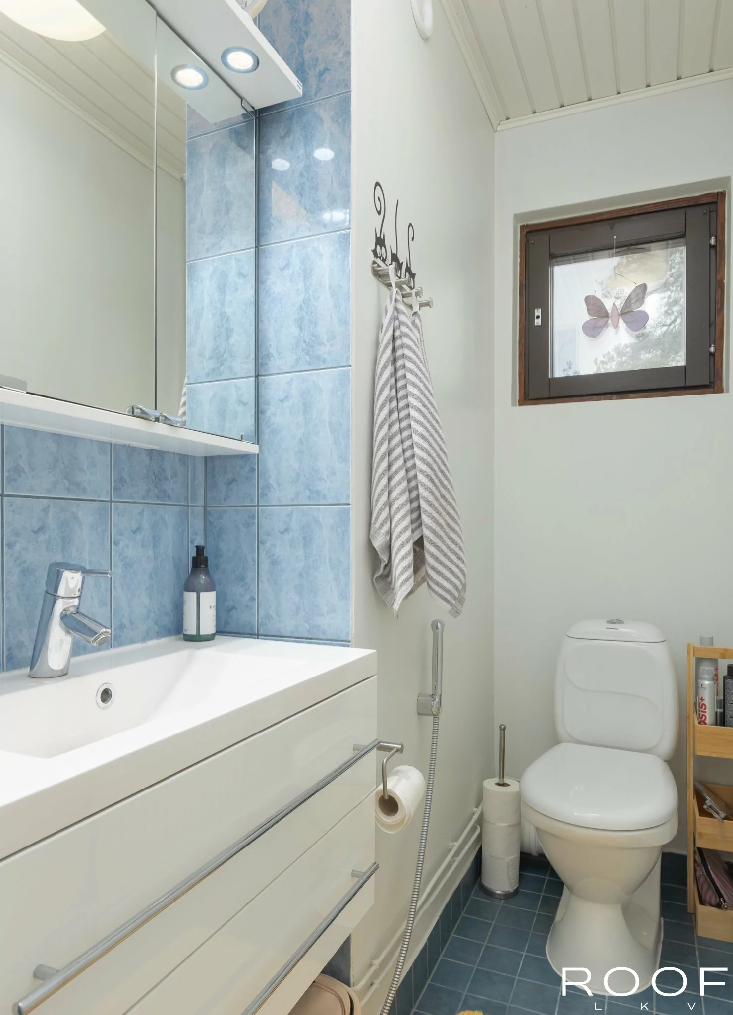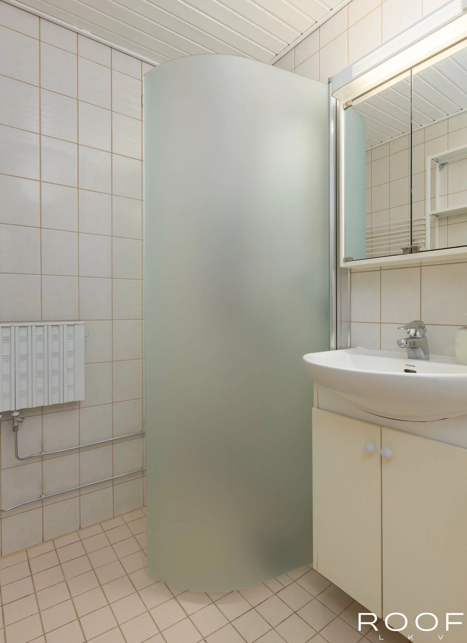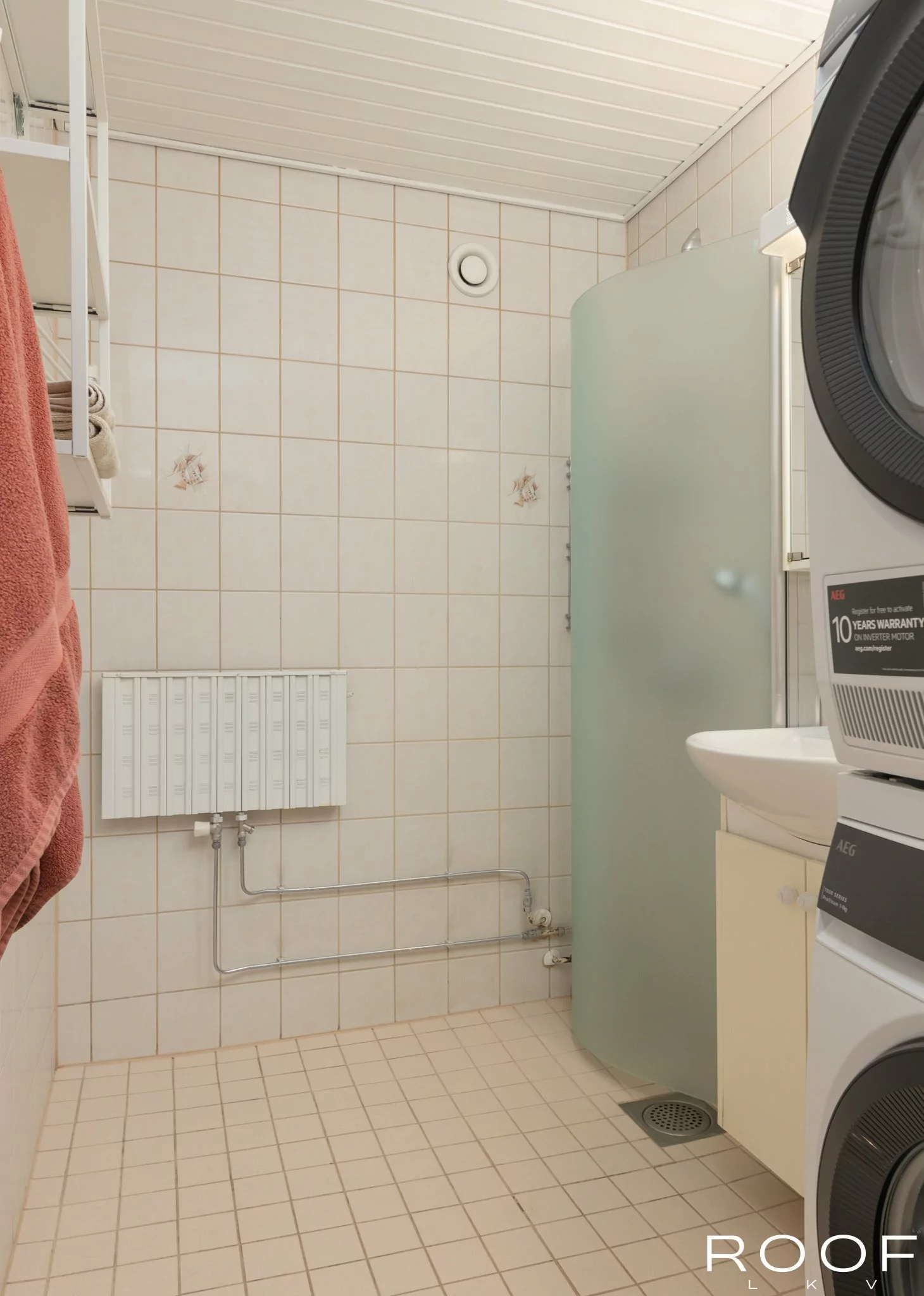 Asunnossa on erillinen wc ja kylpyhuone, jossa on paikka pesutornille.