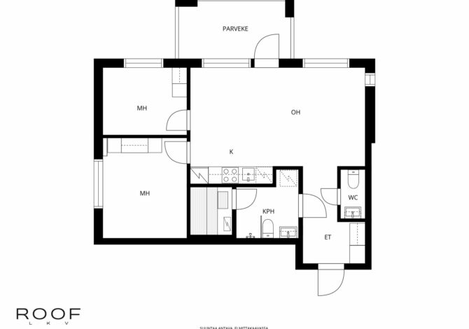 kerrostalo, 3h, k, s, kph, 2 wc, lasitettu parveke (YJ mukaan 3h+kt+s)