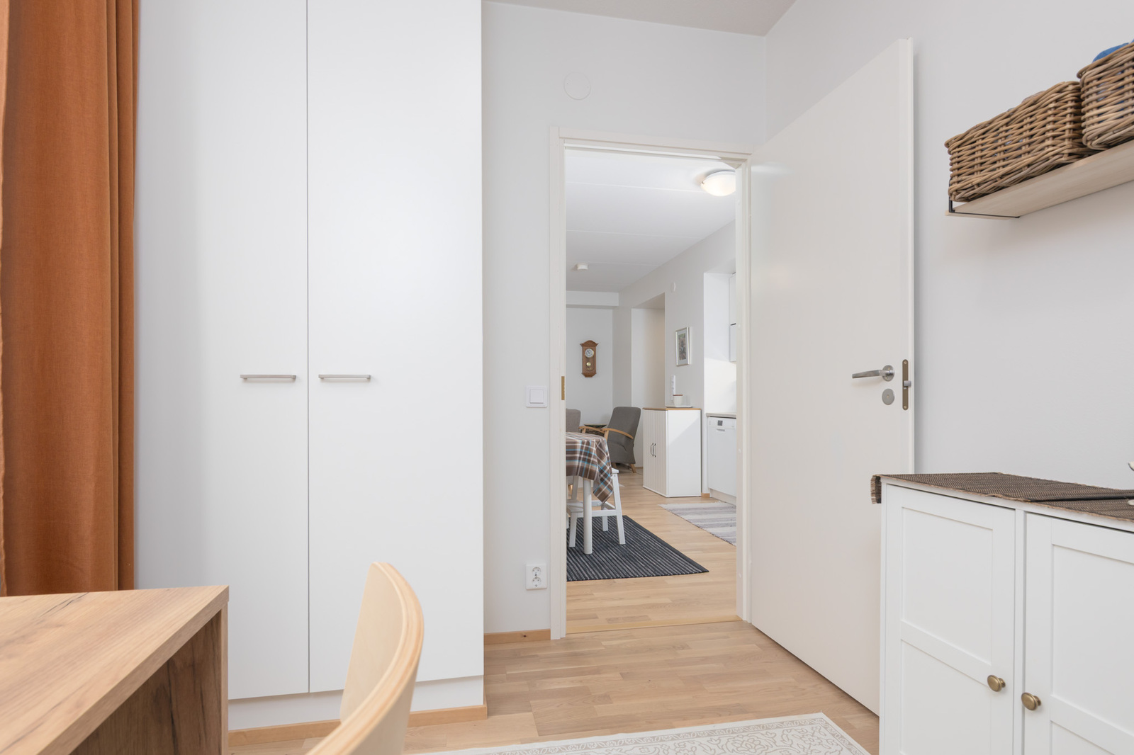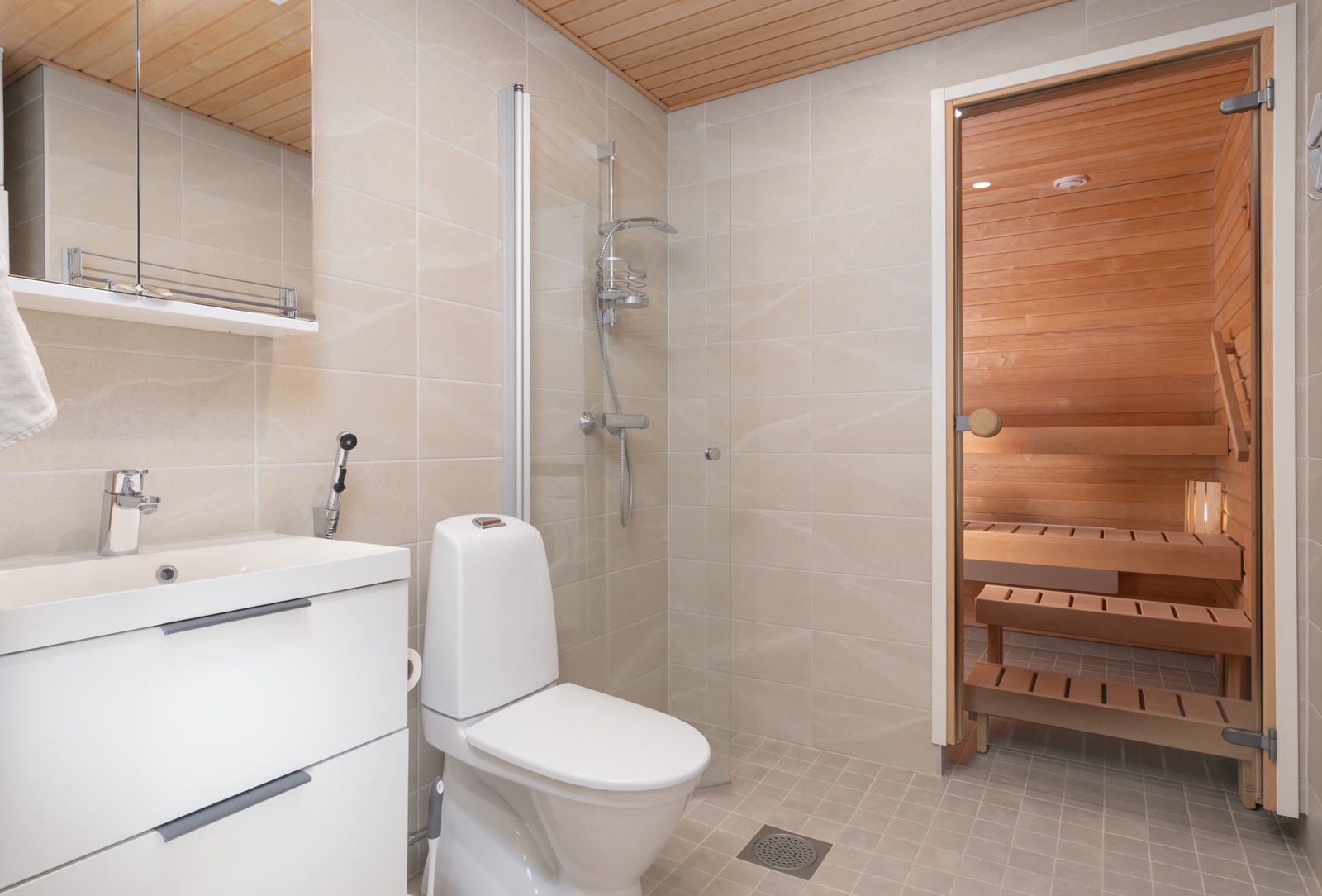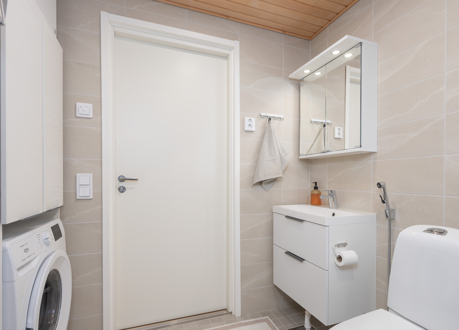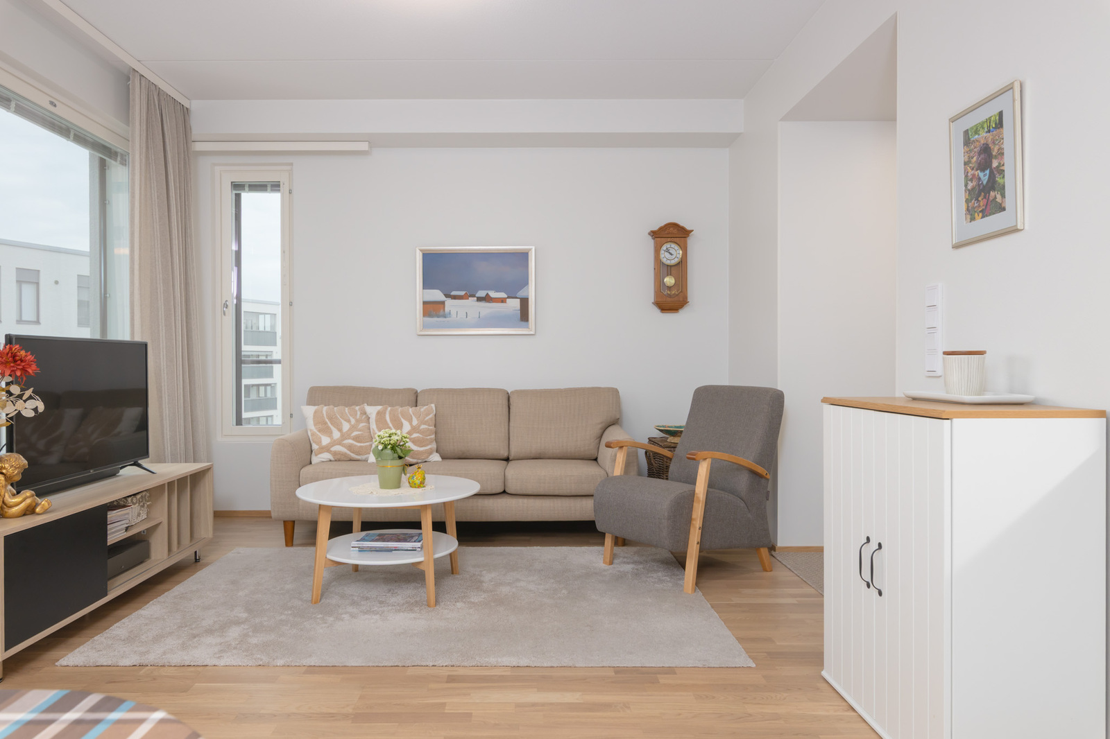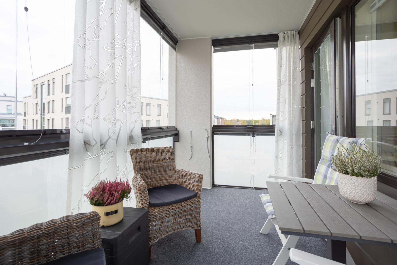 Tämä hissitalon ylimmässä kerroksessa sijaitseva asunto tarjoaa toimivan ja selkeän pohjaratkaisun. Avoin olohuoneen, ruokailutilan ja keittiön yhdistelmä muodostaa asunnon keskipisteen. Huoneistossa on kaksi WC:tä, joista toinen on erillinen ja toinen kylpyhuoneen yhteydessä. Oma sauna tarjoaa arkeen mukavuutta. Tilava, lasitettu parveke tuo lisäneliöitä ympäri vuoden.