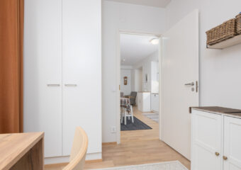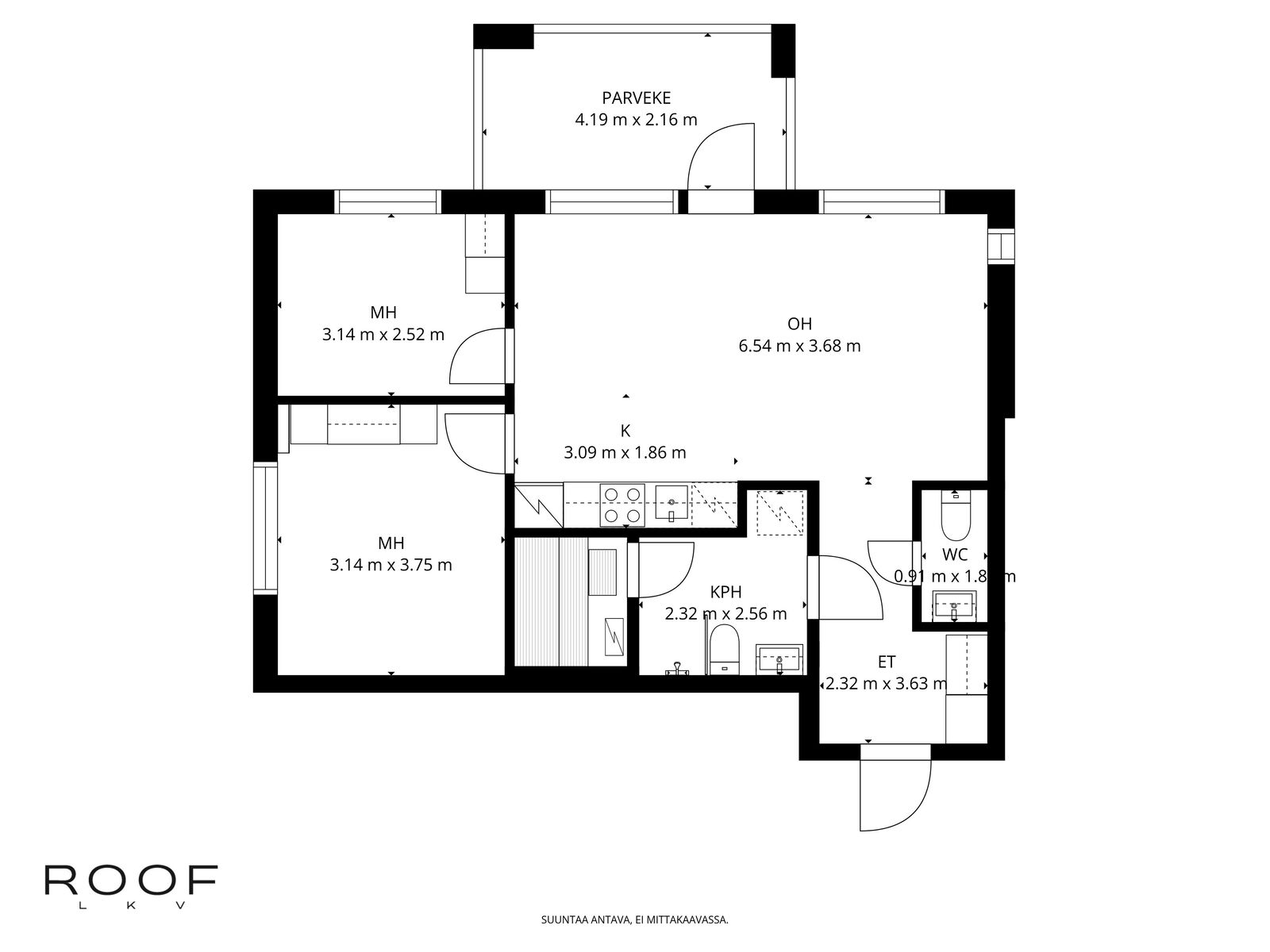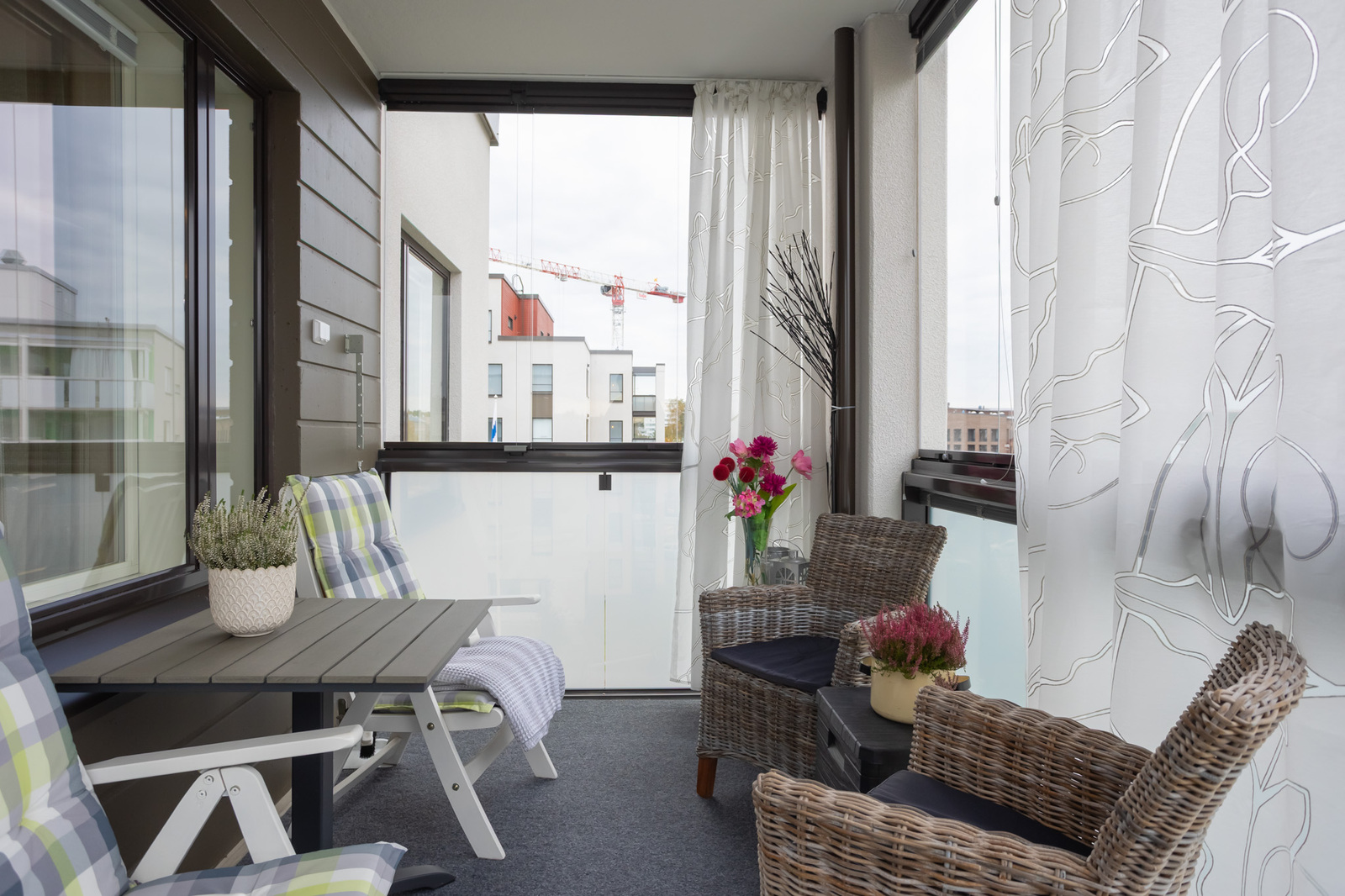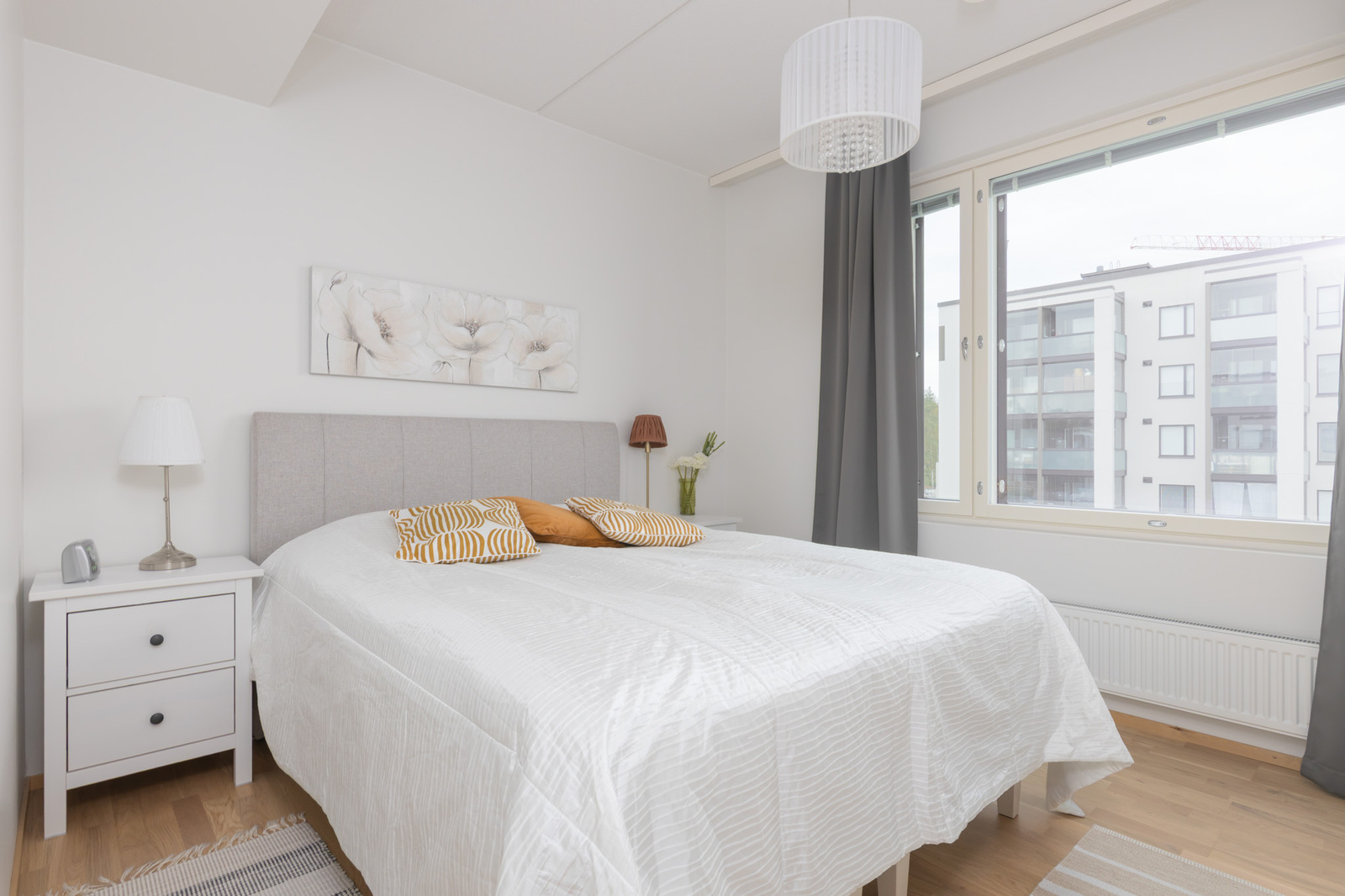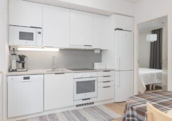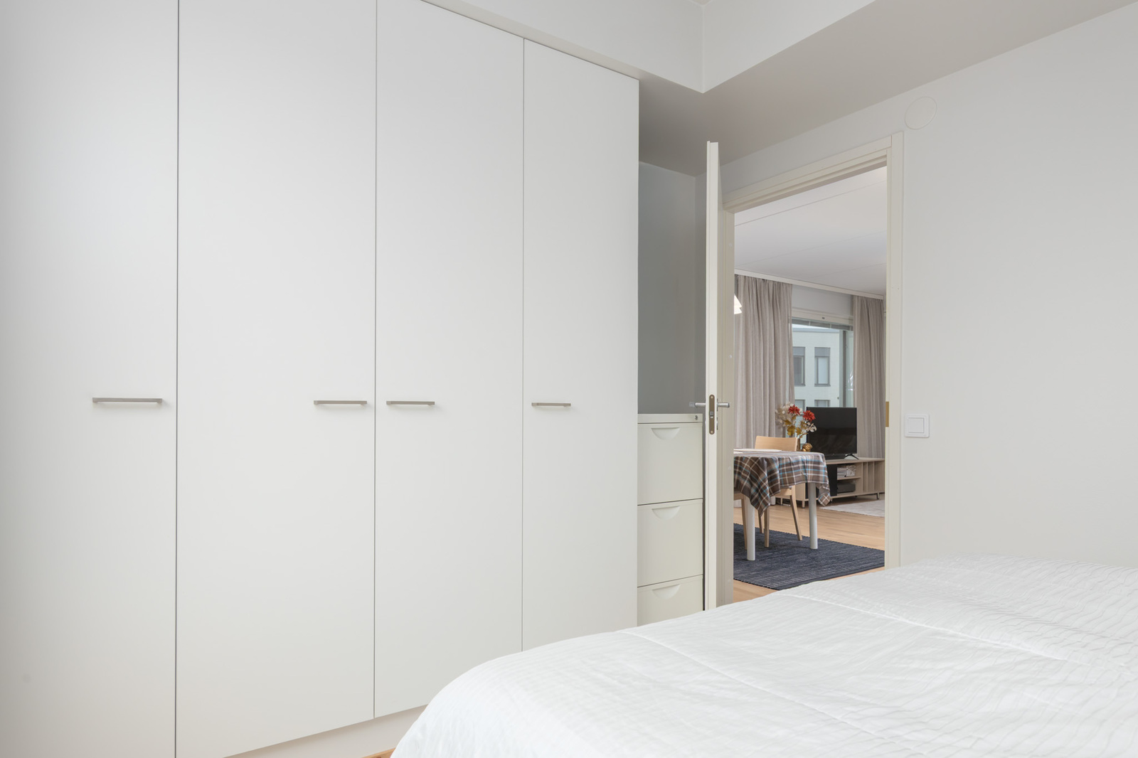 Tämä hissitalon ylimmässä kerroksessa sijaitseva asunto tarjoaa toimivan ja selkeän pohjaratkaisun. Avoin olohuoneen, ruokailutilan ja keittiön yhdistelmä muodostaa asunnon keskipisteen. Huoneistossa on kaksi WC:tä, joista toinen on erillinen ja toinen kylpyhuoneen yhteydessä. Oma sauna tarjoaa arkeen mukavuutta. Tilava, lasitettu parveke tuo lisäneliöitä ympäri vuoden.