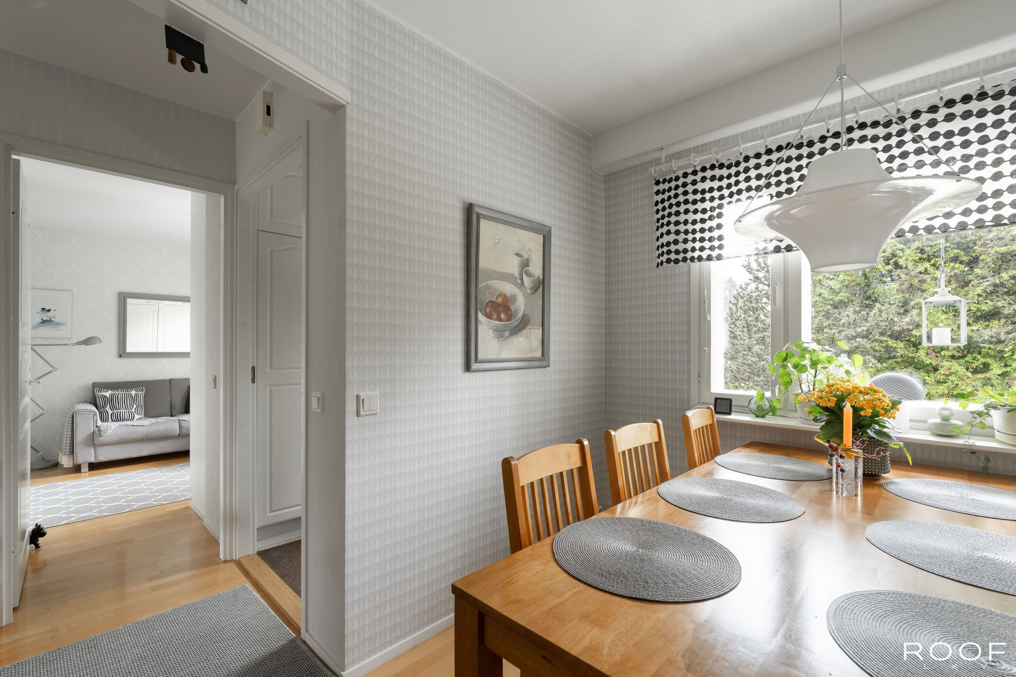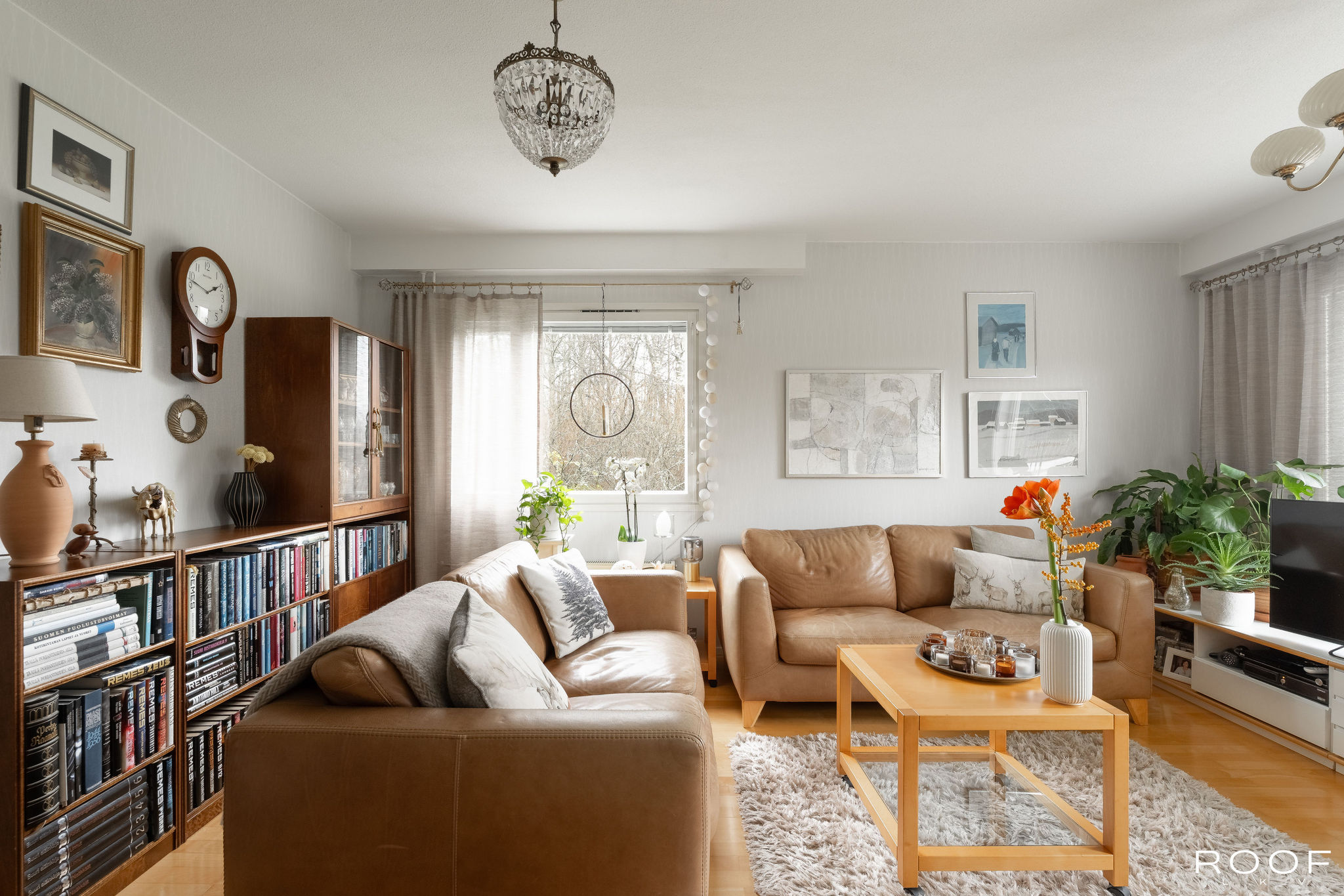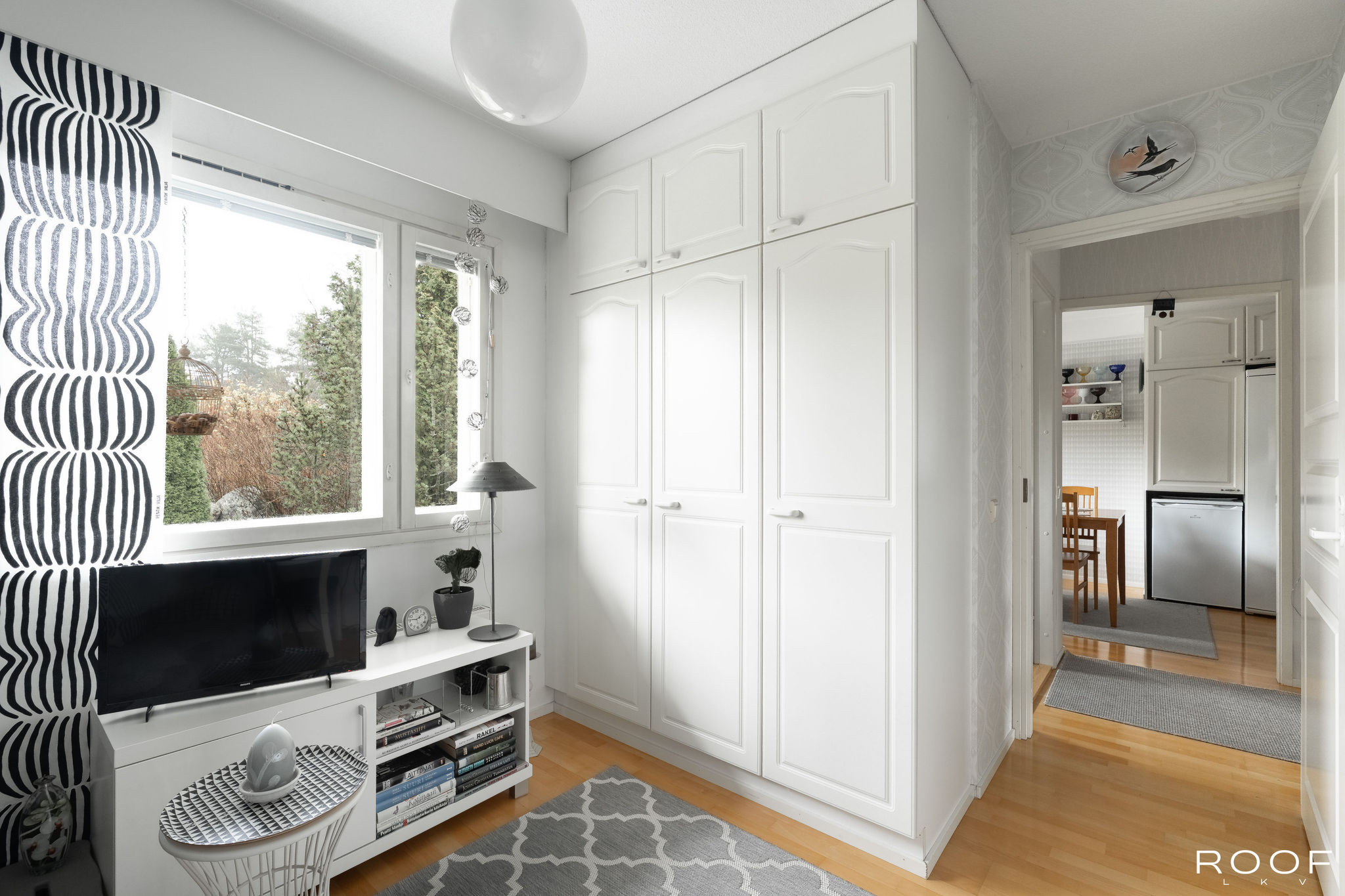 Suositulla Pahkavuoren alueella siistikuntoinen kolmio. Kotia on pidetty hyvänä alusta asti, asukkaat ovat asuneet tässä kodissa sen valmistumisesta saakka ja ovat viihtyneet täällä hyvin. Myytävä asunto on sijainniltaan taloyhtiön paras. Molemmissa makuuhuoneissa on vaatekaapistot, isommassa lisäksi vaatehuone. Tuulikaapissa on myös kolme osainen kaapisto.