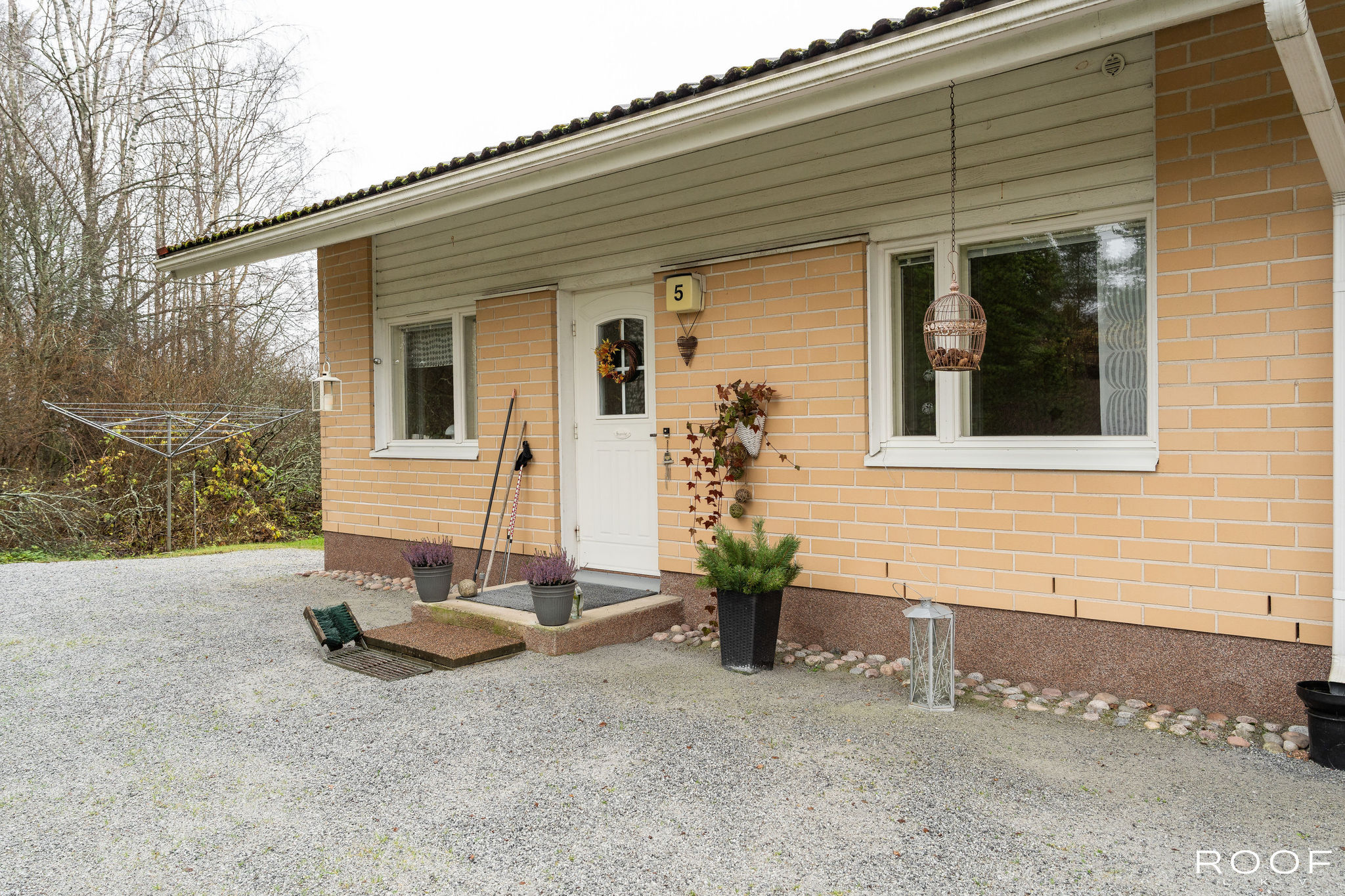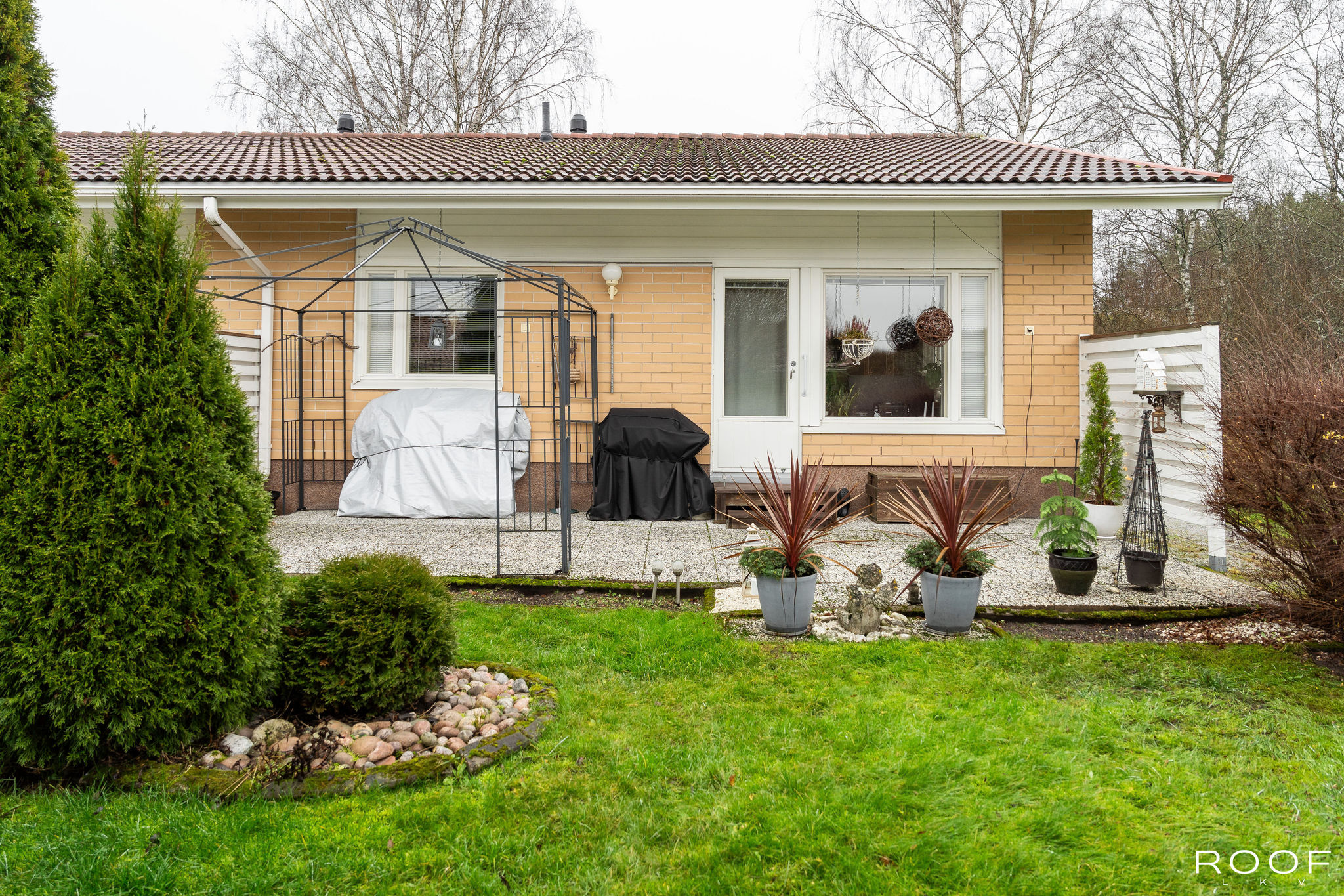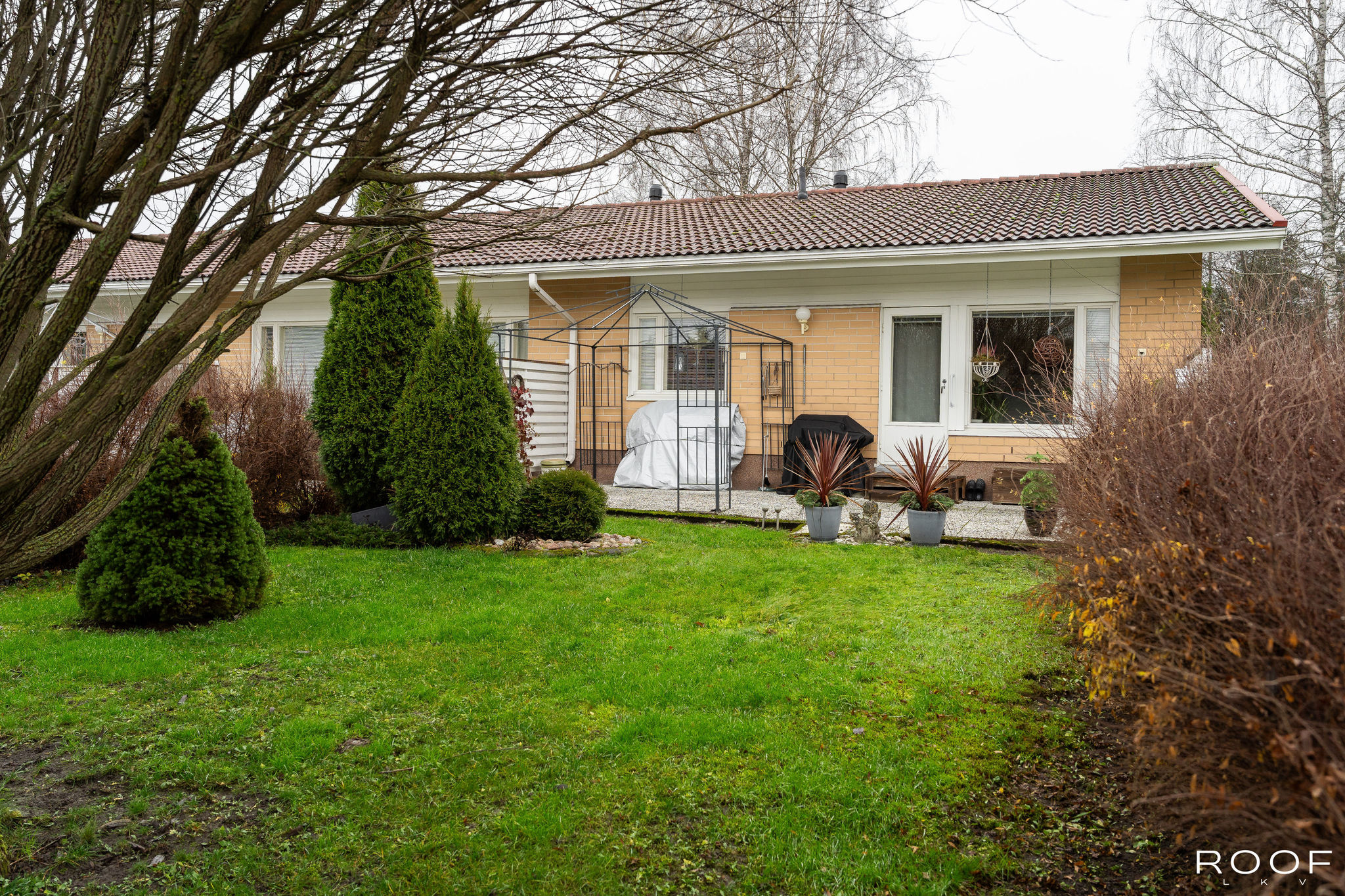 Tämä koti sijaitsee muutaman kilometrin päässä keskustasta, golfkentän ja urheilupuiston laidalla. Takapihalle paistaa aurinko loistavasti koko päivän. Myös sisäänkäynnin puoleinen piha on suojaisa ja kaunis kallioinen maavalli on koristeltu kukkaistutuksin.