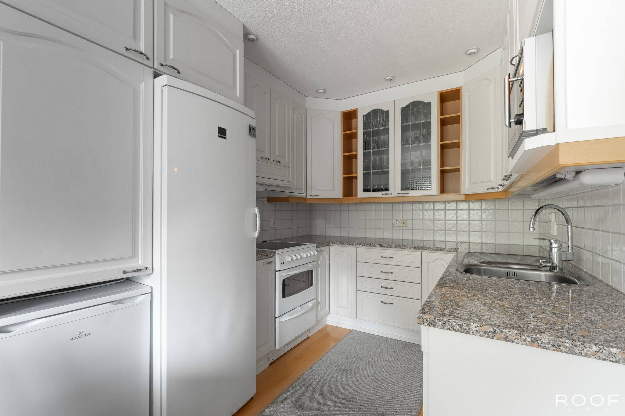 Auton saat ajettua lämpimään autotalliin. Autotallin jatkeena on tilava lämmin varasto. Edulliset asumiskustannukset myös talvisin, sillä lämmitys sisältyy vastikkeeseen (kaukolämpö) ja maksat vain käyttösähkön. Lattialämmitys kylpyhuoneessa ja vessassa. Sijantikin on mitä parhain; urheilupuiston palvelut noin kilometrin päässä ja lähin päivittäistavarakauppa vain muutaman minuutin ajomatkan päässä.