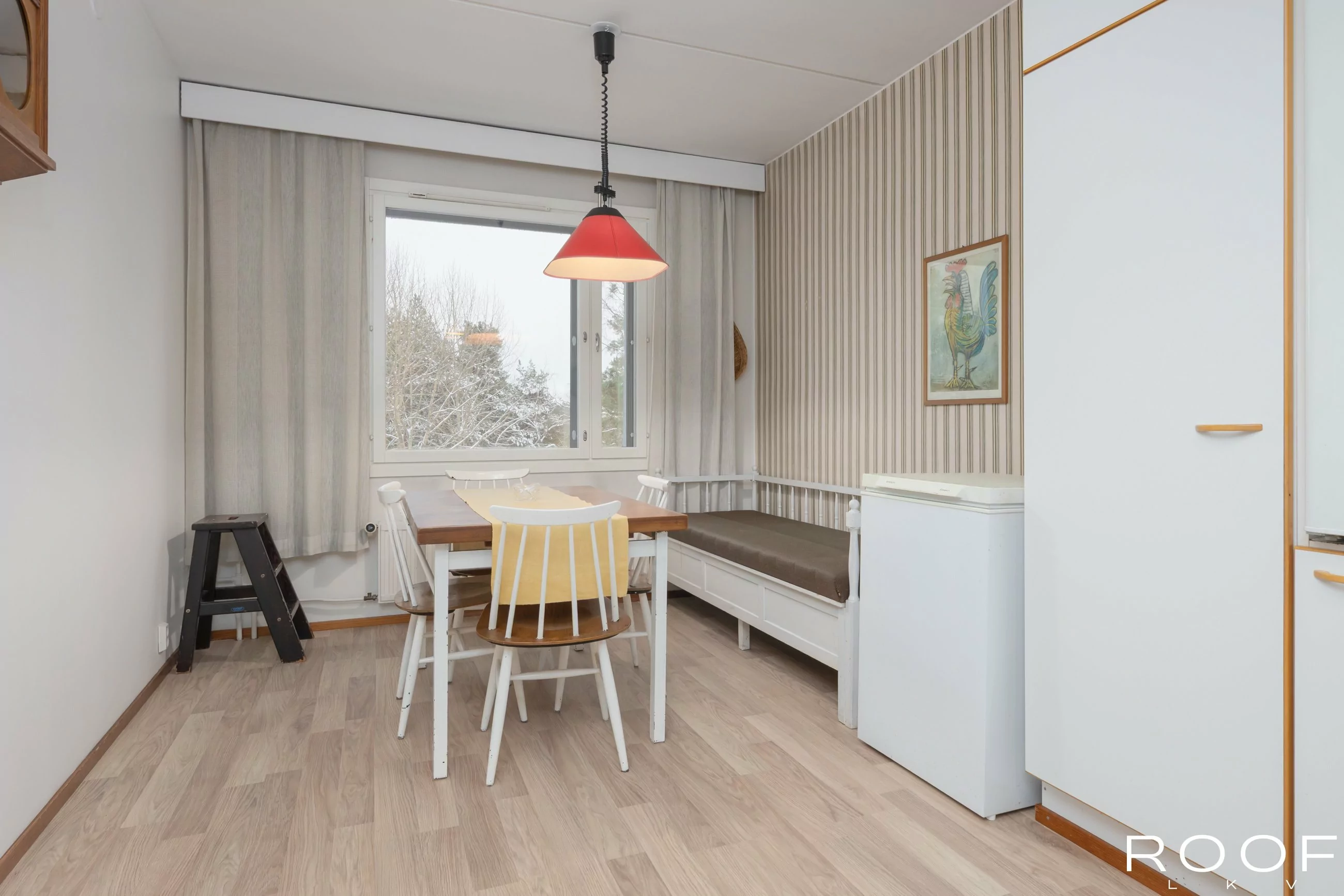 Nyt on tilaisuus hankkia persoonallinen tilava kerrostalokoti läheltä kaikkia Hyvinkään keskustan palveluja. Tässä ylimmän kerroksen, läpitalon huoneistossa on esteetön näkyvyys ja erikoisuutena takkahuone sekä kaksi lasitettua parveketta. Olohuone ja keittiö ovat tilavia sekä halutessa helposti muunneltavissa nykyaikaiseksi avokeittiöratkaisuksi. Arkea helpottaa kaksi wc:tä ja vaatehuone. Tällä huoneistolla on vain yksi seinänaapuri saunanpuoleisella seinällä.