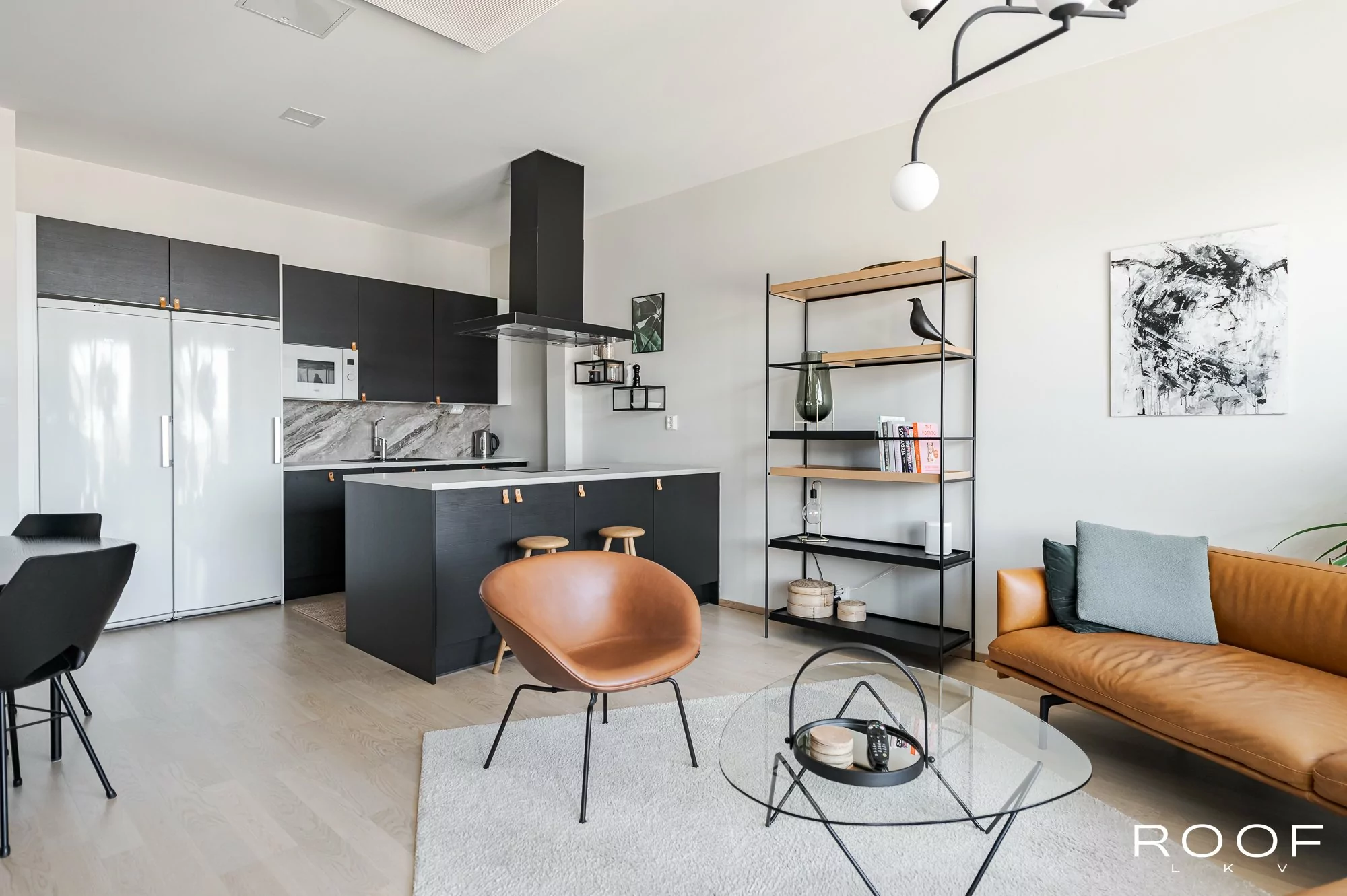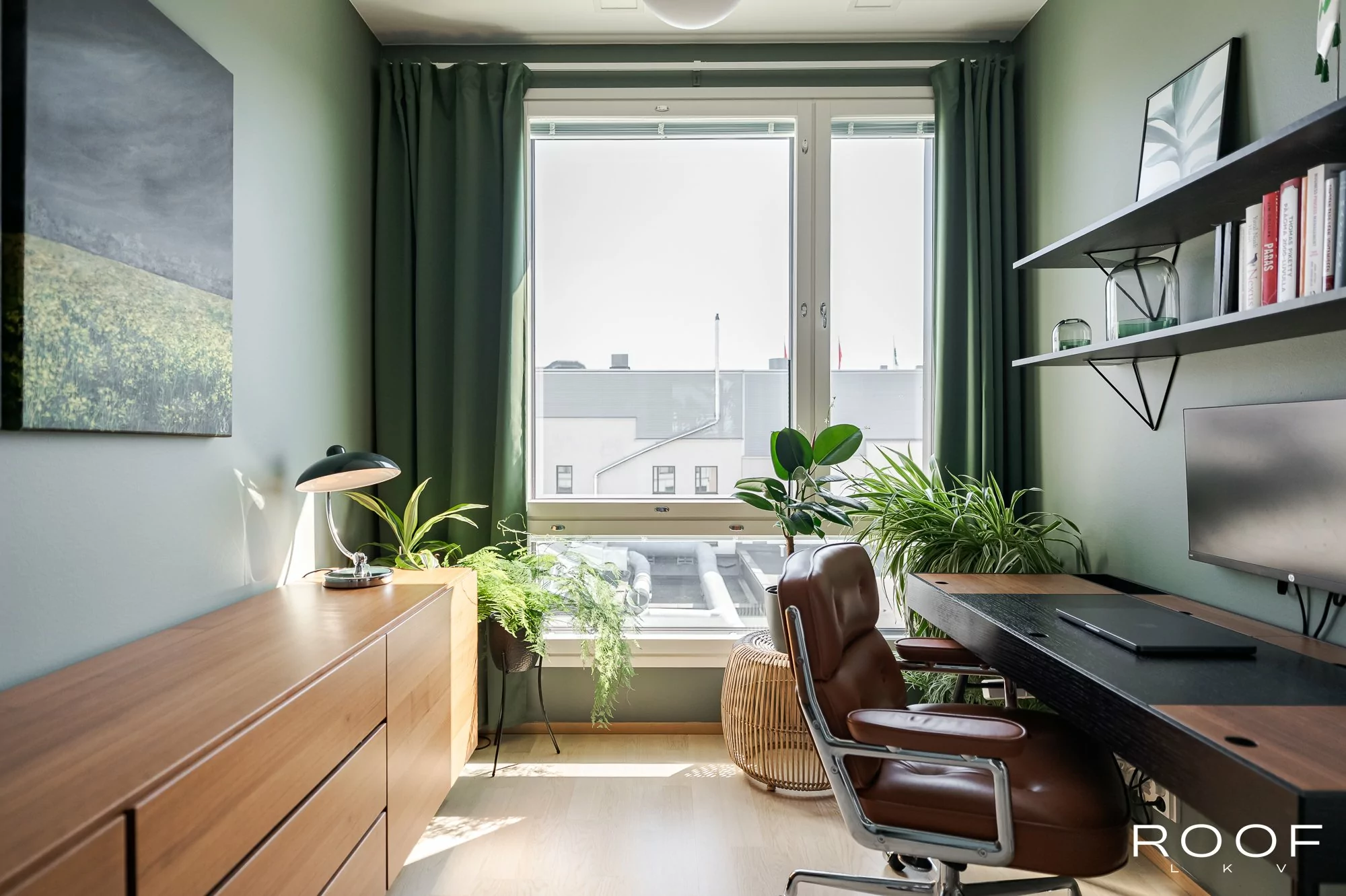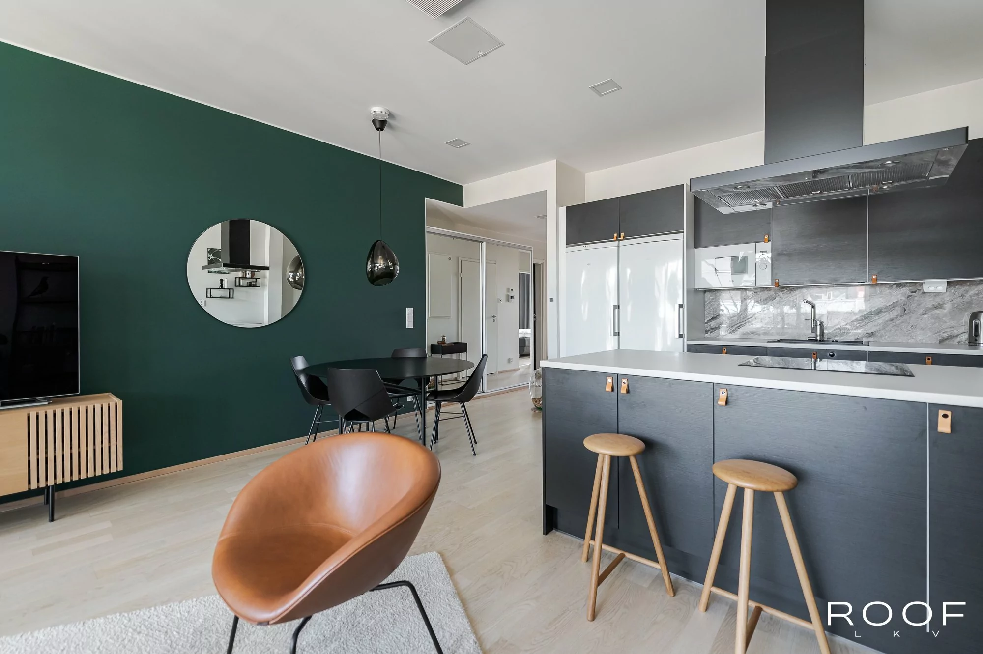 Uudenkarhea, vuonna 2020 lisärakentamisen myötä valmistunut ylimmän kerroksen koti tarjoaa modernia asumista - keskellä kaupunkia mutta omassa rauhassaan korkeuksissa.