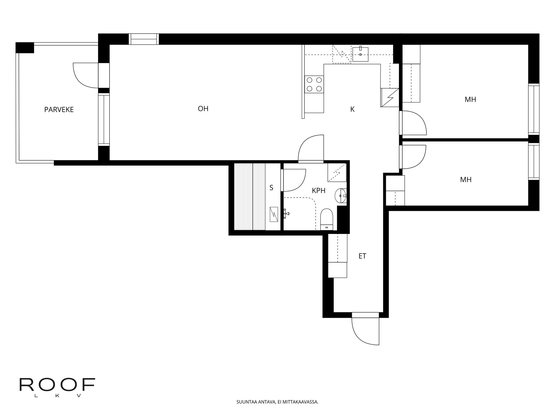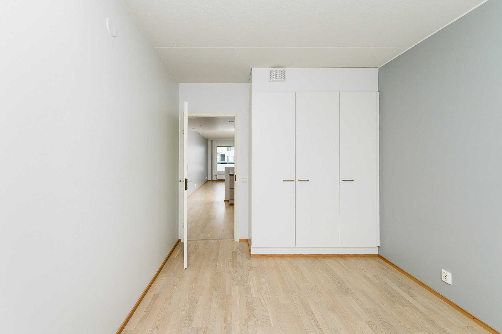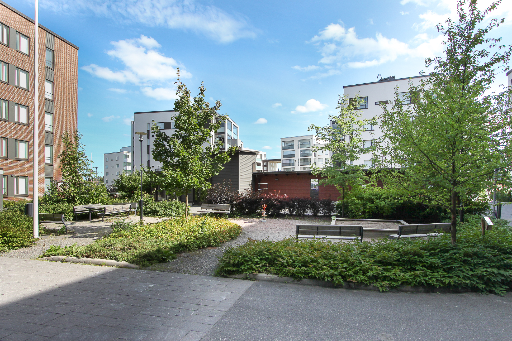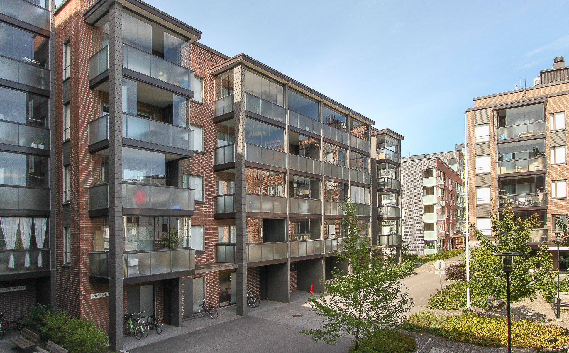 Tämä koti on valoisa ja avara läpitalon päätyhuoneisto, joka sijaitsee neljännessä kerroksessa. Olohuone ja keittiötila on yhtenäistä avointa tilaa, olohuoneesta käynti tilavalle lasitetulle parvekkeelle, parveke sijaitsee taloyhtiön sisäpihan suuntaan.