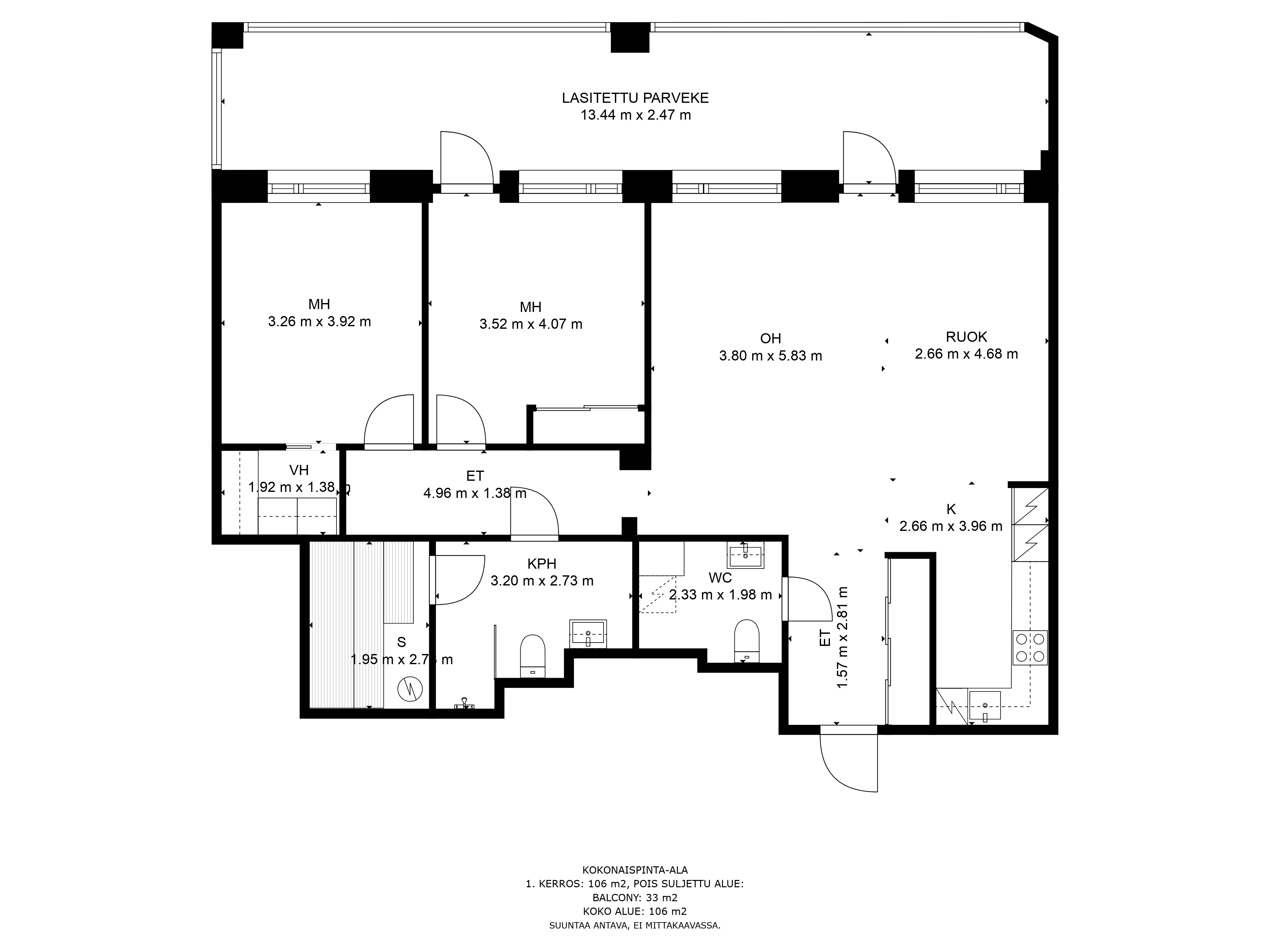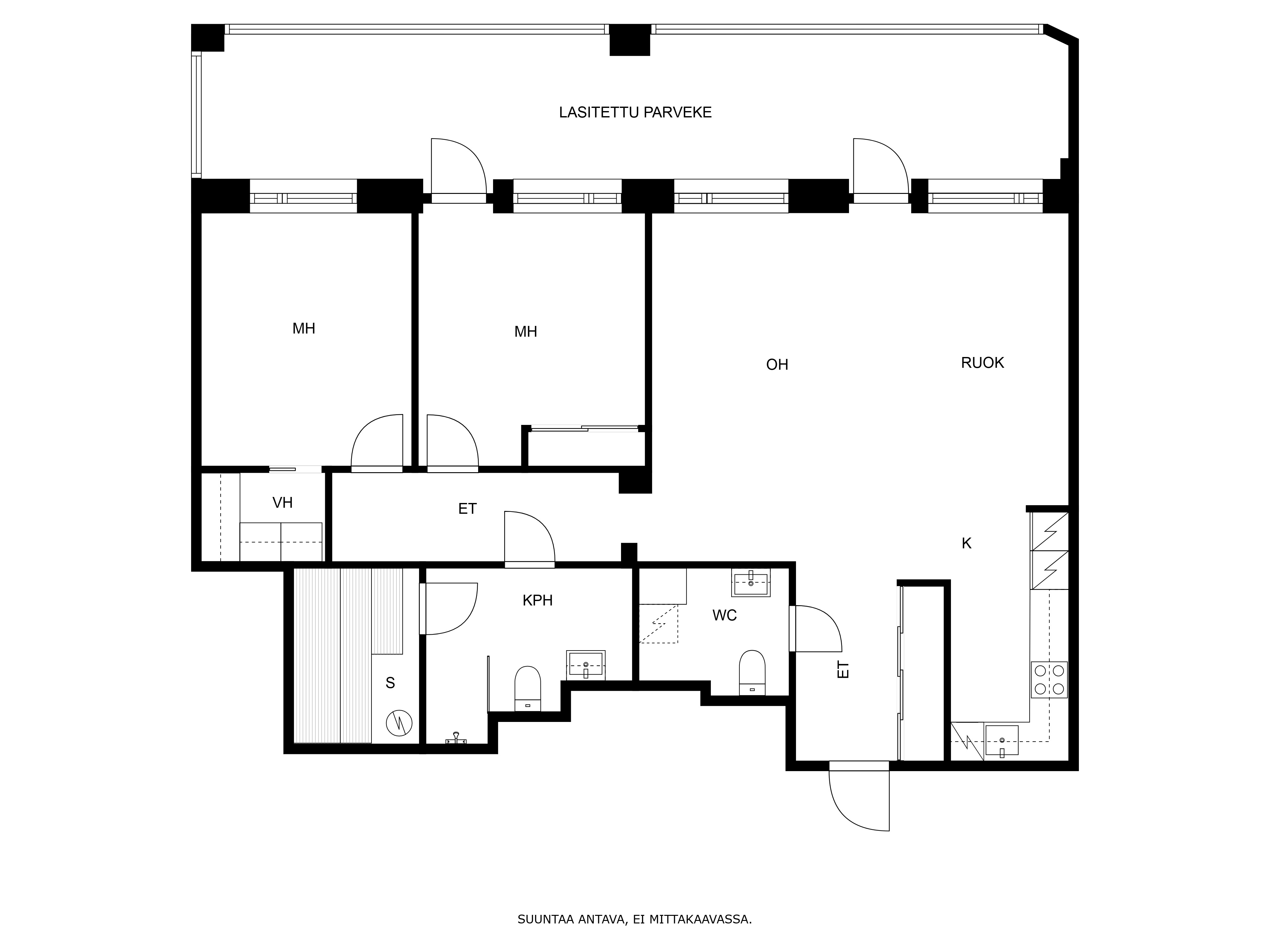 kerrostalo, 3h, kt, vh, wc, kph, et, s, las. parveke.