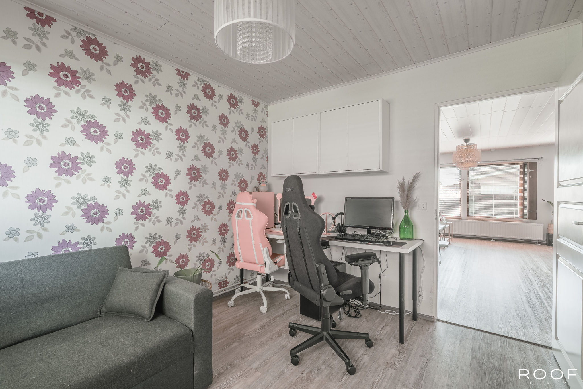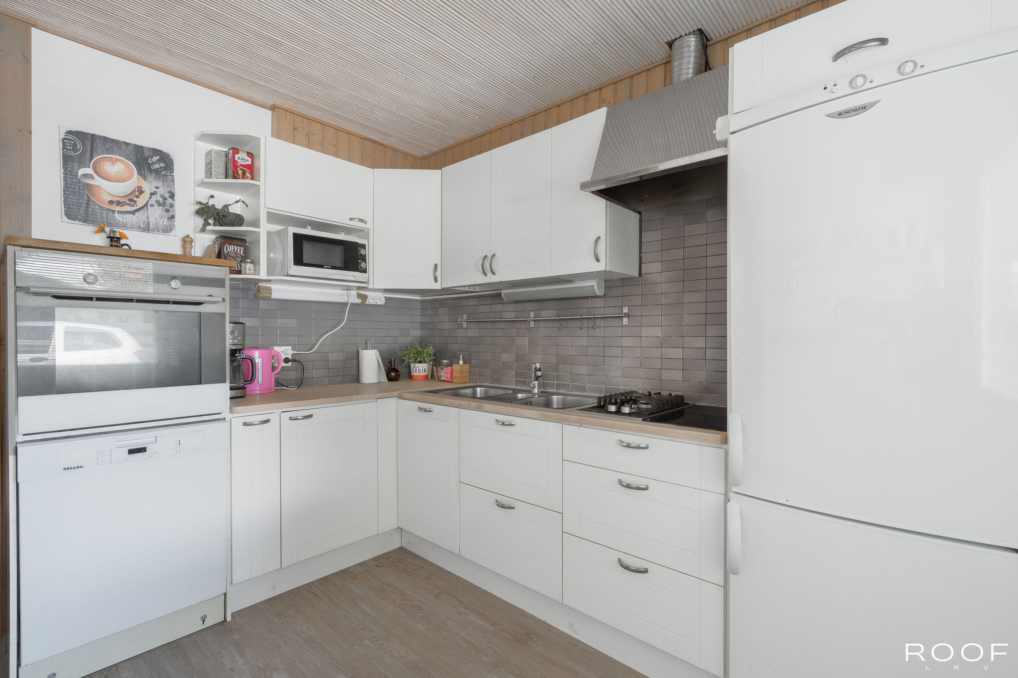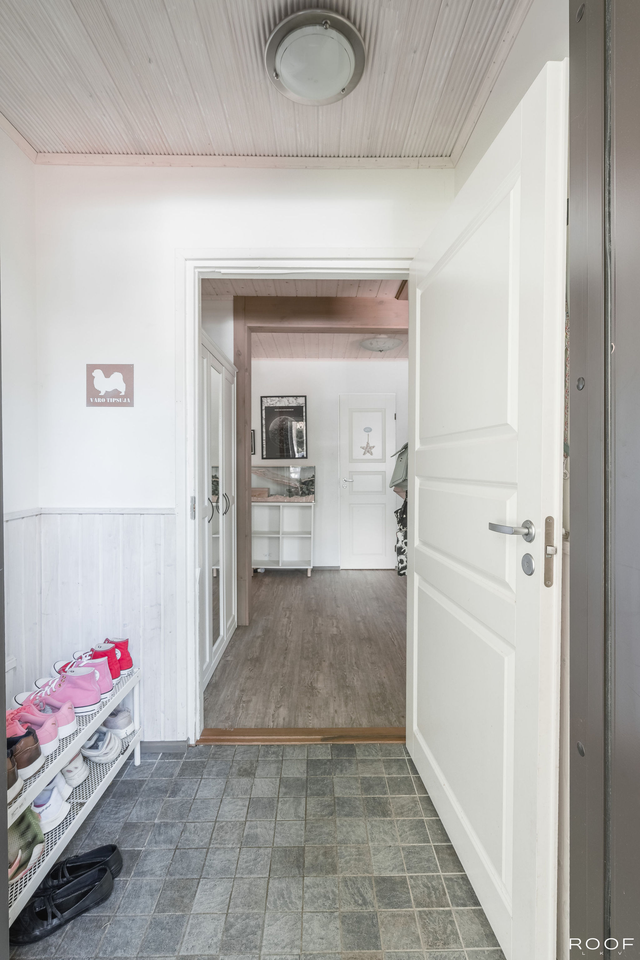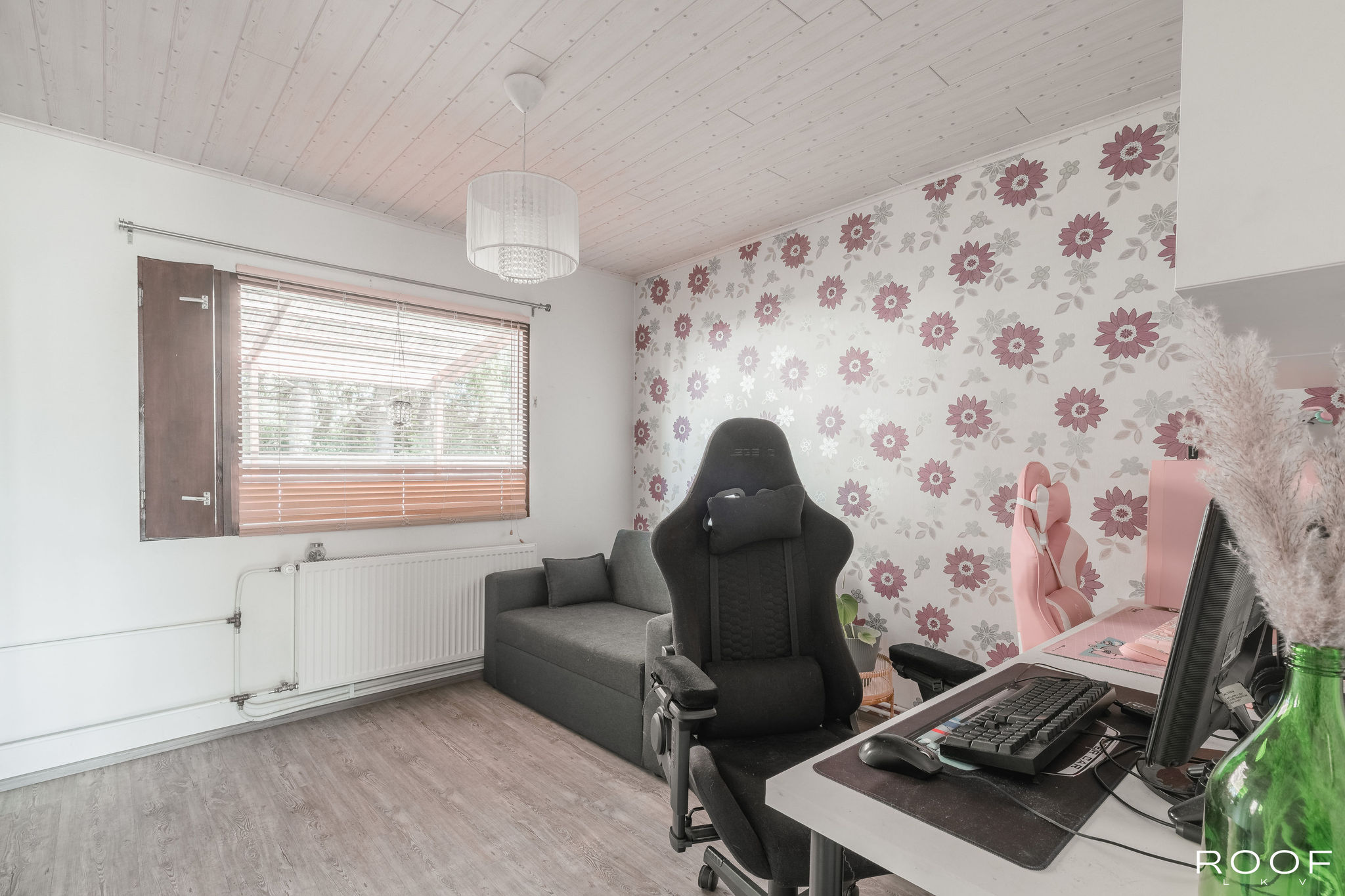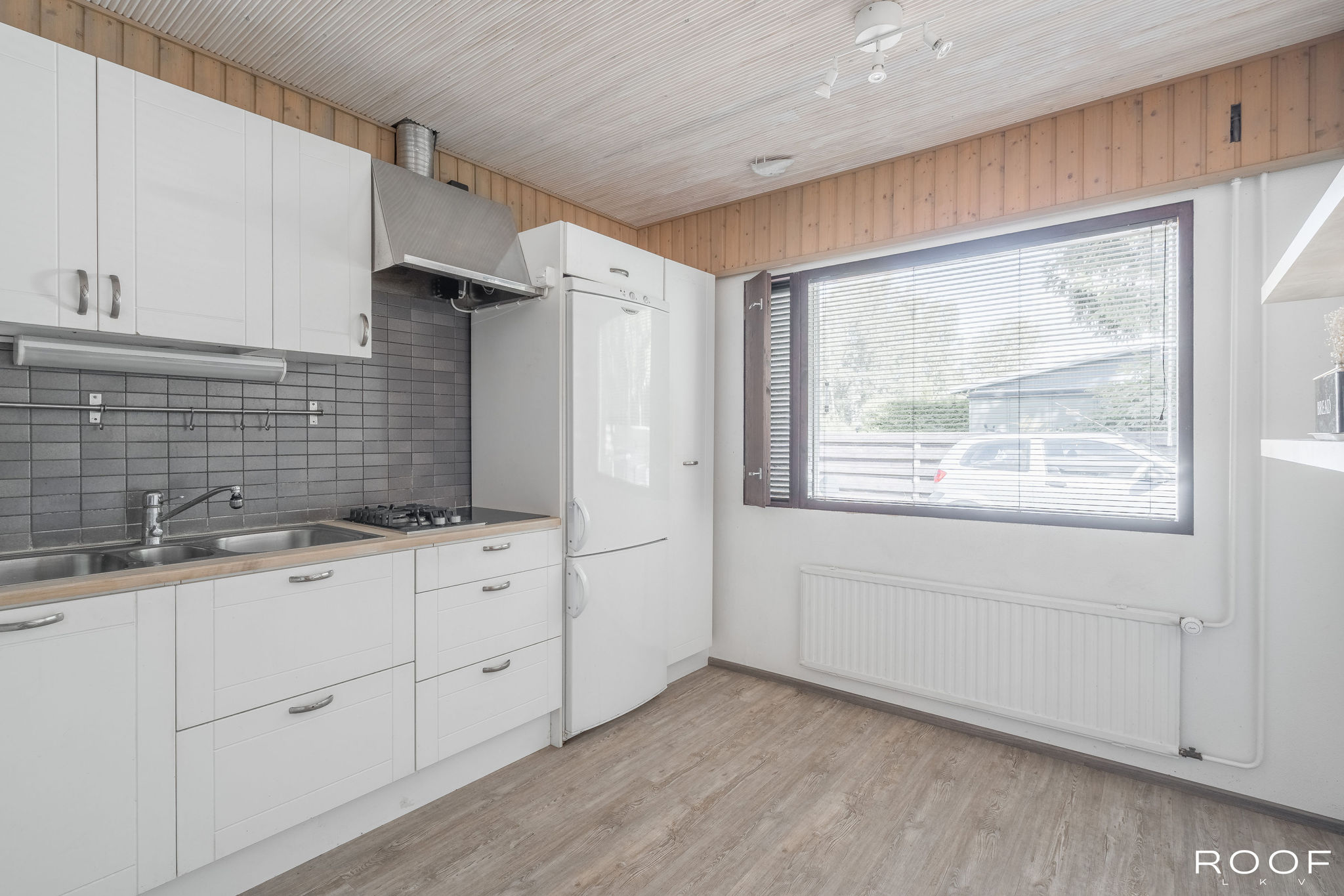 Talossa on kaksi makuuhuonetta, tilava olohuone sekä vuonna 2012 remontoitu keittiö, josta löytyy nykyaikaiset kodinkoneet. Pesuhuone ja sauna on päivitetty vuosina 2011-2012, ja sauna tarjoaa rentouttavat löylyt puulämmitteisellä kiukaallaan. Lisäksi talossa on käytännöllinen työhuone autotallin perällä ja tilava vaatehuone.