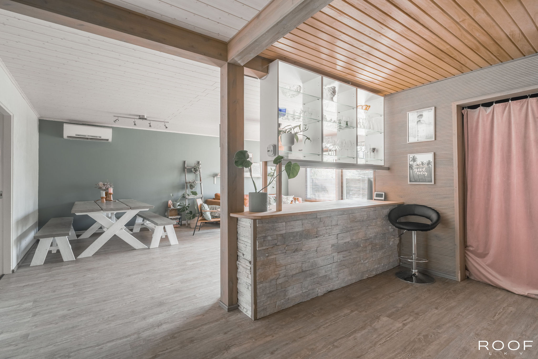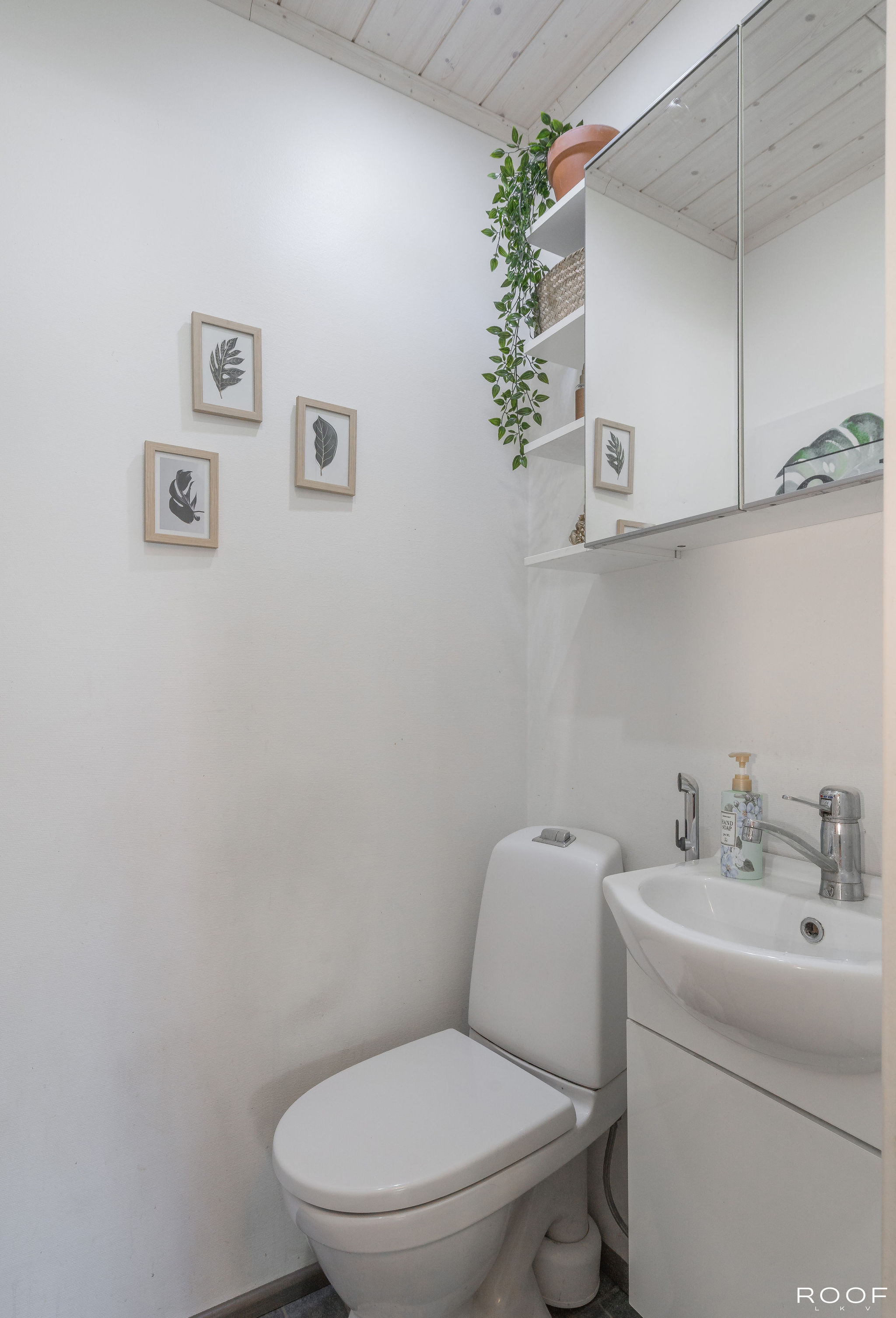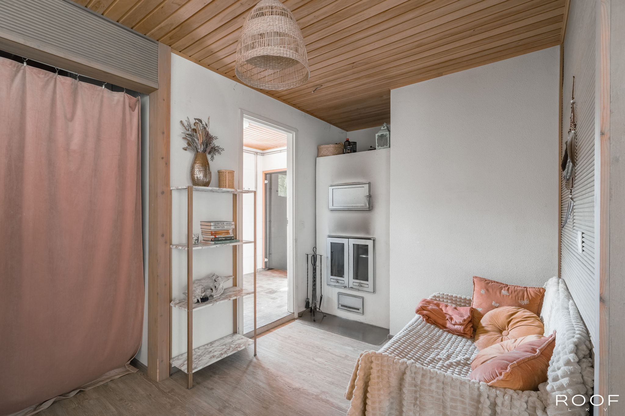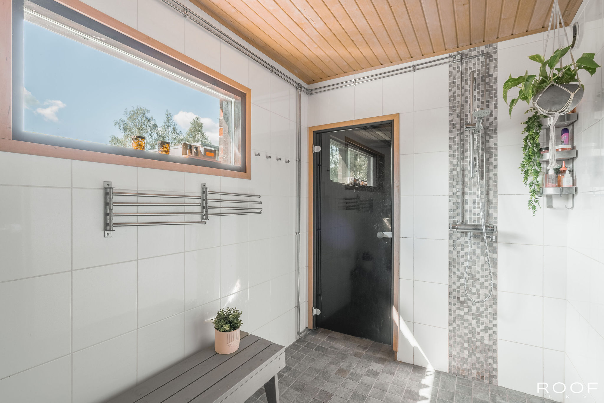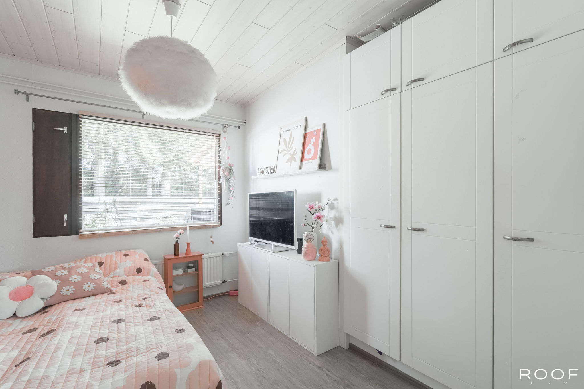 Talossa on kaksi makuuhuonetta, tilava olohuone sekä vuonna 2012 remontoitu keittiö, josta löytyy nykyaikaiset kodinkoneet. Pesuhuone ja sauna on päivitetty vuosina 2011-2012, ja sauna tarjoaa rentouttavat löylyt puulämmitteisellä kiukaallaan. Lisäksi talossa on käytännöllinen työhuone autotallin perällä ja tilava vaatehuone.
