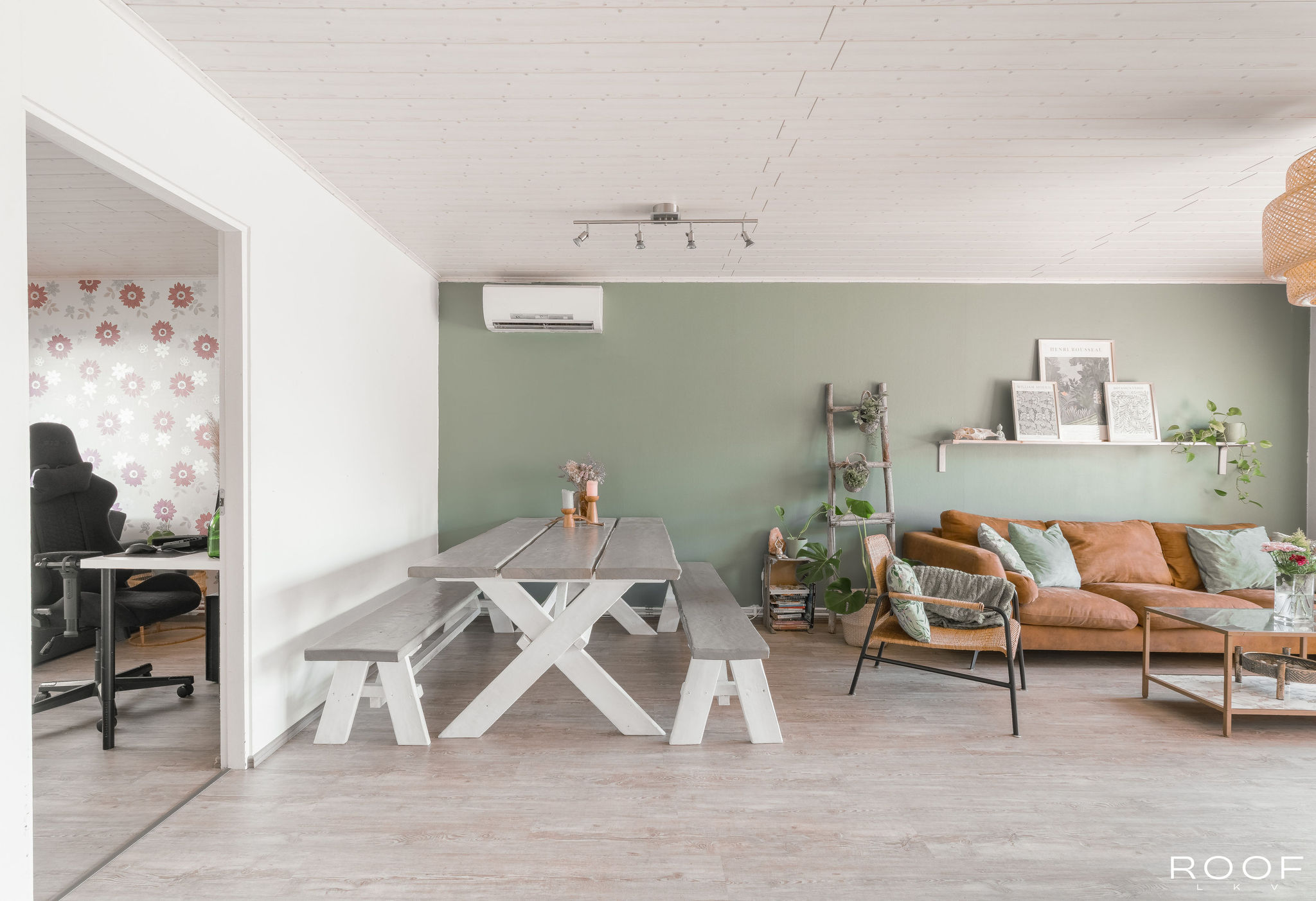 Keittiön liesituuletin uusittu Lisäksi pintoja laitettu, terassia laajennettu, ilmalämpöpumppu asennettu