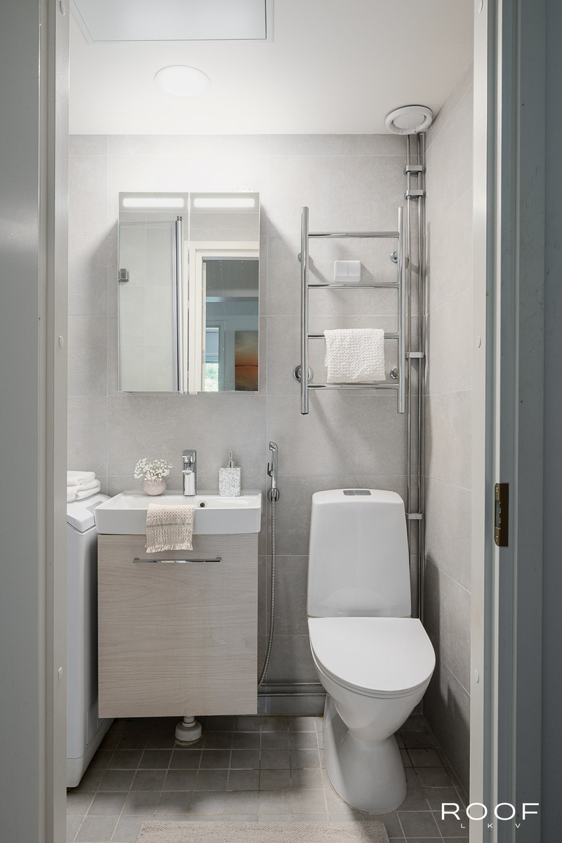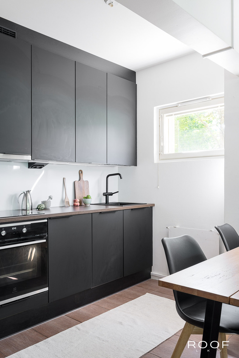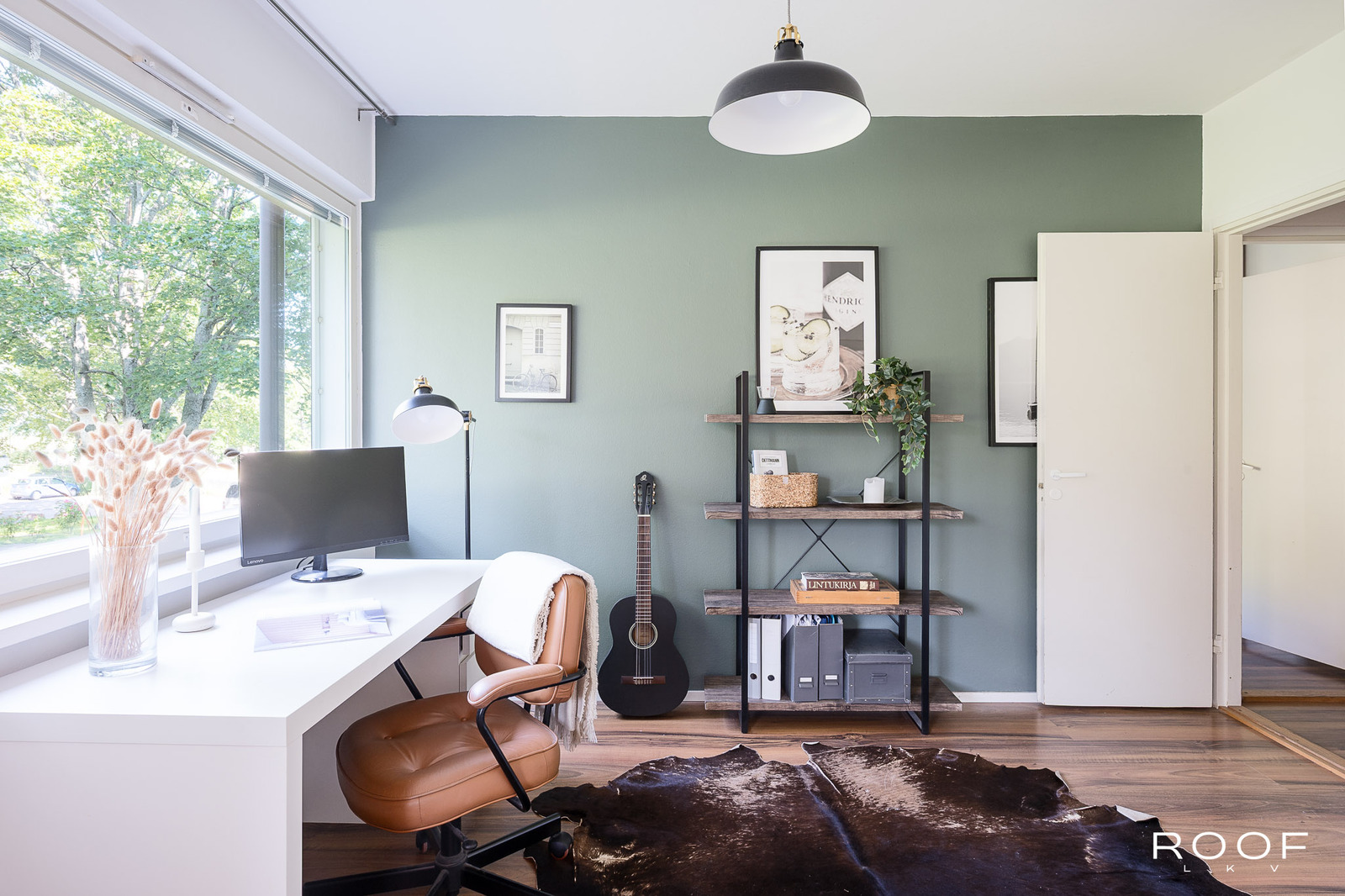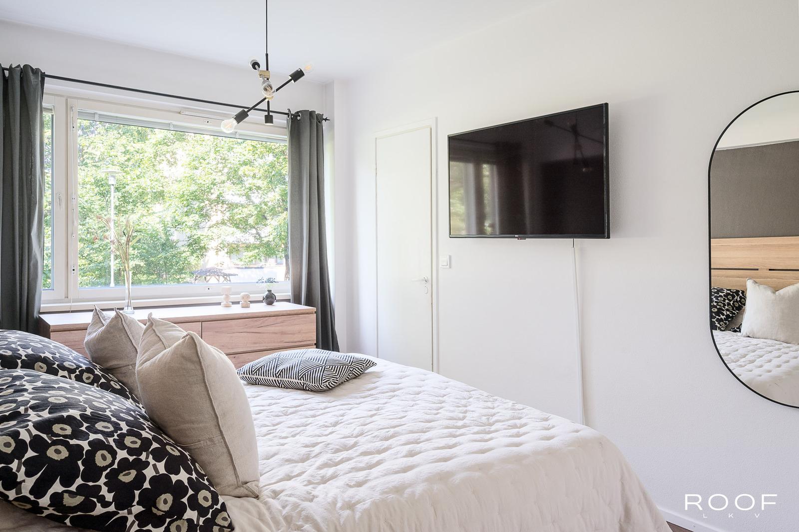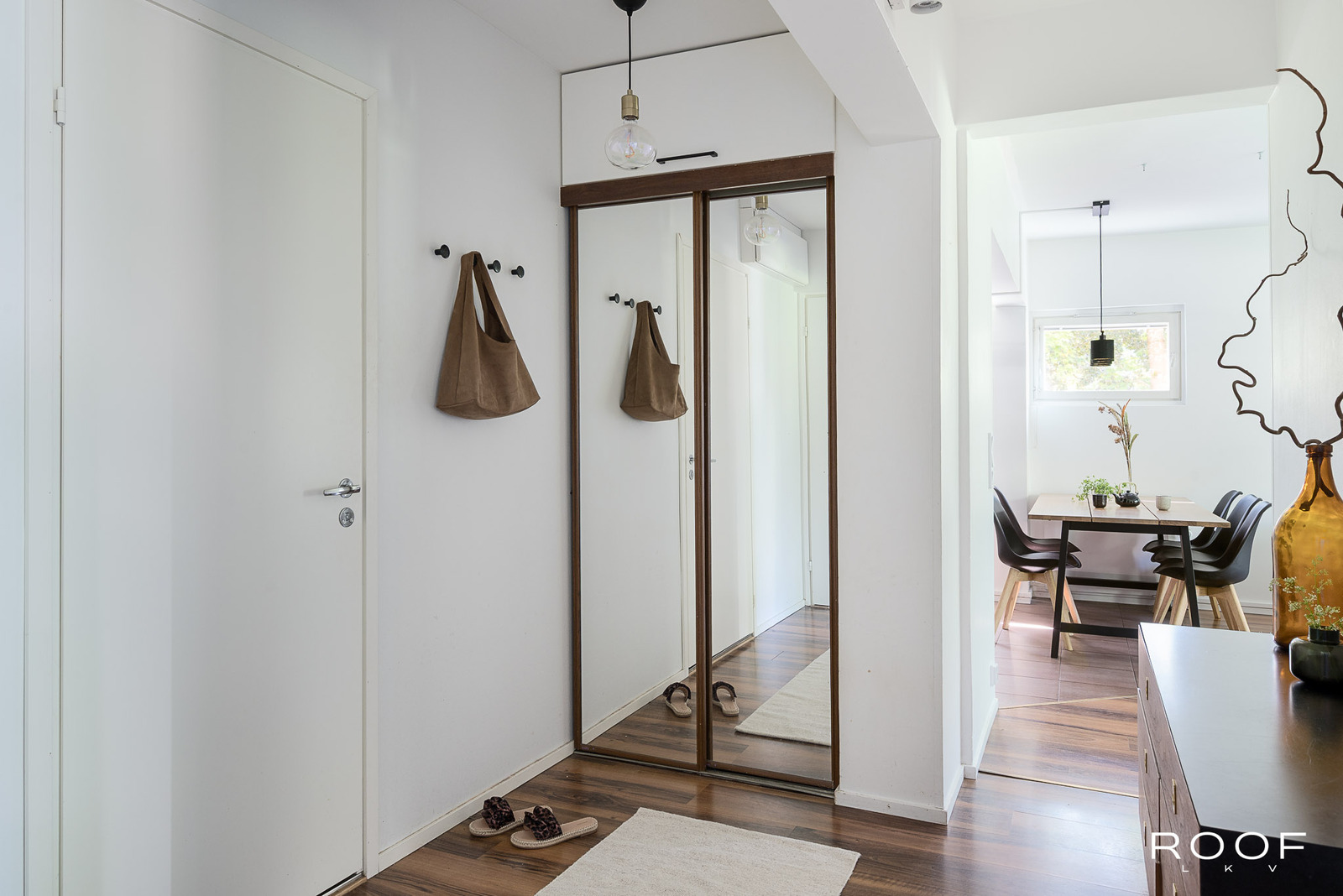 Tämä ensimmäisen kerroksen kolmio on siistikuntoinen ja laadukkailla materiaaleilla varustettu. Kaunis keittiö on remontoitu 2022 linjasaneerauksen yhteydessä, jolloin myös kylpyhuone on uusittu. Asunnossa on kaksi makuuhuonetta, joista toisen yhteydessä on vaatehuone lisäsäilytystilaa tuomassa. Kompaktiin kylpyhuoneeseen mahtuu pesukone. Keittiö ja olohuone ovat yhtenäistä avointa tilaa, josta avautuu puistomainen näkymä.