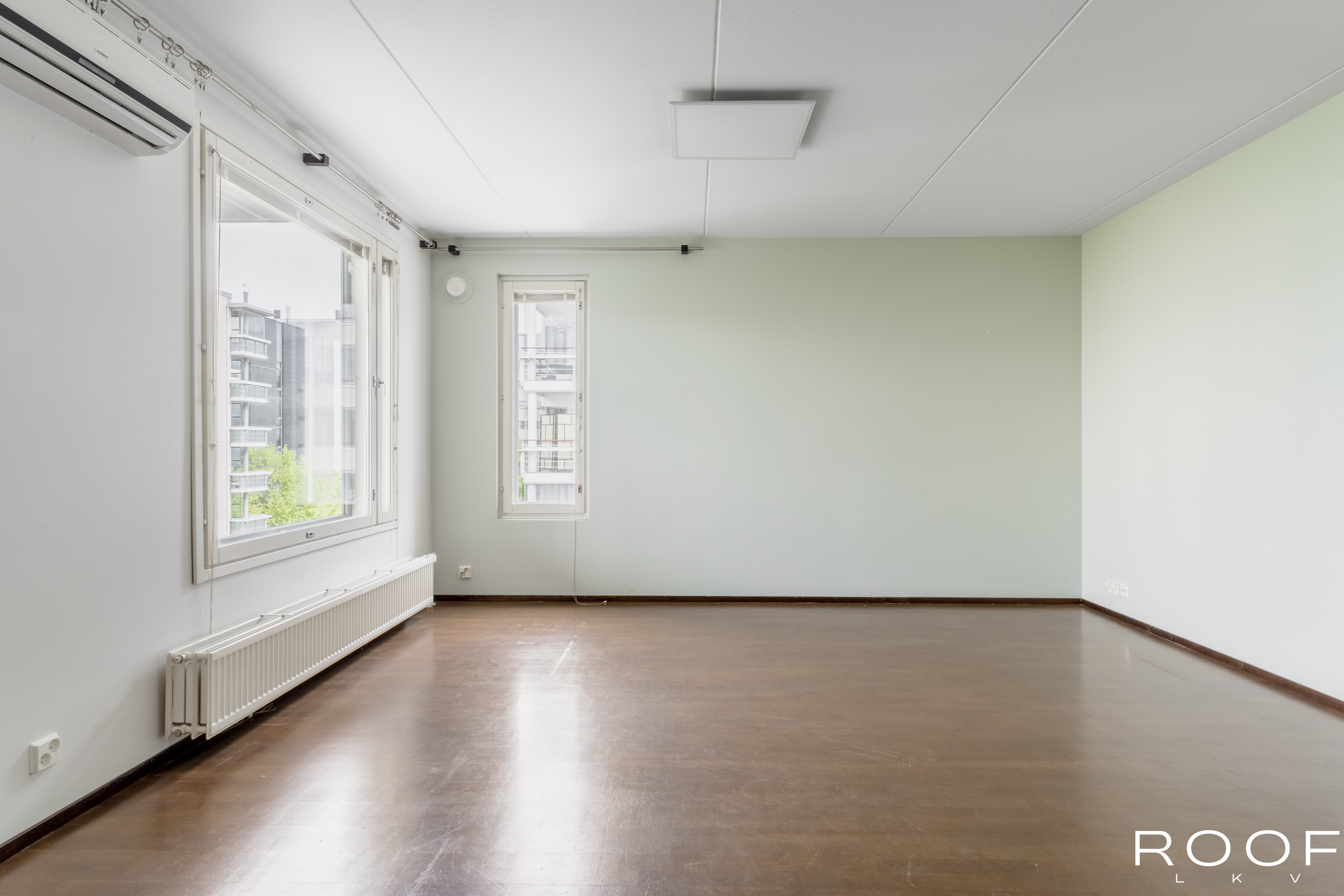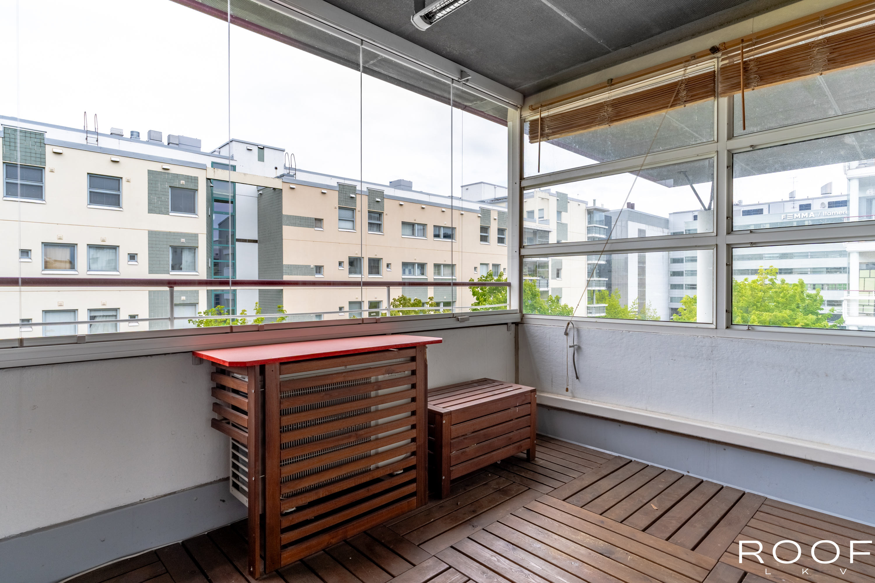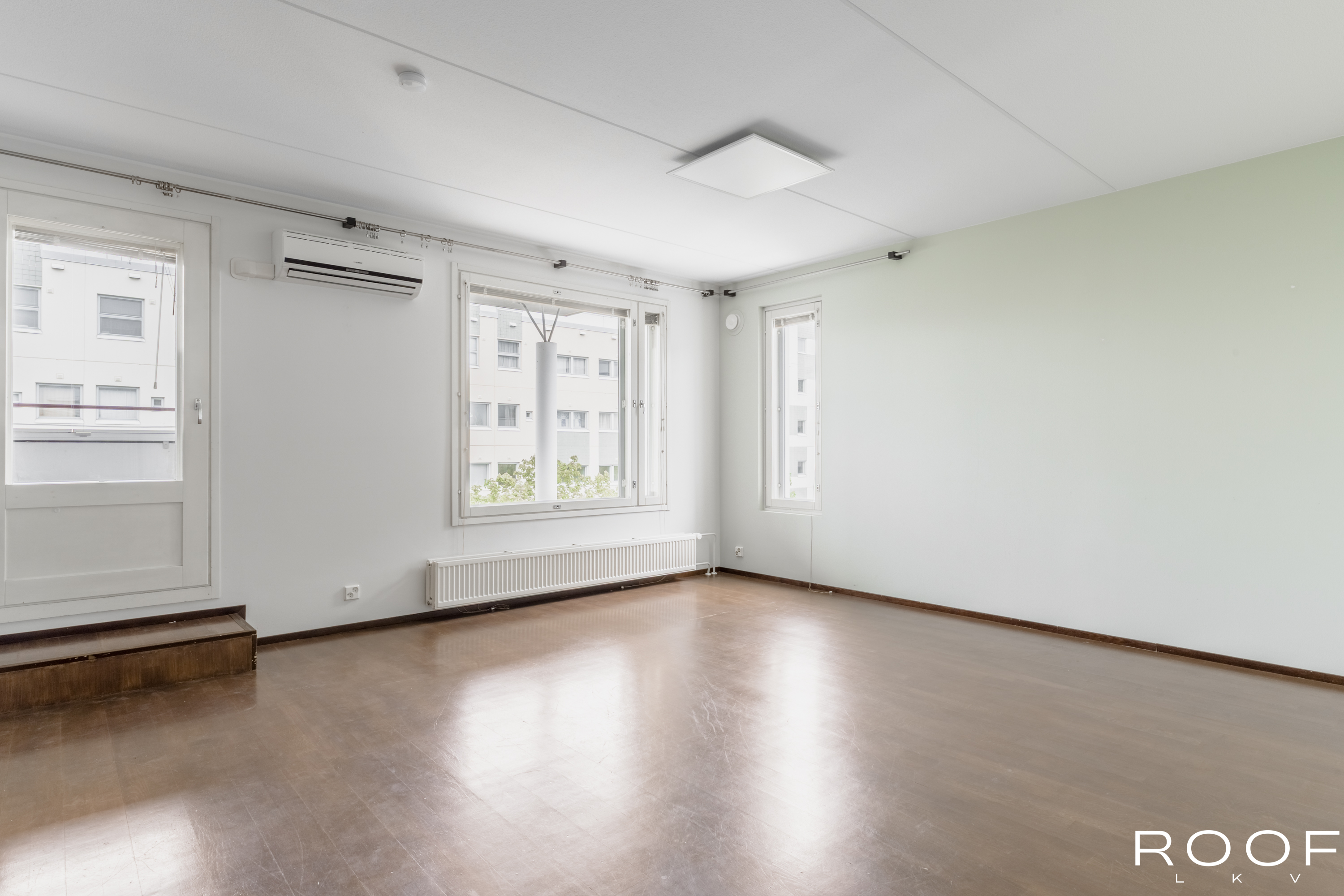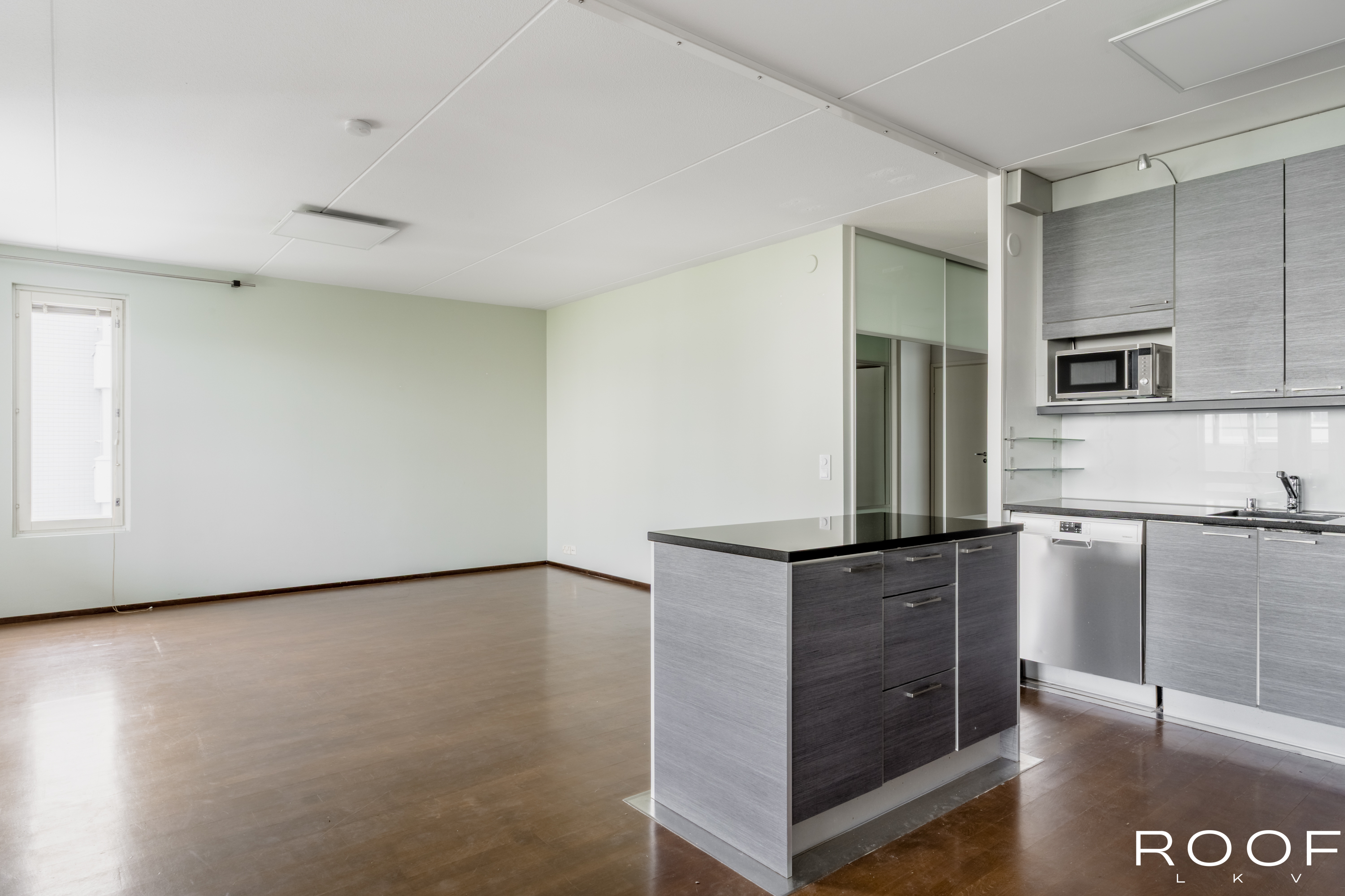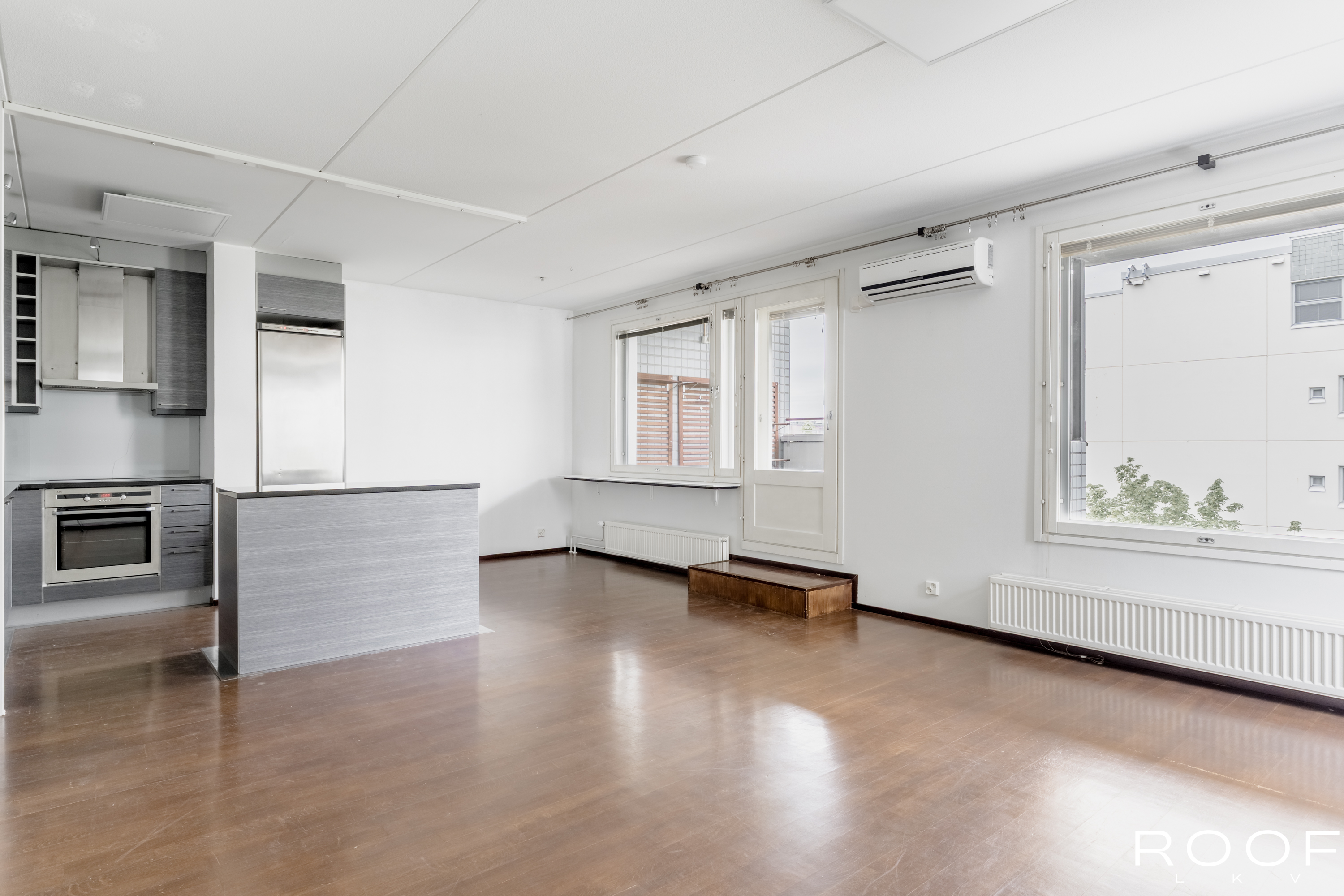 Kodin ehdottomana keskipisteenä toimii valoisa- ja avara keittiön-, ruokailutilan- sekä olohuoneen yhtenäinen tila jonka kruunaa lasitettu länteen avautuva parveke. Lasitetulla parvekkeella kelpaa kesällä nauttia aamupalasta ja samalla täältä voit ihastella vehreitä maisemia, jotka avautuvat aina Ruoholahdenkanavalle asti! Ruokailutilaan mahtuu isompikin ruokailuryhmä ja olohuoneessa on tilaa myös suuremmalle sohvalle, jossa kelpaa päivän päätteeksi rentoutua. Kesähelteillä asumisviihtyvyyden kruunaa ilmalämpöpumppu.