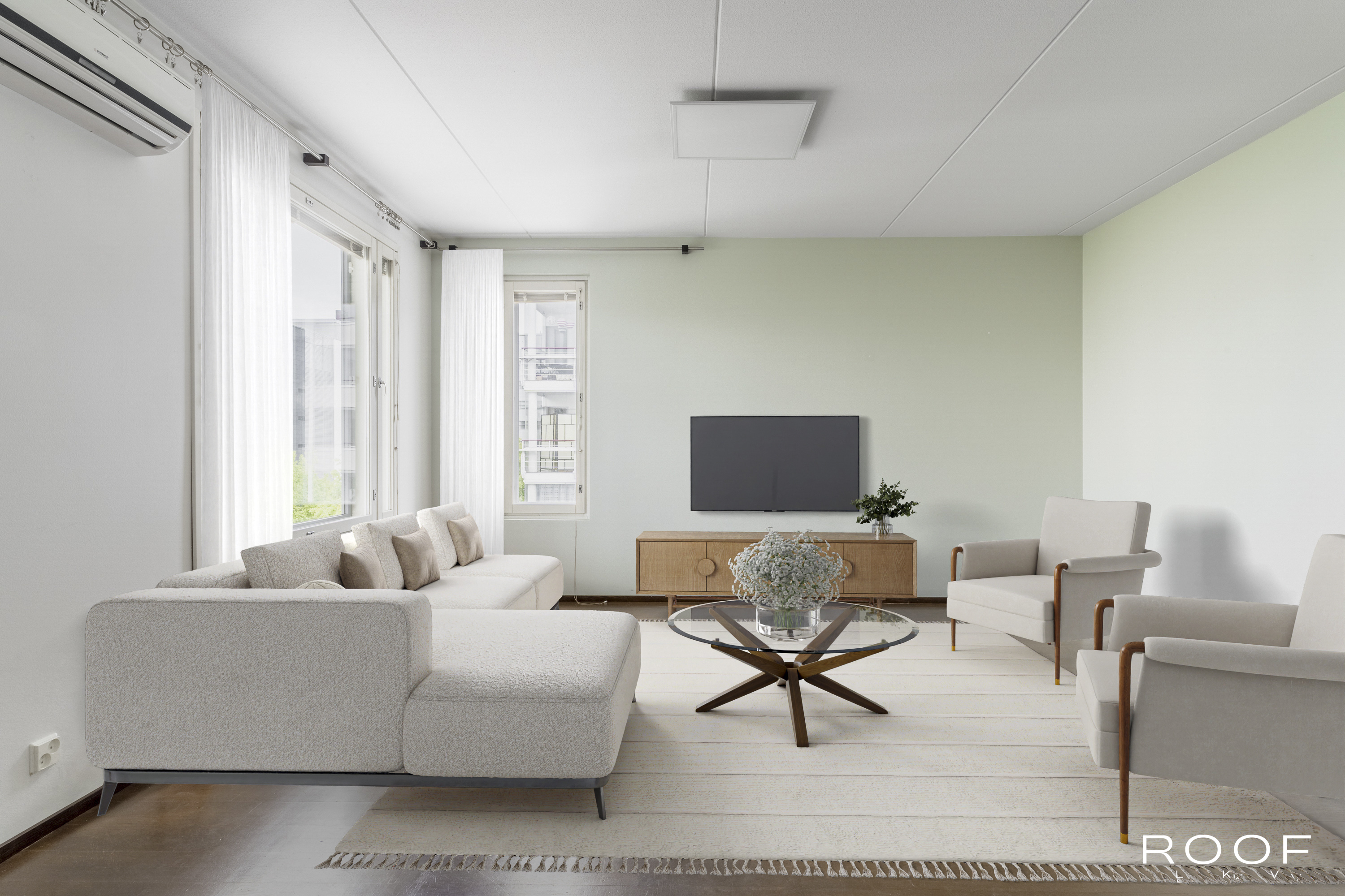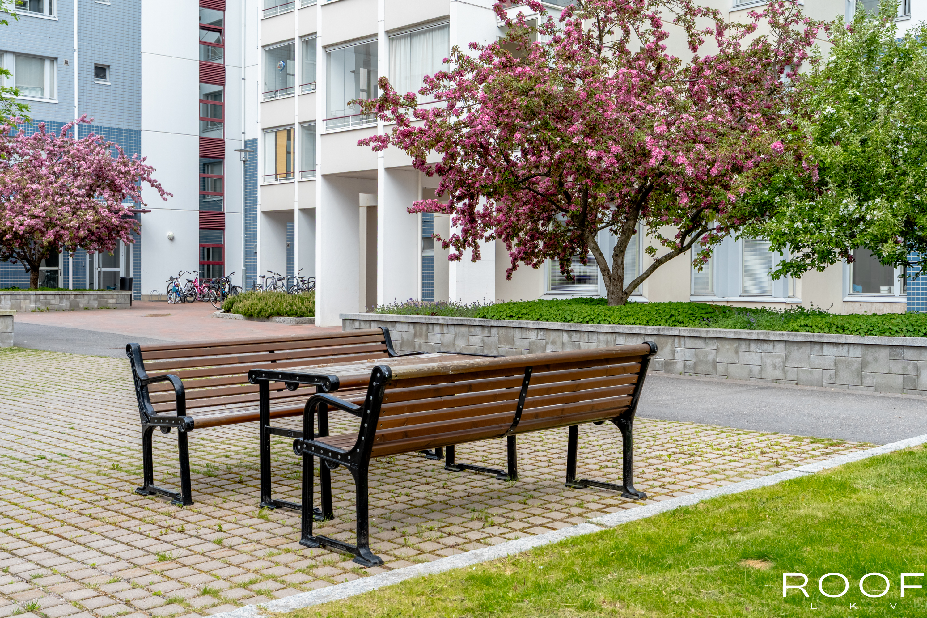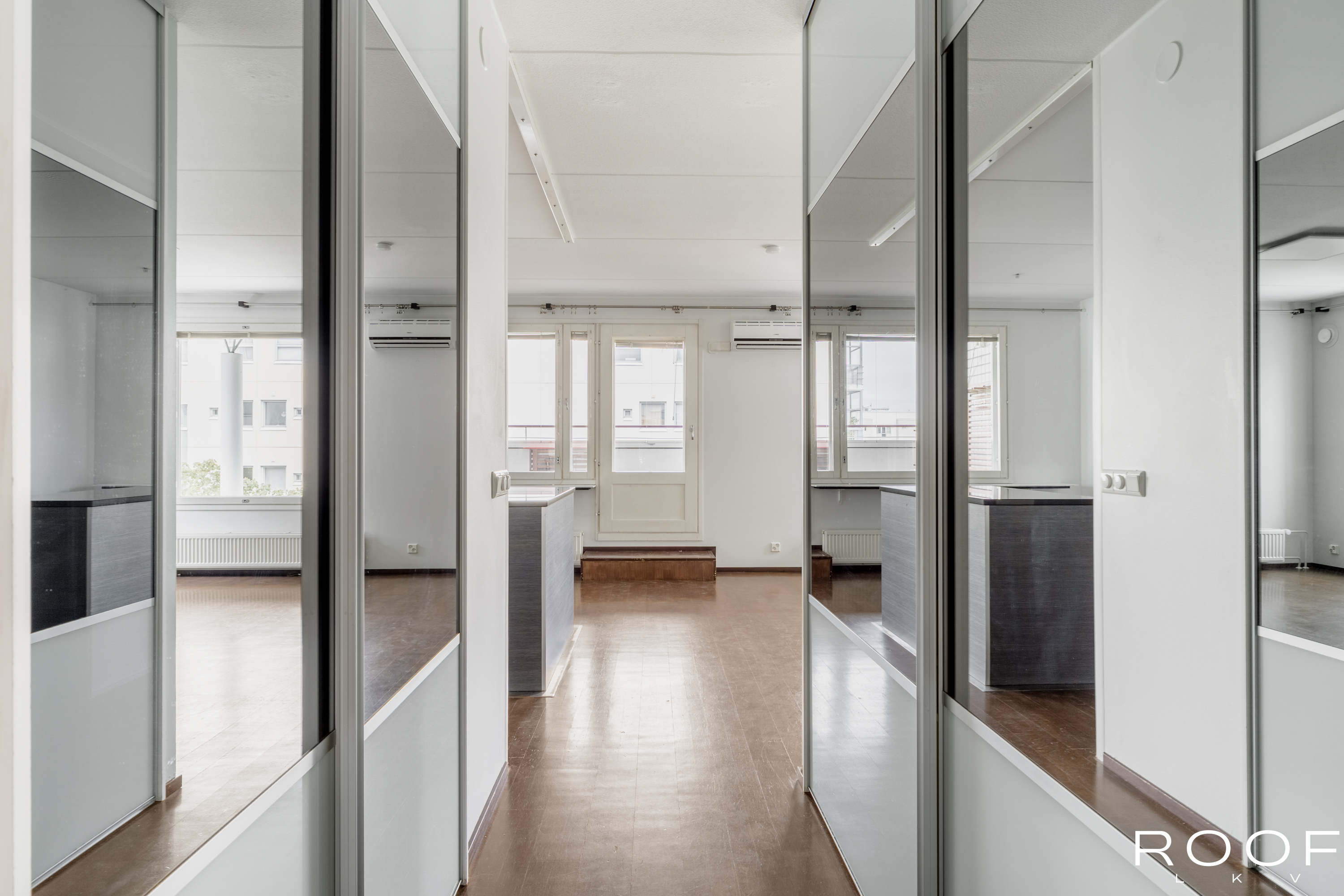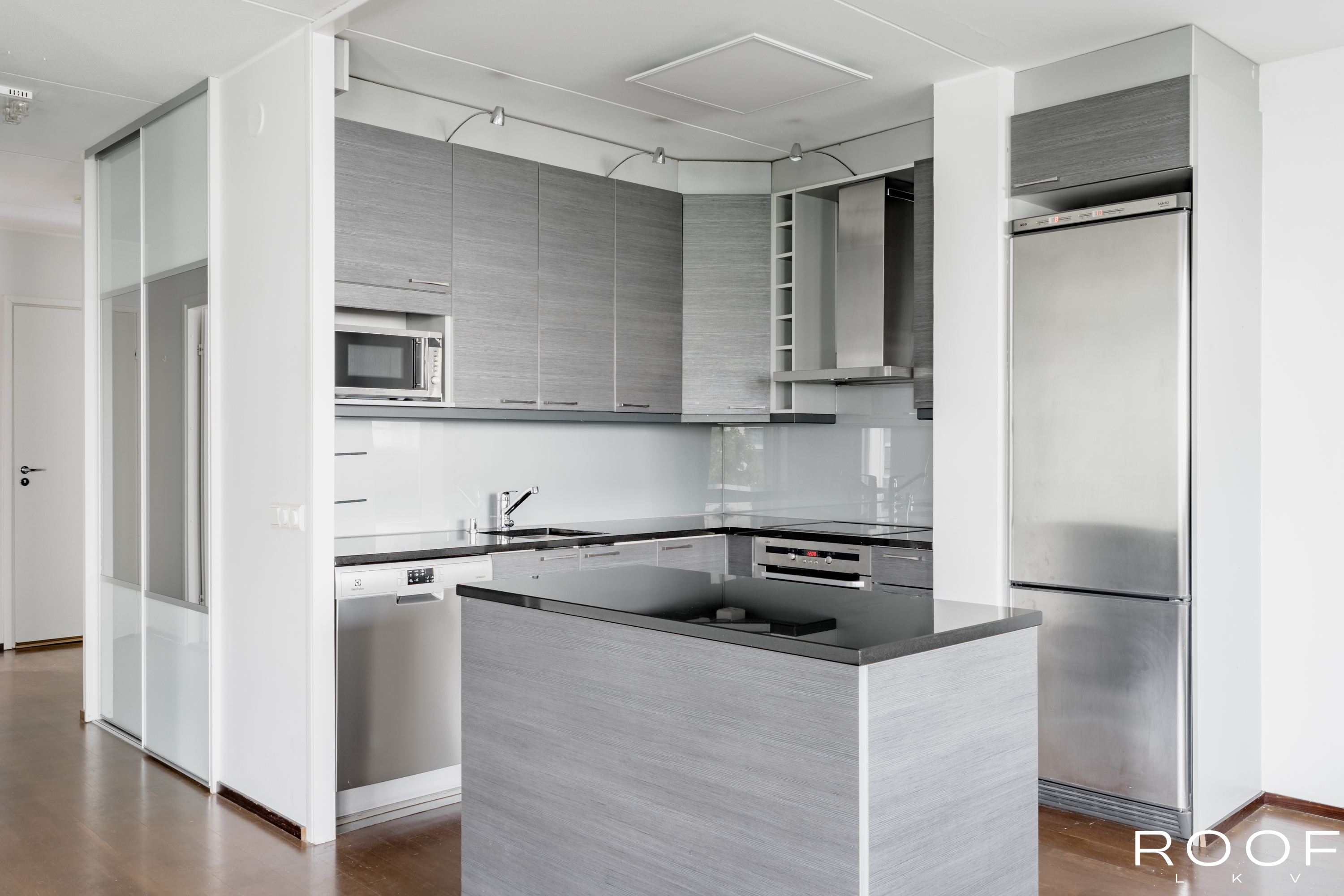 Kodin ehdottomana keskipisteenä toimii valoisa- ja avara keittiön-, ruokailutilan- sekä olohuoneen yhtenäinen tila jonka kruunaa lasitettu länteen avautuva parveke. Lasitetulla parvekkeella kelpaa kesällä nauttia aamupalasta ja samalla täältä voit ihastella vehreitä maisemia, jotka avautuvat aina Ruoholahdenkanavalle asti! Ruokailutilaan mahtuu isompikin ruokailuryhmä ja olohuoneessa on tilaa myös suuremmalle sohvalle, jossa kelpaa päivän päätteeksi rentoutua. Kesähelteillä asumisviihtyvyyden kruunaa ilmalämpöpumppu.