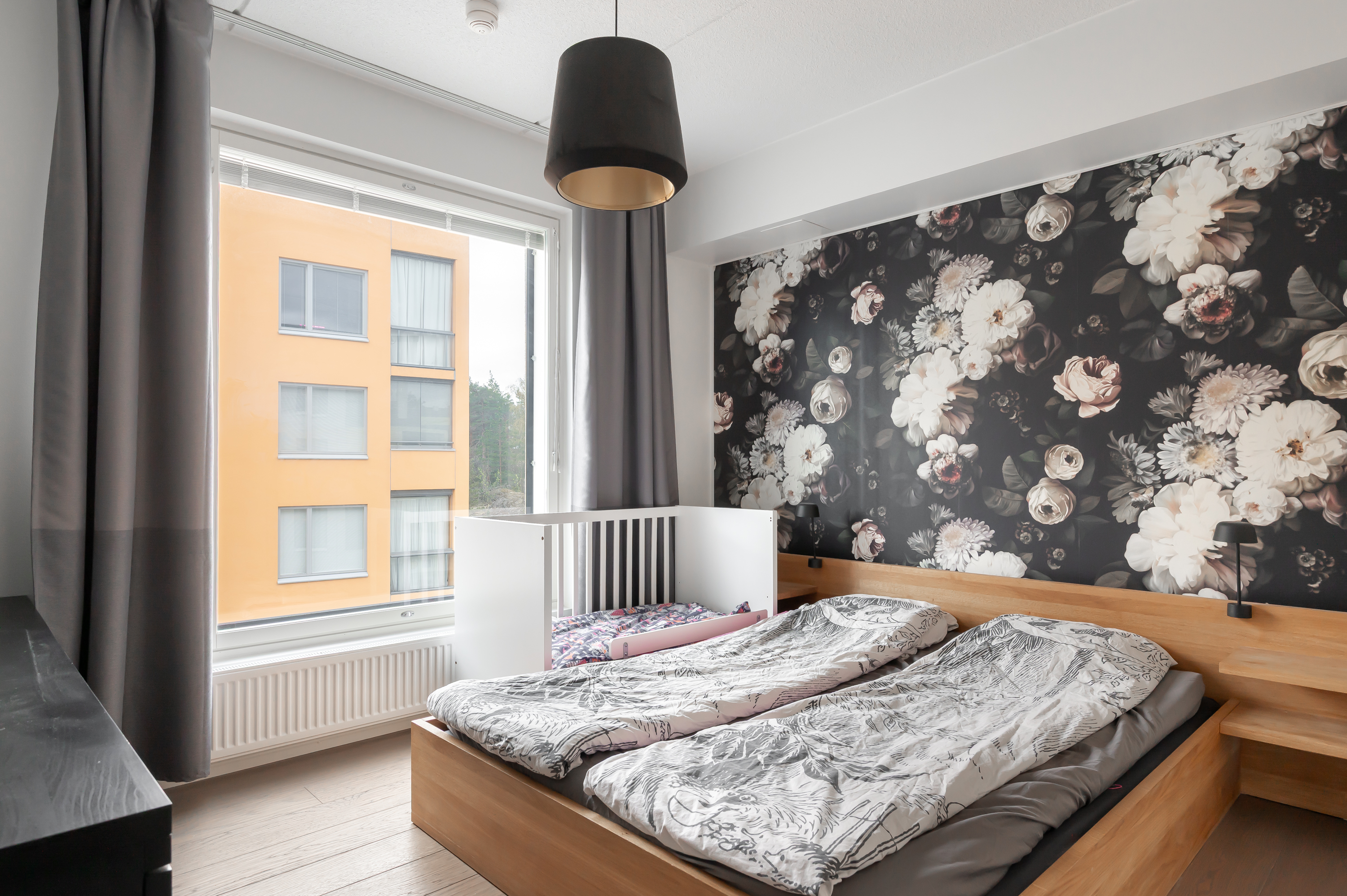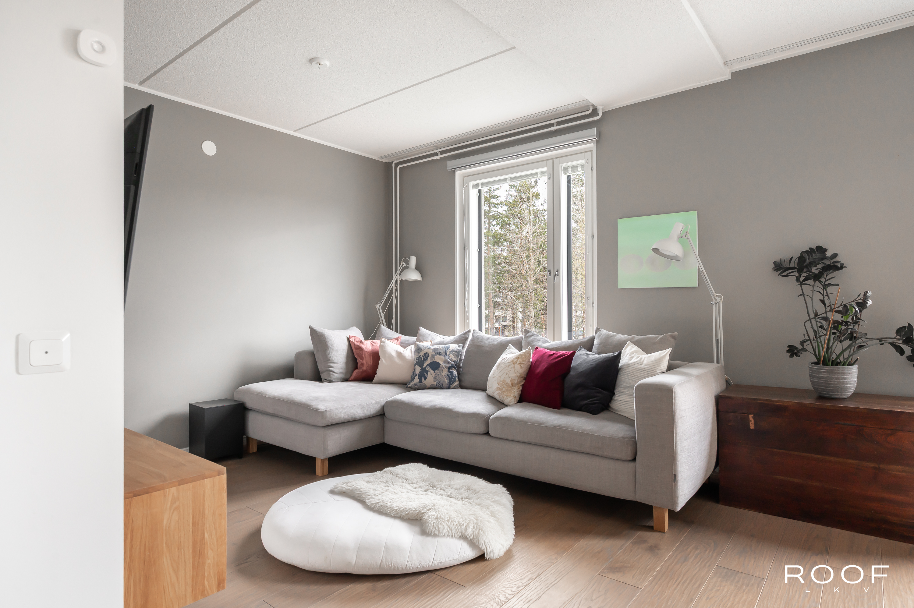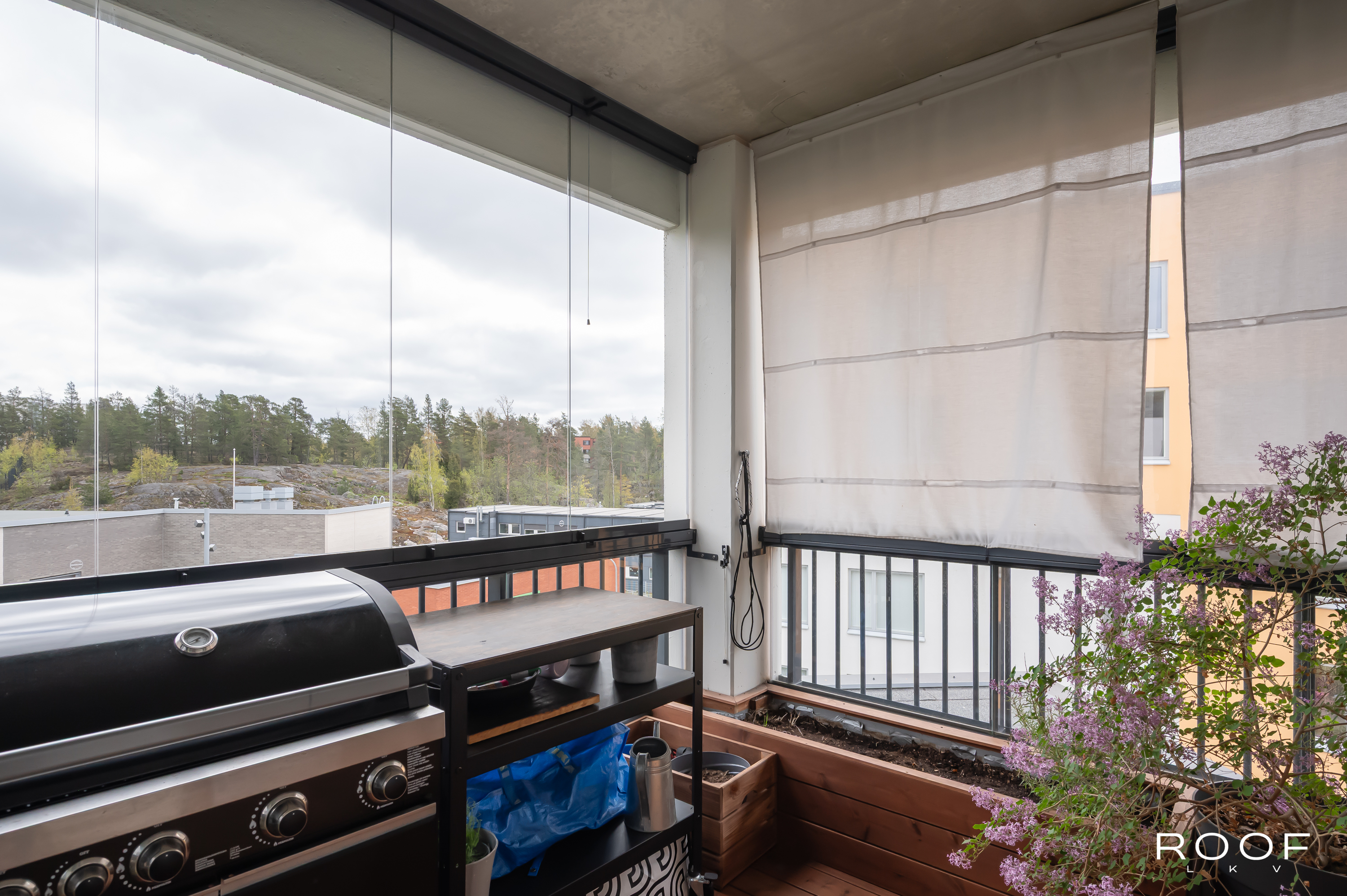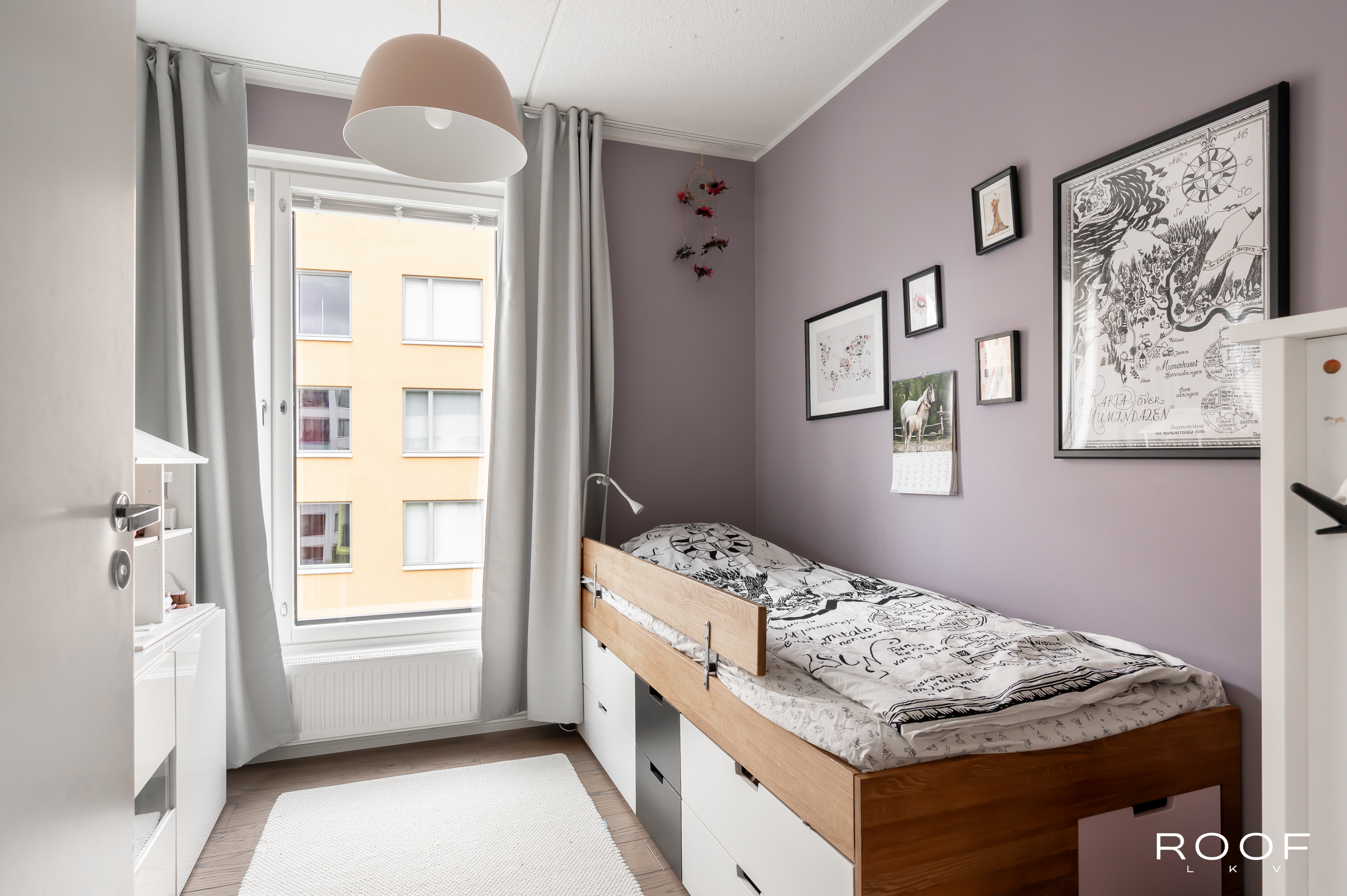4.kerroksen valoisa kulmahuoneisto metsän reunassa. Päämakuuhuoneen yhteydessä on suuri, liukuovellinen vaatehuone. Tilava eteinen, johon mahtuu lipasto ja muuta sisustusta tai vaikka lastenvaunut.