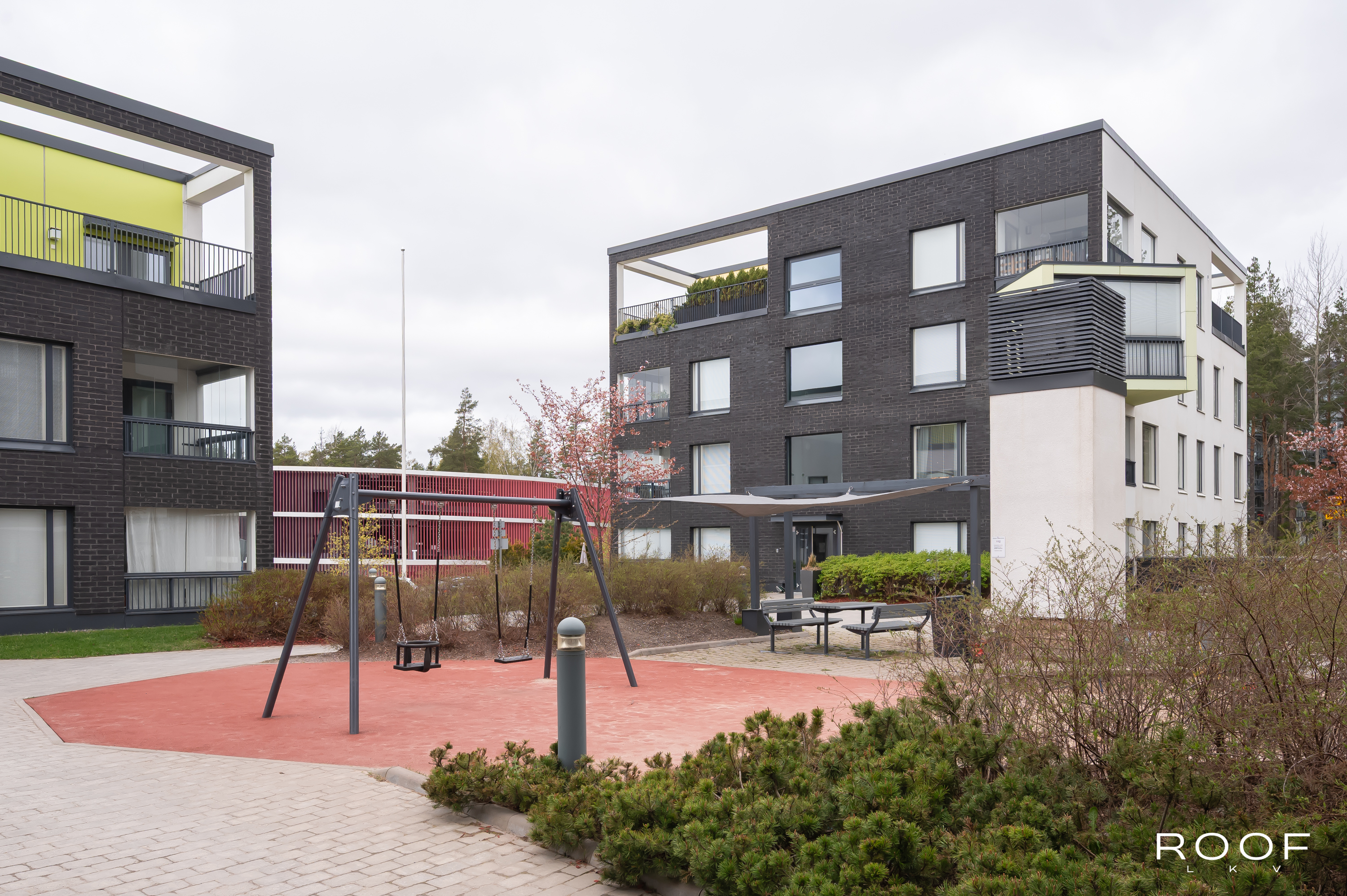 Lähikauppaan 600 m, päiväkoti naapurikorttelissa, leikkipuistot, bussipysäkki ja ala-aste myös lyhyen kävelymatkan päässä.