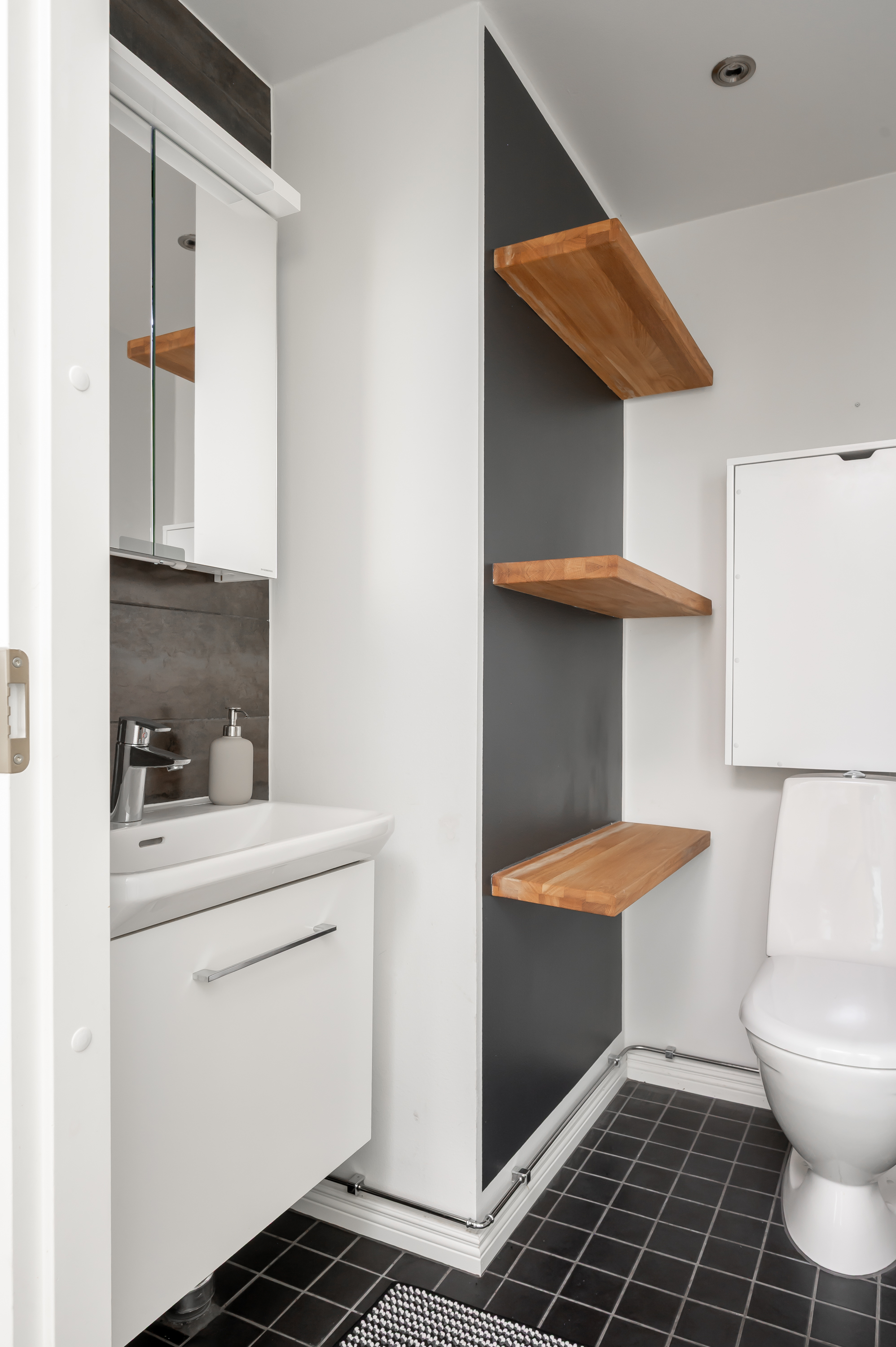 Tilavassa kylpyhuoneessa on suihkun lisäksi amme ja erillinen wc luo lisää asumismukavuutta.
