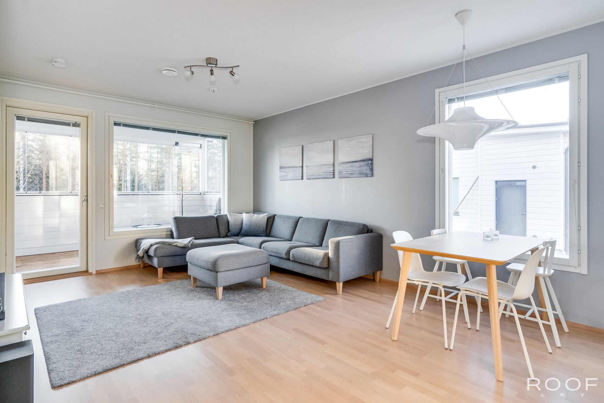 Erinomaisella ja rauhallisella sijainnilla, hyvällä maulla suunniteltu tyylikäs koti, hyvästä taloyhtiöstä, keskellä kaunista ja monimuotoista luontoa, lukuisien järvien ja mahtavien ulkoilumahdollisuuksien ympäröimänä. Sijainti lähellä kattavia palveluita, lähikaupat, koulut ja päiväkodit ovat lyhyen kävelymatkan päässä.