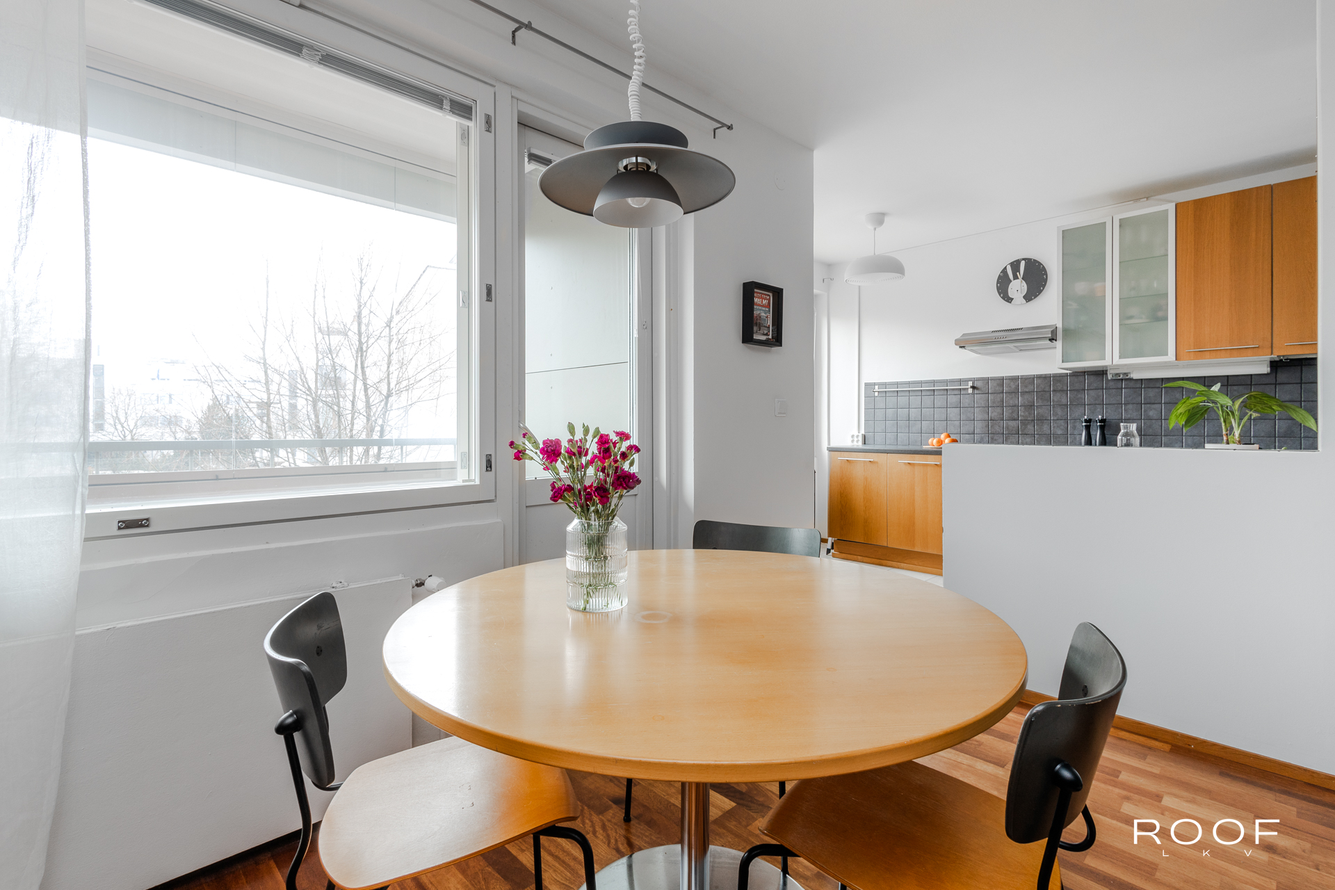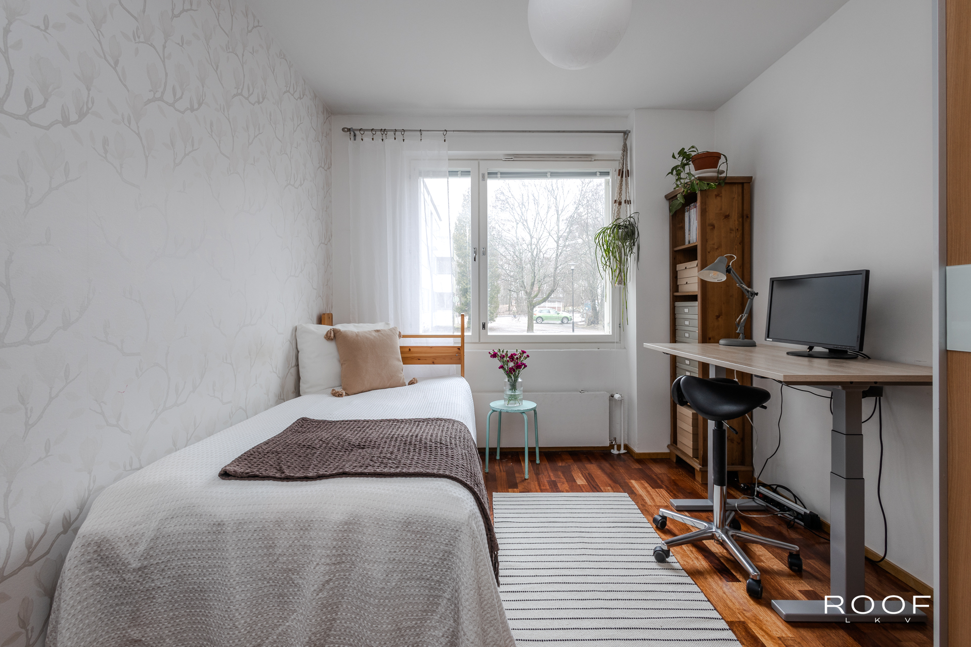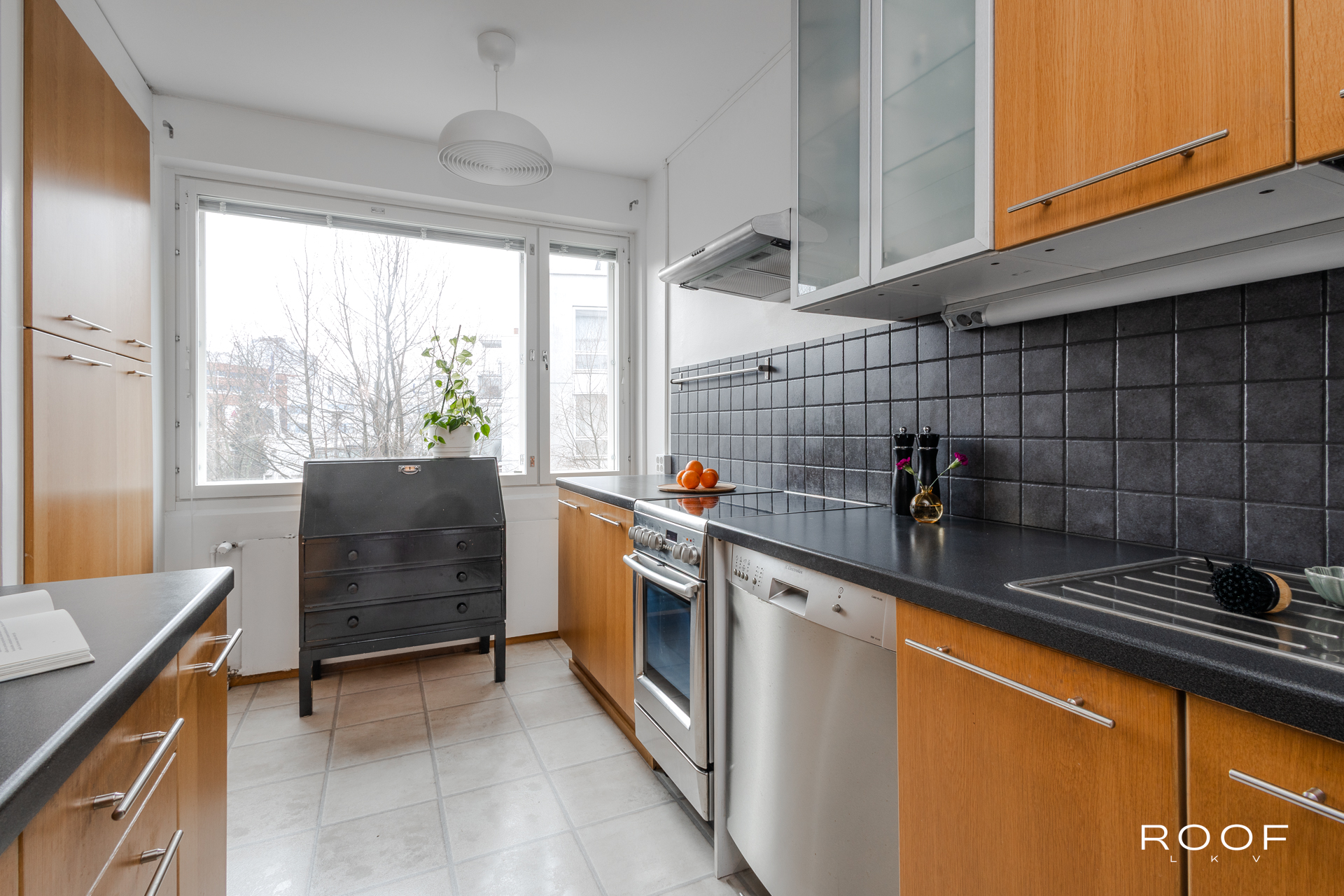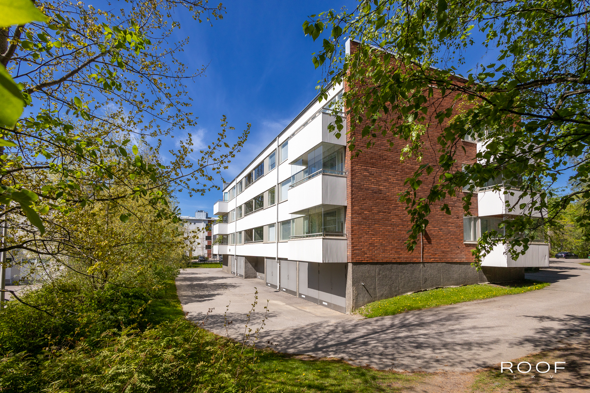 Tämä siistikuntoinen ja hyvin suunniteltu asunto tarjoaa avarat huoneet, toimivan avokeittiön ja ajanmukaisen kylpyhuoneen. Isot, huoneen levyiset ikkunat olohuoneessa ja toisessa makuuhuoneessa tuovat runsaasti luonnonvaloa ja tekevät kodista viihtyisän. Säilytystilan takaavat kaapistot makuuhuoneissa sekä olohuoneessa. Äänieristetyt ovet tarjoavat rauhallista asumista. Lasitettu parveke tuo mukavasti lisätilaa. Vuonna 2011 linjasaneerauksen yhteydessä remontoituun kylpyhuoneeseen mahtuu pesukone. Tämä koti on muuttovalmis – pääset nauttimaan vehreistä näkymistä heti sisään muuttaessasi!