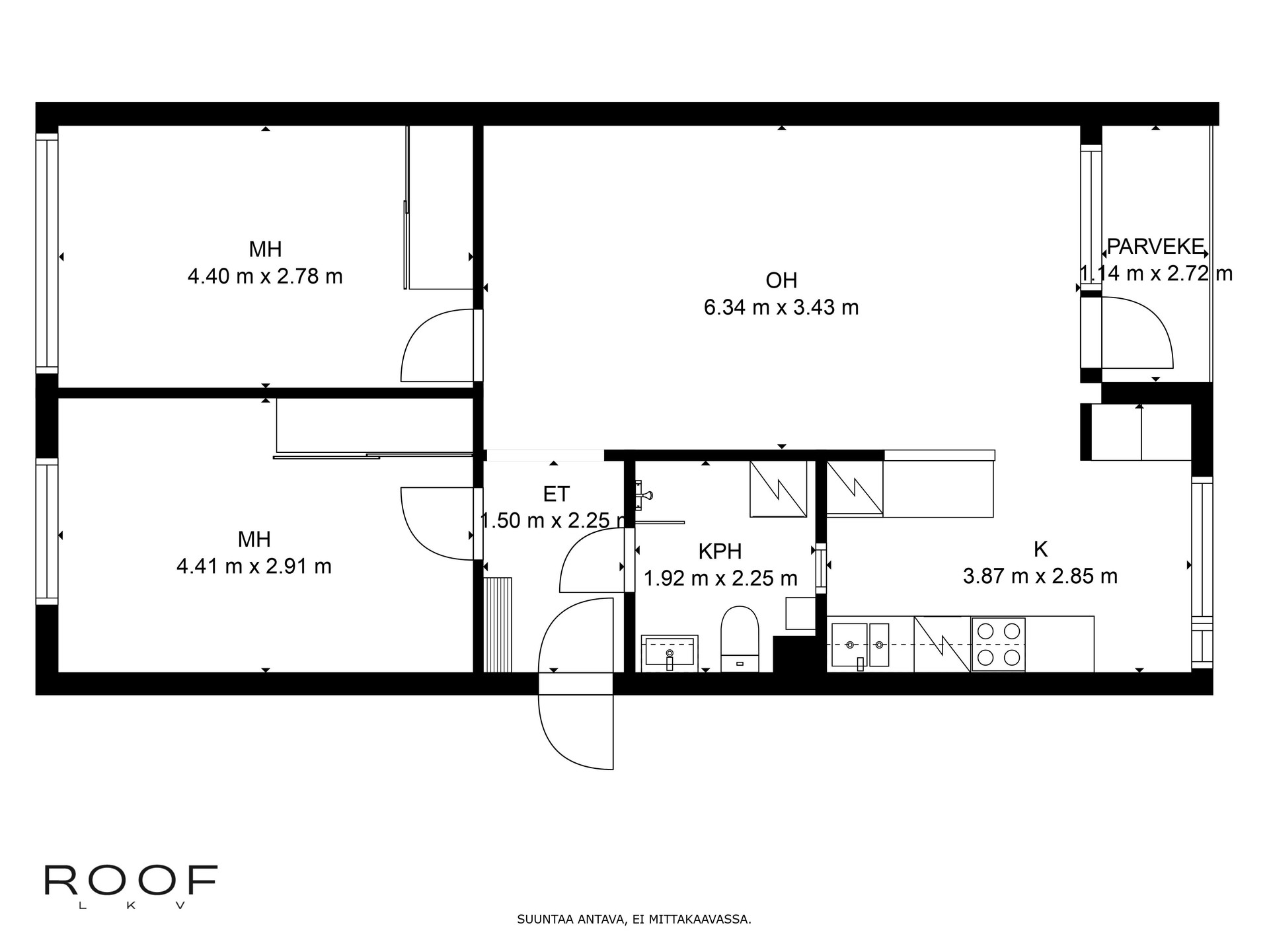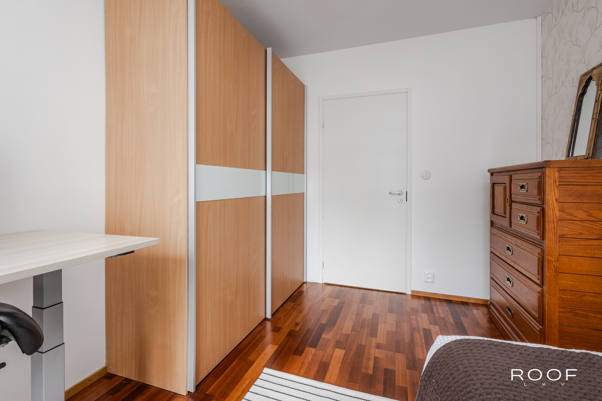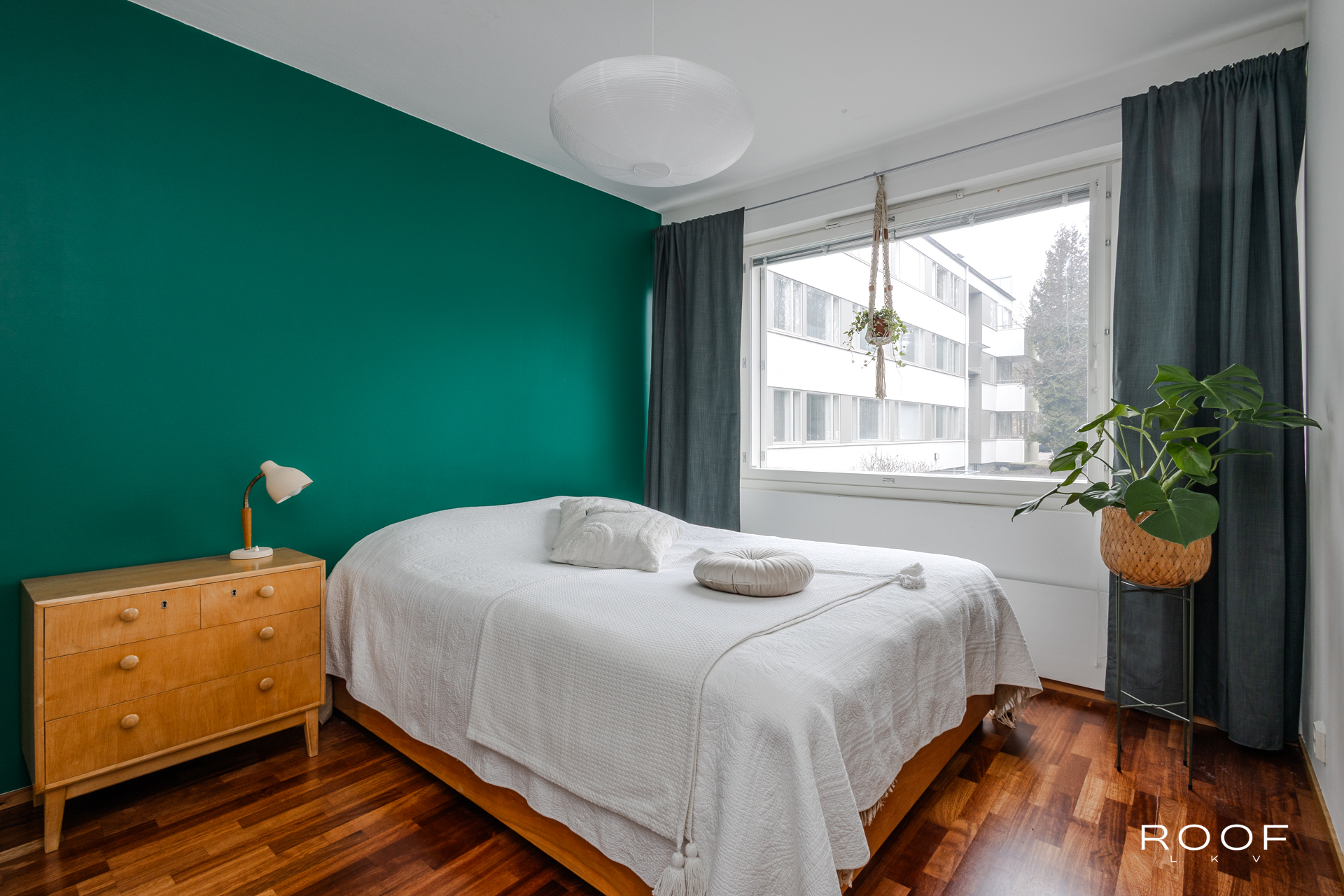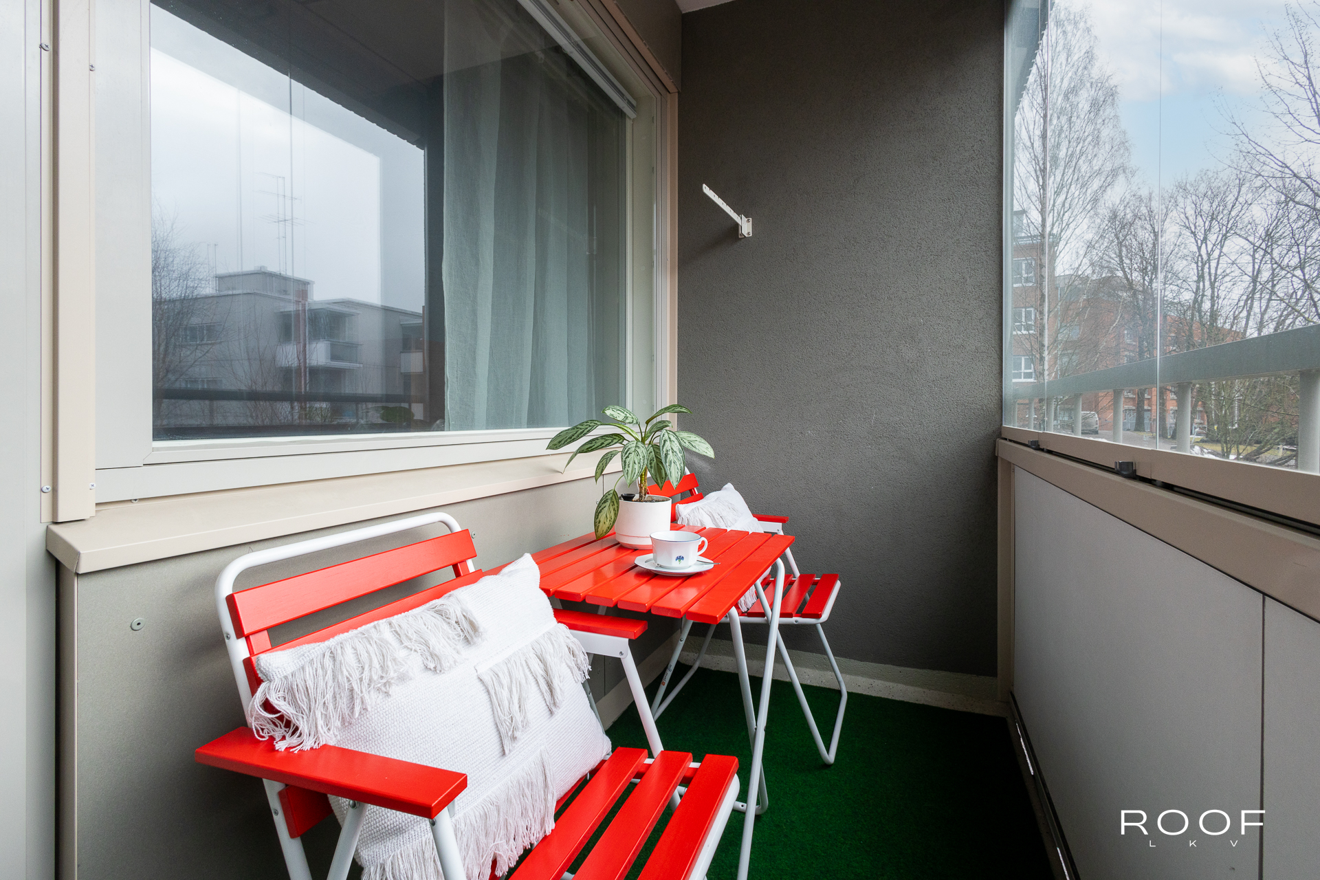 Tämä siistikuntoinen ja hyvin suunniteltu asunto tarjoaa avarat huoneet, toimivan avokeittiön ja ajanmukaisen kylpyhuoneen. Isot, huoneen levyiset ikkunat olohuoneessa ja toisessa makuuhuoneessa tuovat runsaasti luonnonvaloa ja tekevät kodista viihtyisän. Säilytystilan takaavat kaapistot makuuhuoneissa sekä olohuoneessa. Äänieristetyt ovet tarjoavat rauhallista asumista. Lasitettu parveke tuo mukavasti lisätilaa. Vuonna 2011 linjasaneerauksen yhteydessä remontoituun kylpyhuoneeseen mahtuu pesukone. Tämä koti on muuttovalmis – pääset nauttimaan vehreistä näkymistä heti sisään muuttaessasi!
