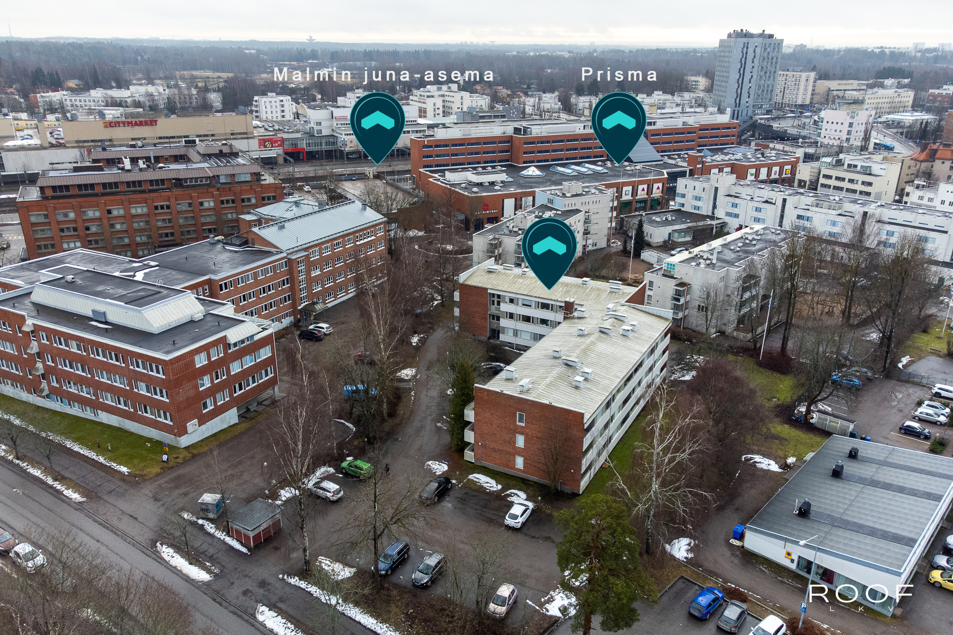 Keskeinen sijainta takaa loistavat liikenneyhteydet ja palvelut. Kaksi kauppakeskusta Malmintori ja Malmin Nova sijaitsevat lyhyen kävelymatkan päässä. Malmin juna-asema ja bussiterminaali tarjoavat erinomaiset yhteydet kaikkiin suuntiin: Helsingin keskustaan, Vantaalle, Itä-Helsinkiin ja Espooseen. Malmi on kehittyvä kaupunkialue, jonne rakennetaan uusia palveluja ja asuintaloja. Alueelle on suunnitteilla muun muassa maauimala ja Viima-raitiotie. Lapsiperheille ja opiskelijoille Malmi tarjoaa monia kouluja, harrastusmahdollisuuksia ja upeita ulkoilureittejä – Malmin uimaranta on vain muutaman kilometrin päässä. Tämä koti yhdistää mukavan asumisen ja loistavan sijainnin!