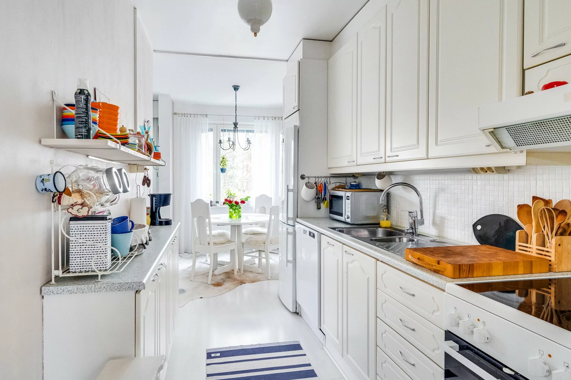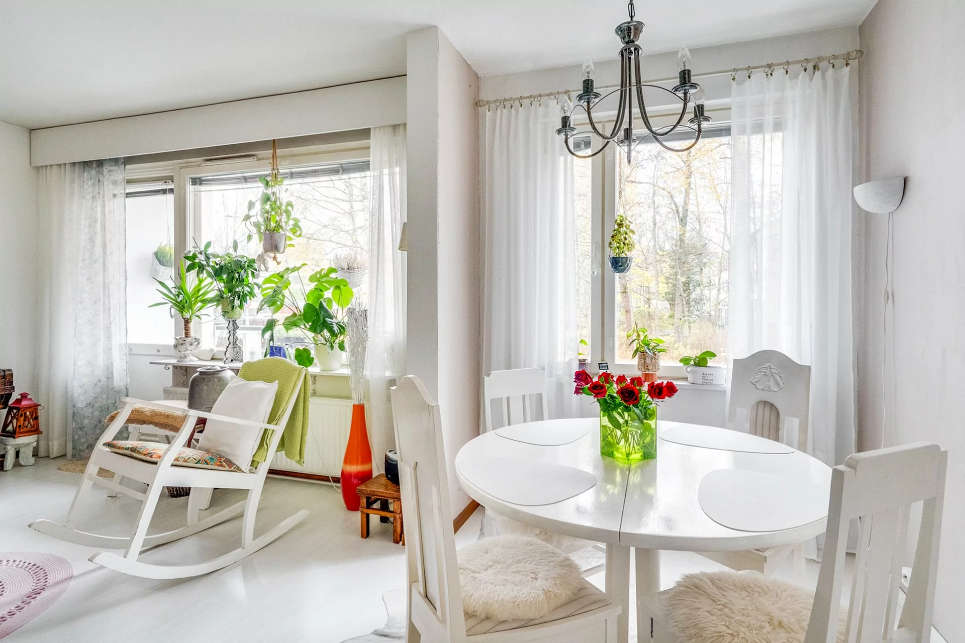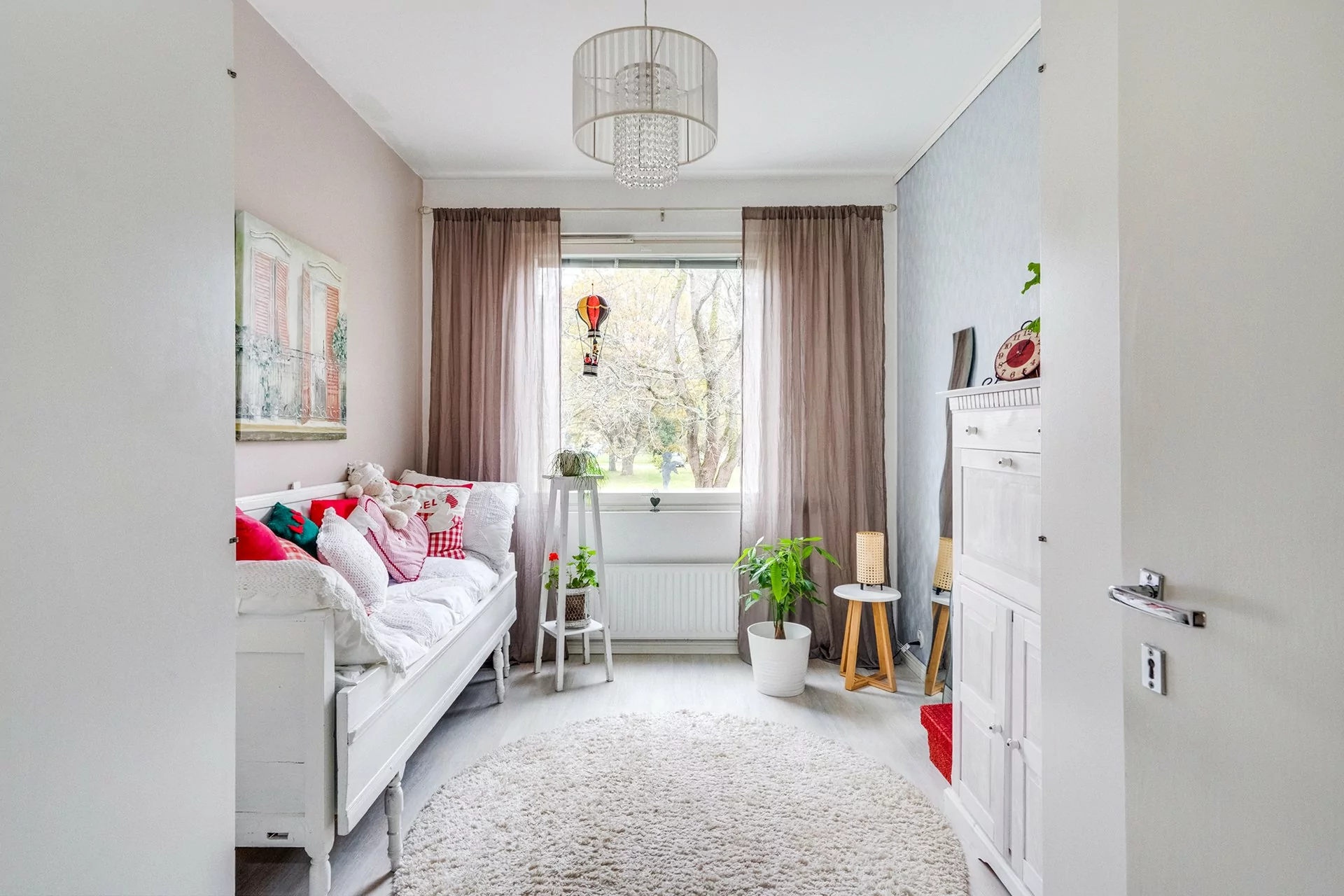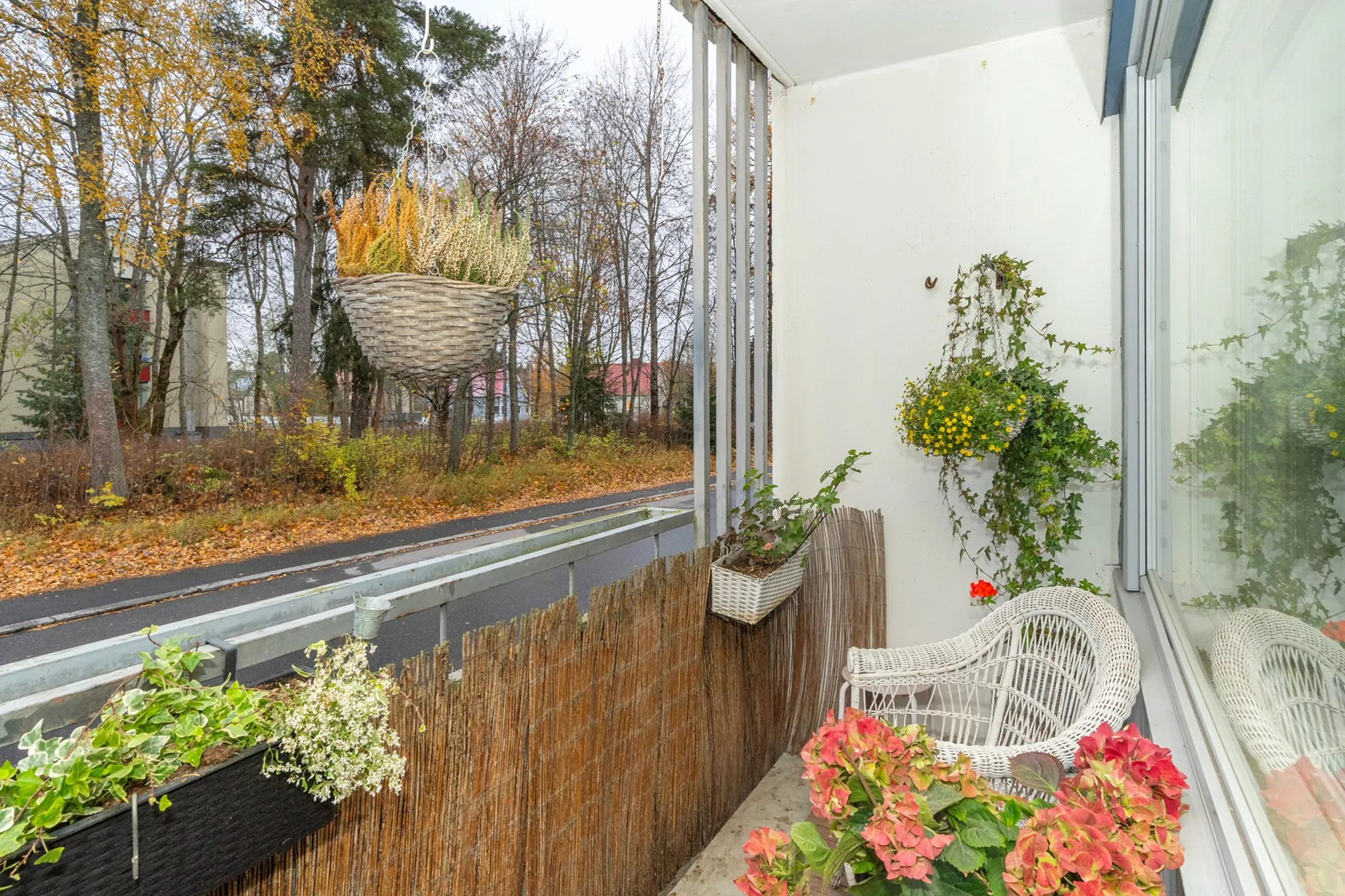 Olohuoneen ja keittiön ikkunat avautuvat länteen kadun puolelle, kun taas makuuhuoneiden ikkunat tarjoavat rauhallisen näkymän itään takapihalle. Asunnossa on myös länteen suuntautuva parveke.