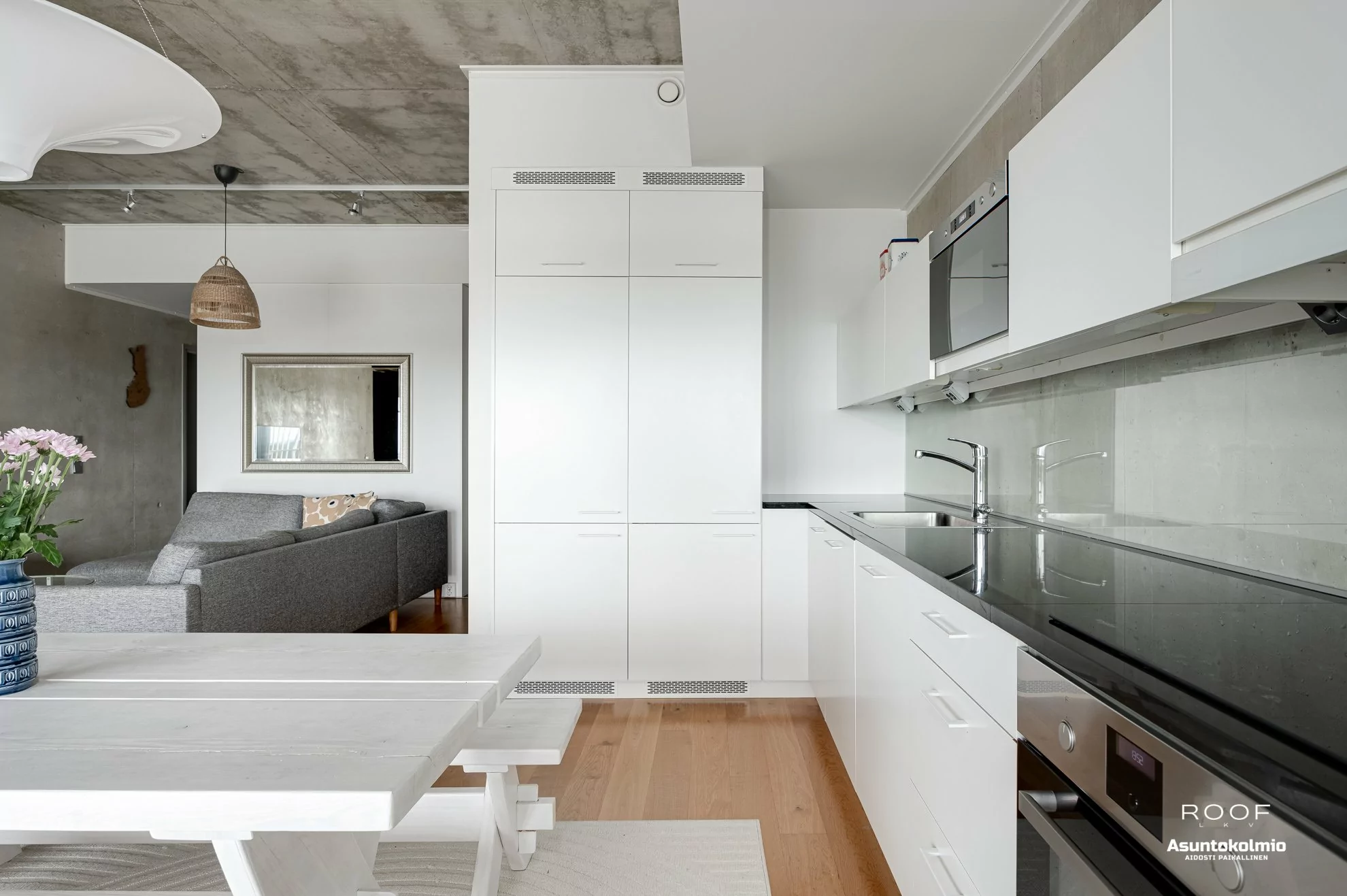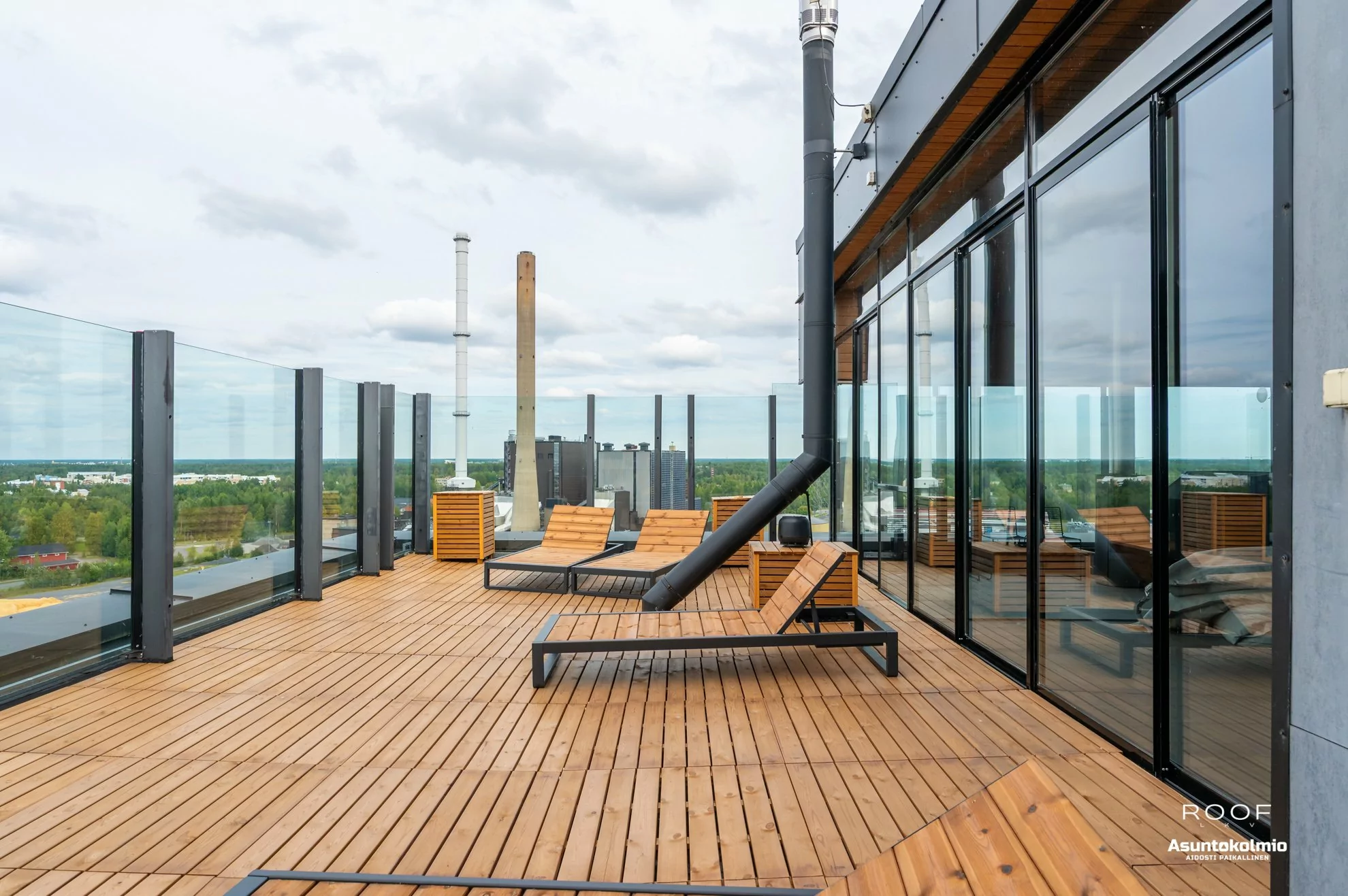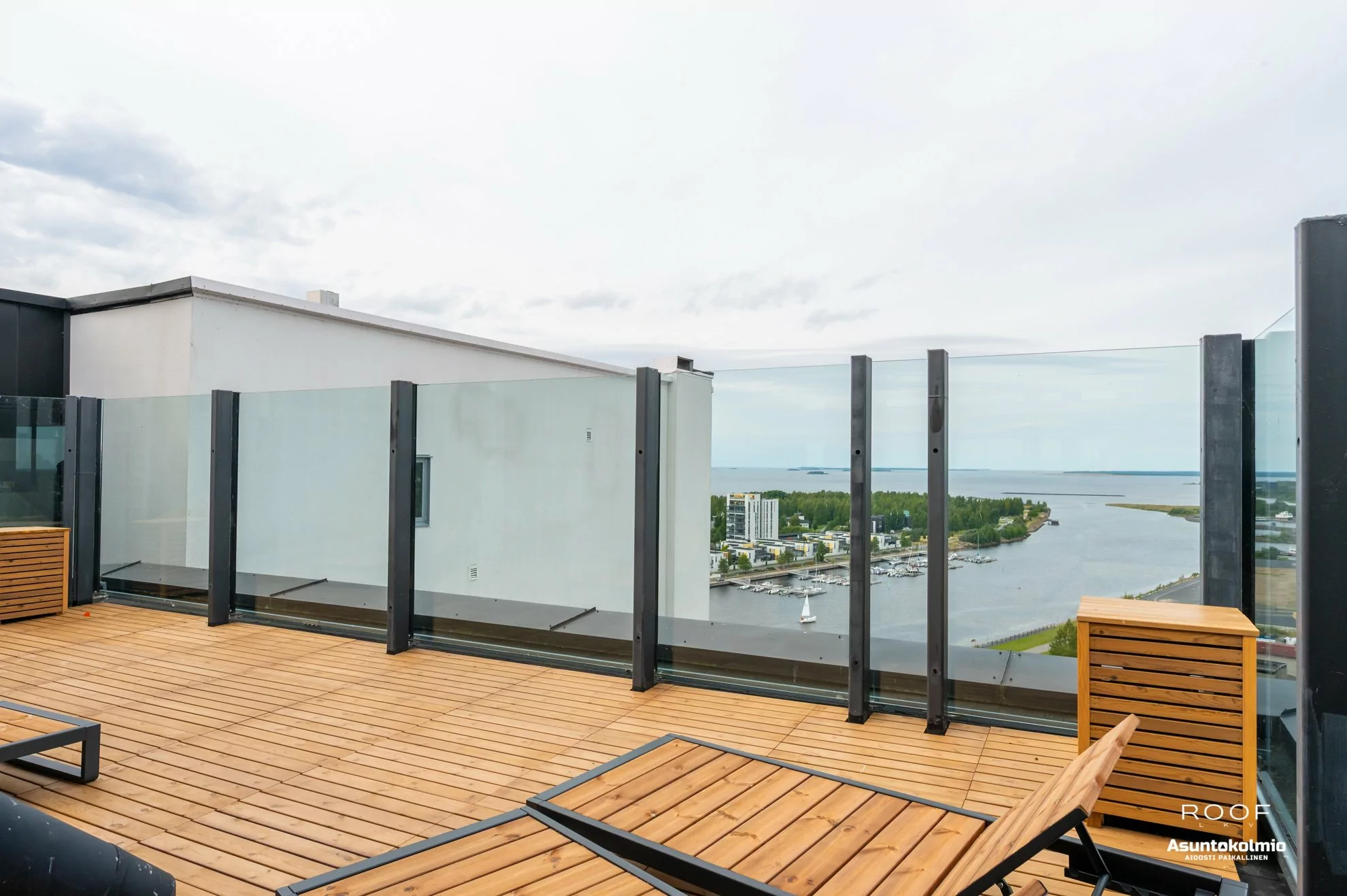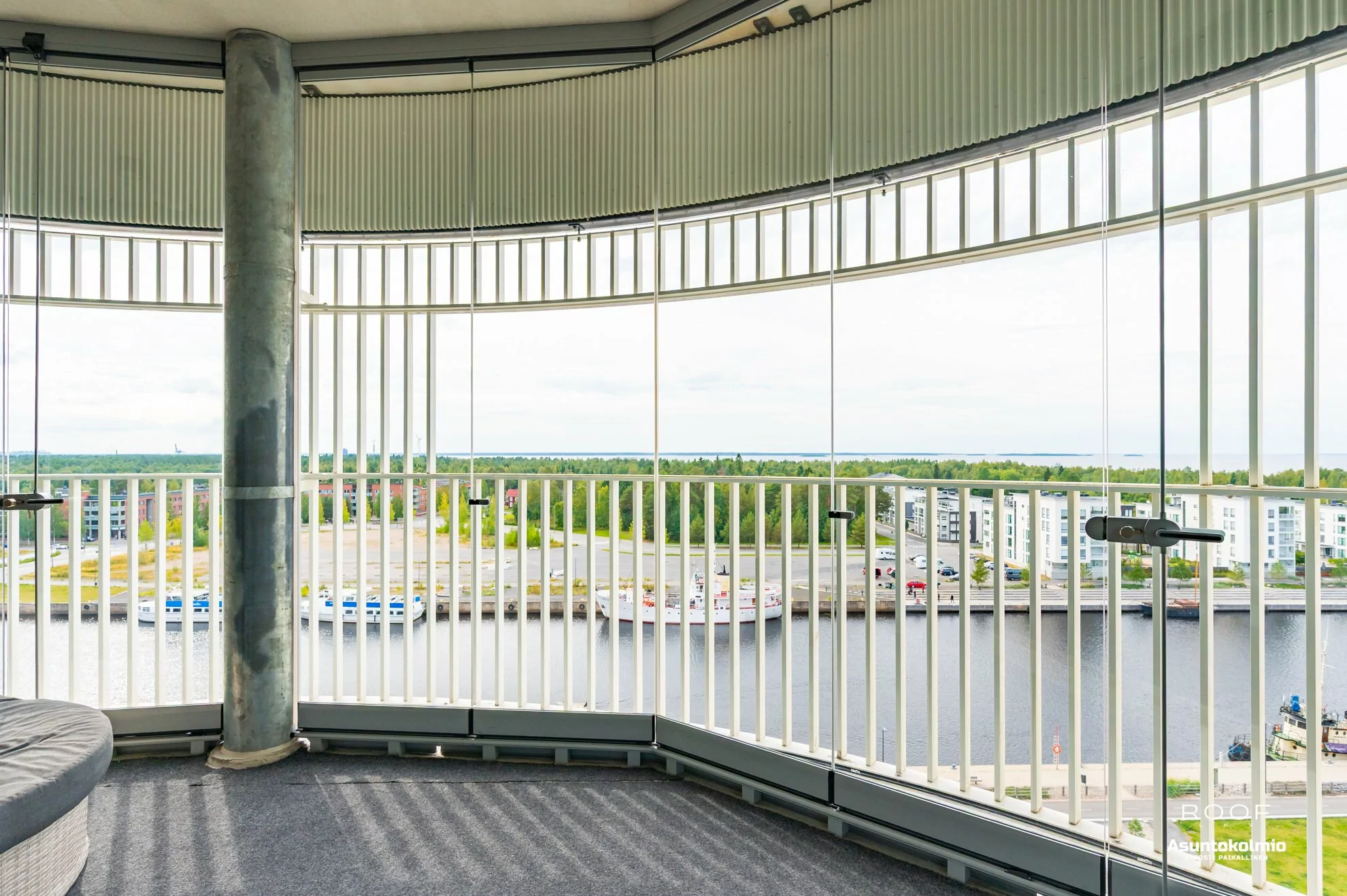 Yhdestä Oulun komeimmasta kerrostalosta kahdeksannen kerroksen uniikki huoneisto. Tässä kahdella kylpyhuoneella ja lasitetuilla parvekkeilla varustetussa asunnossa on sitä jotakin! Hoitovastike (359,55€ / kk) sisältää maanvuokran ja lämmityksen, lämmönlähteenä kaukolämpö. Autohallipaikka myydään erikseen, paikalle on asennettu sähköauton 11 kW latausasema. Lämpimään halliin pääset sujuvasti hissillä suoraan asunnolta.