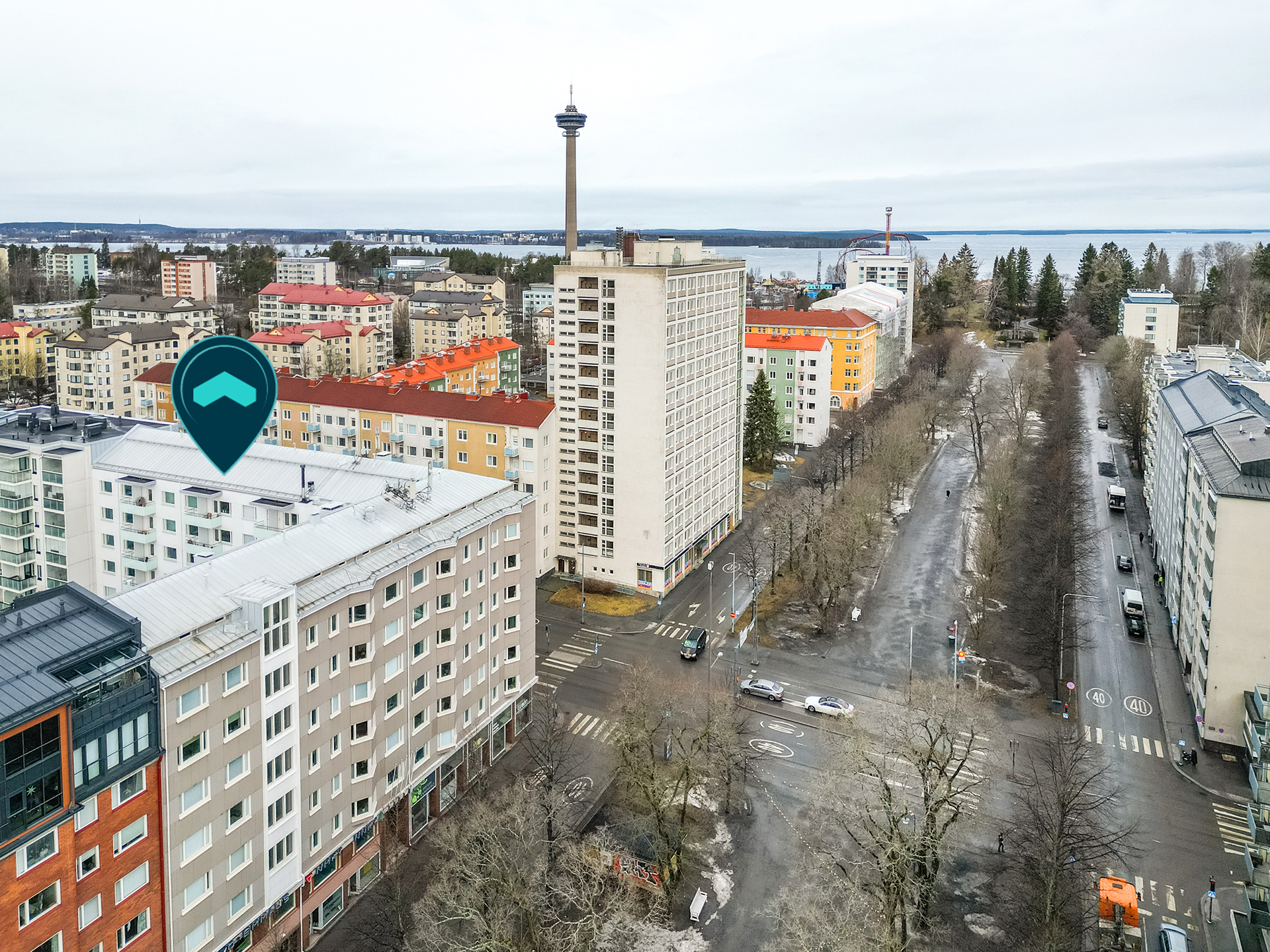 Tämä viehättävä kolmio sijaitsee Hämeenpuistossa tarjoten asukkailleen Tampereen keskustan palvelut ja liikenneyhteydet. Asunto on 73,5 neliömetrin kokoinen ja sijaitsee vuonna 1957 rakennetun talon neljännessä kerroksessa. Taloyhtiössä on hissi, mikä helpottaa arkea.