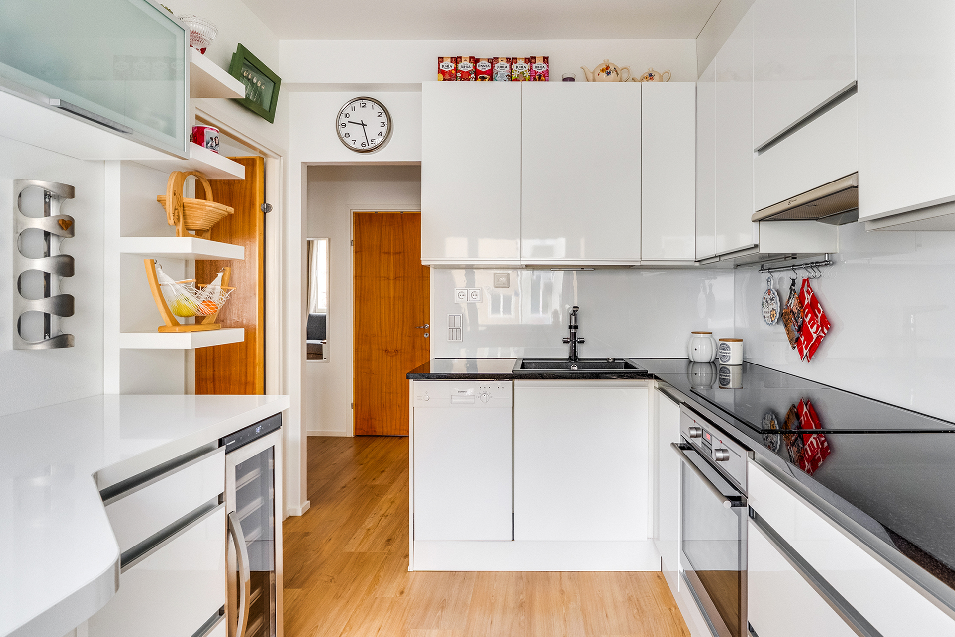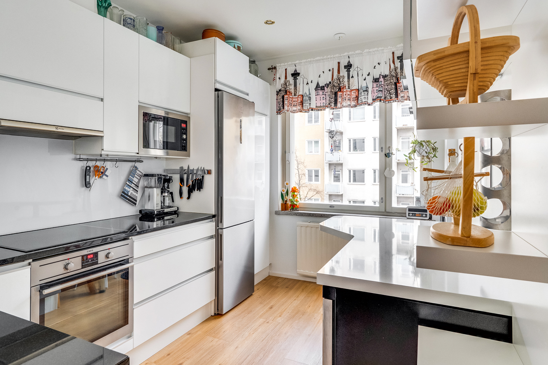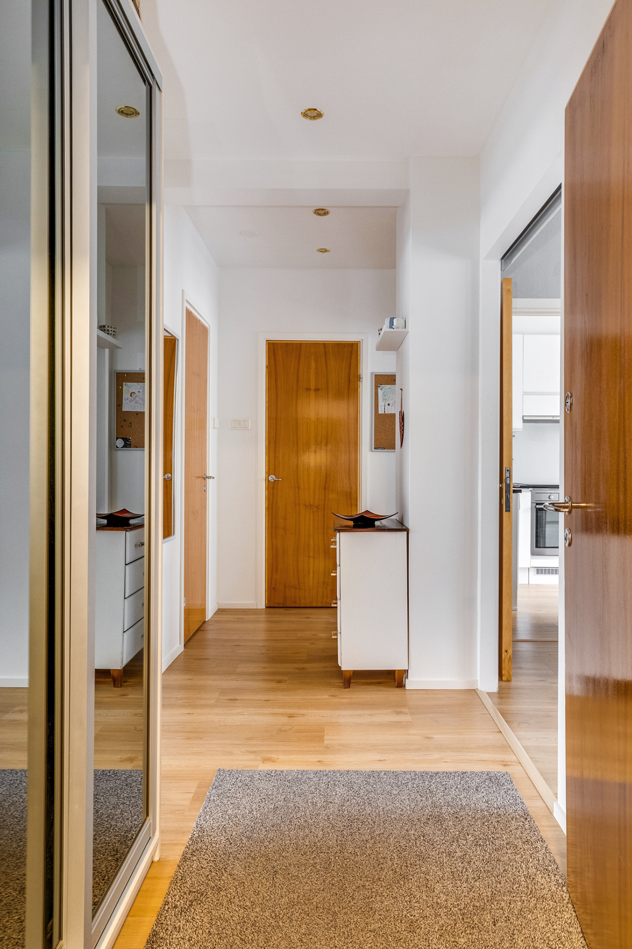 Asunnon tilat ovat hyväkuntoisia. Keittiö on varustettu nykyaikaisilla kodinkoneilla, kuten induktioliedellä ja pyrolyysiuunilla viinikaappia unohtamatta. Keittiön, olohuoneen ja makuuhuoneiden lattiat ovat vinyyliä, mikä tuo tiloihin lämpimän ja modernin ilmeen. Kylpyhuoneessa ja erillisessä WC:ssä on laattalattiat lattialämmityksellä, ja saunassa voi rentoutua sähkökiukaan lämmössä.