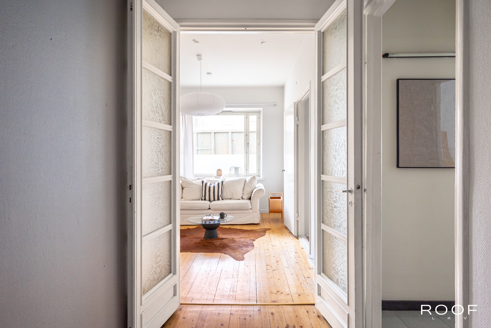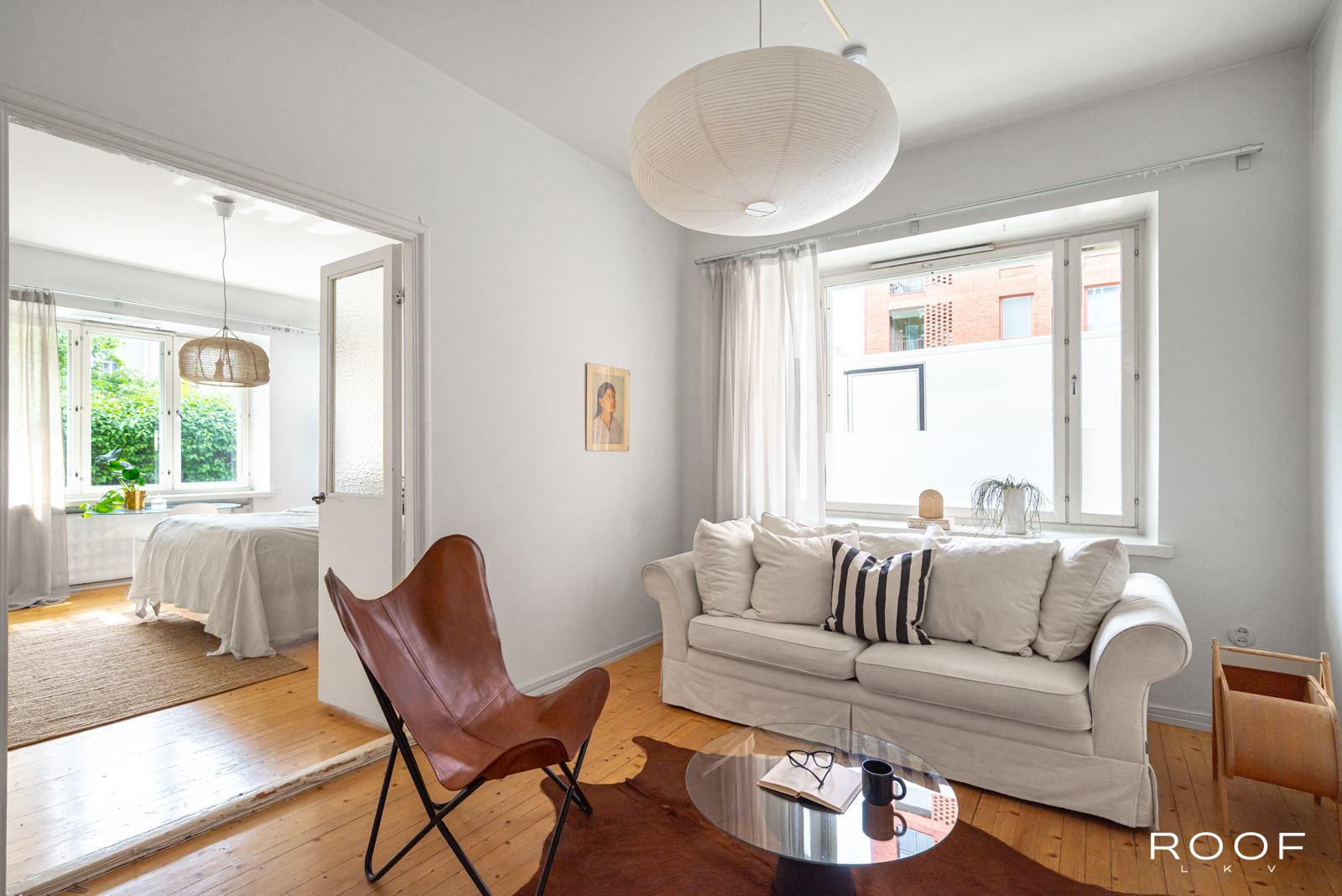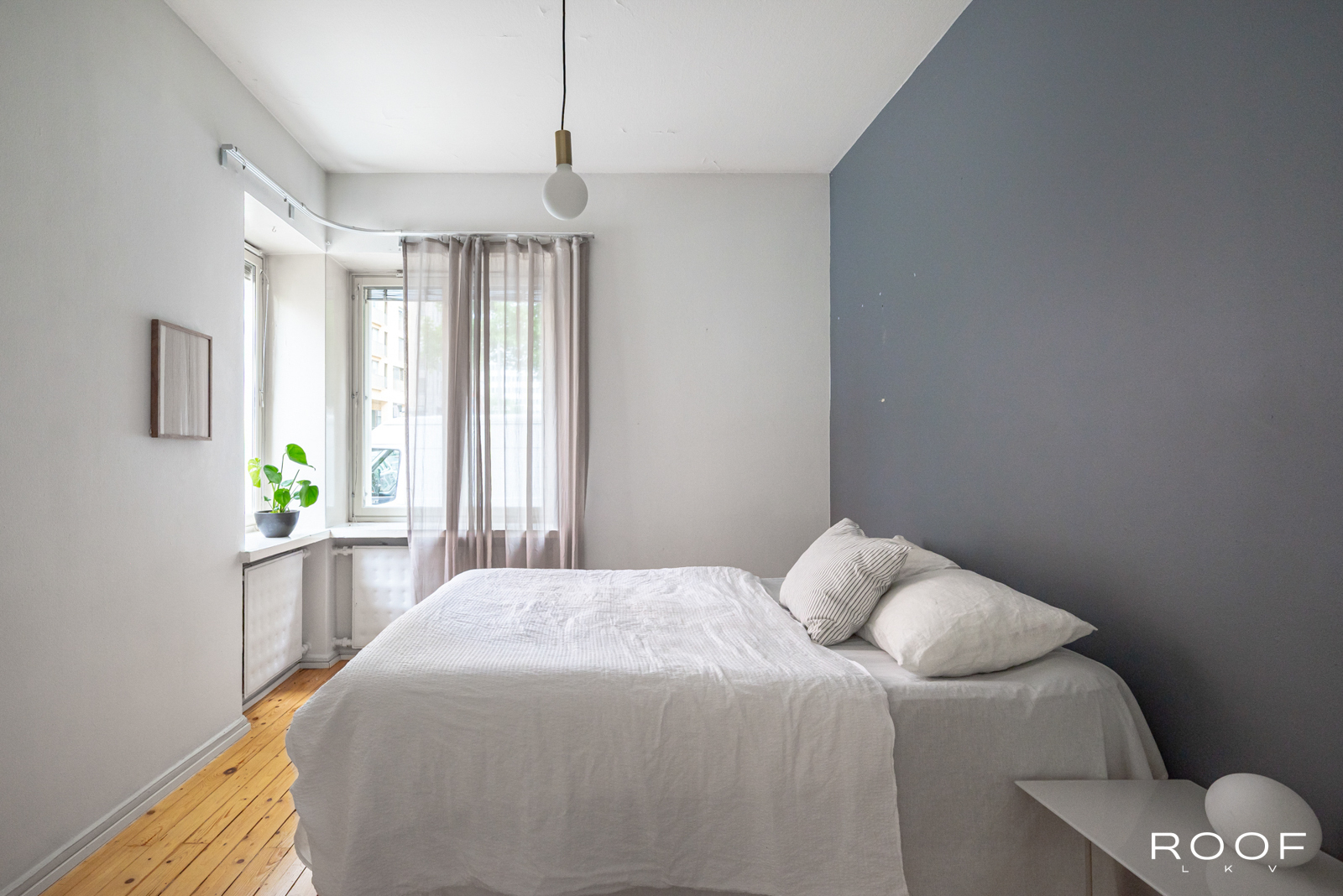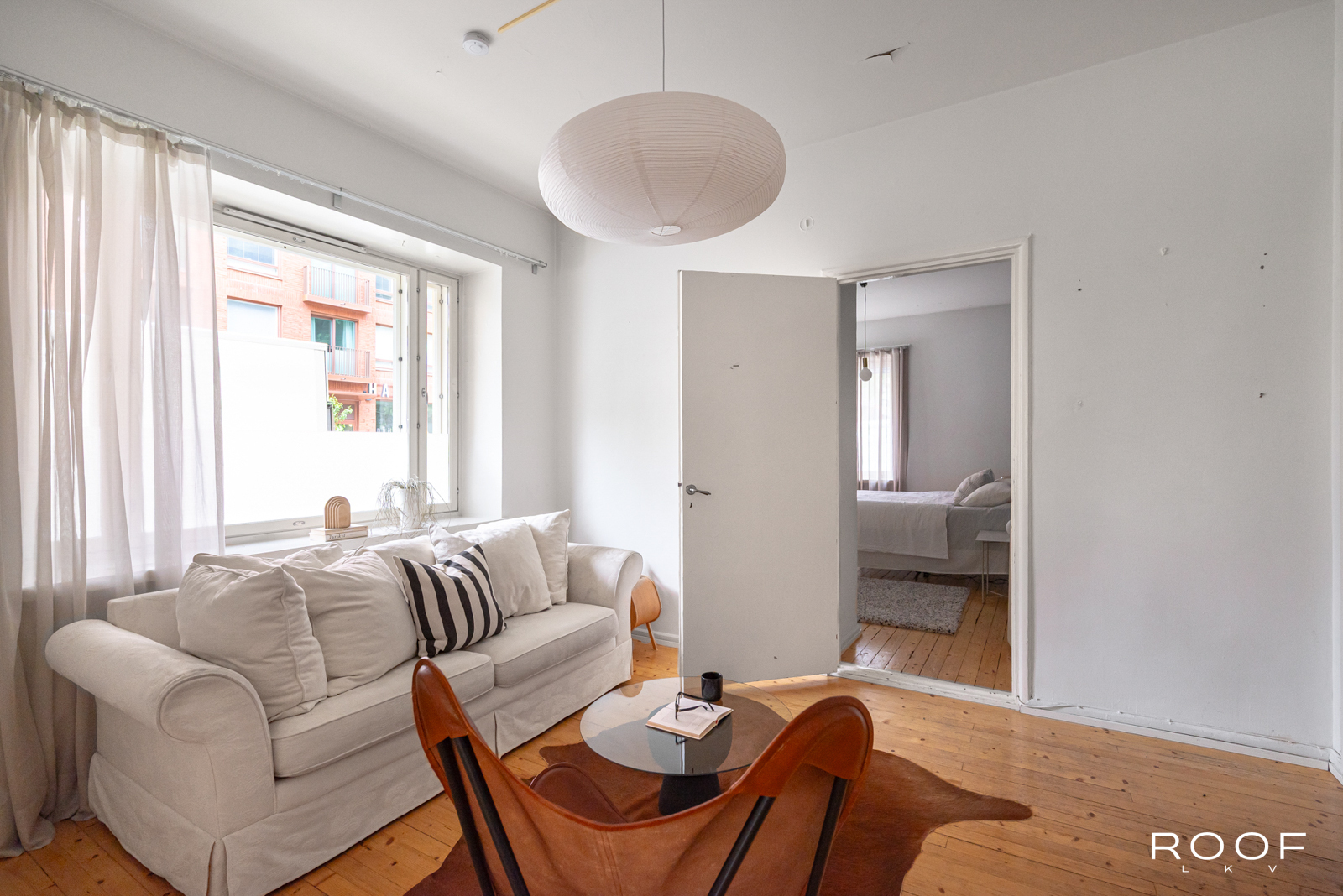 Tämä persoonallinen läpitalon kolmio sijaitsee 1930-luvun kivitalossa. Asunto pitää sisällään toimivan pohjaratkaisun ja pohjaratkaisu soveltuu hyvin esimerkiksi kimppakämppäläisille, perheelle tai pariskunnalle. Asunnossa on erillinen keittiö, jossa on runsaasti kaappi- ja laskutilaa sekä astianpesukone valmiiksi asukkaan käyttöön. Keittiössä on tilaa myös ruokailuryhmälle. Asunnon olohuone sijoittuu makuuhuoneiden väliin tarjoten huoneisiin omaa rauhaa. Kaksi makuuhuonetta ovat kumpikin hyvänkokoisia ja niissä on kaapistot säilytystilaa varten. Kylpyhuone on laatoitettu ja siellä oleva pyykinpesukone voi jäädä asukkaan käyttöön. Neutraali värimaailma antaa oivan pohjan sisustukselle ja muun muassa kaunis lautalattia ja ovet tuovat tilaan vanhan kivitalon tunnelmaa.