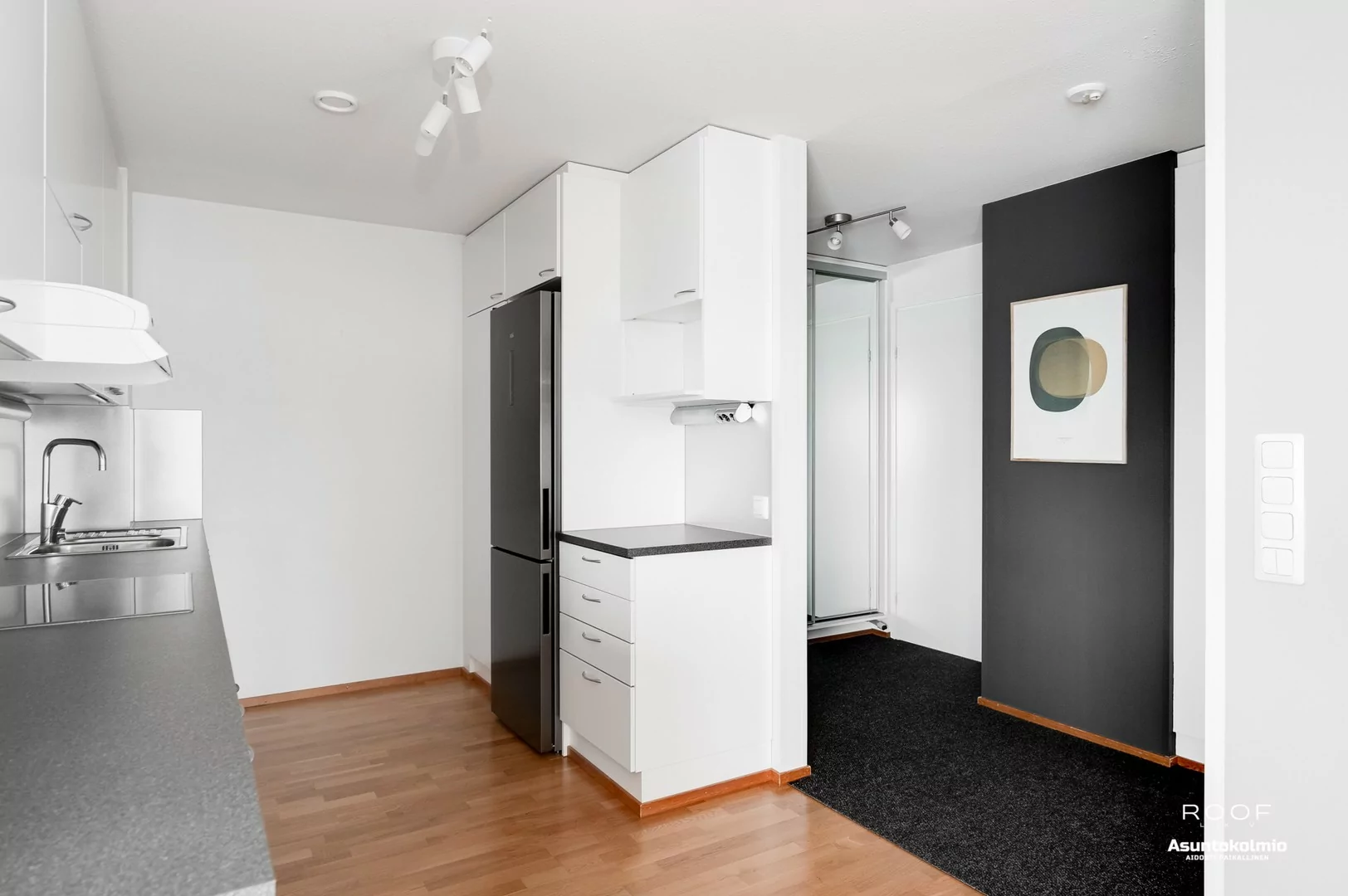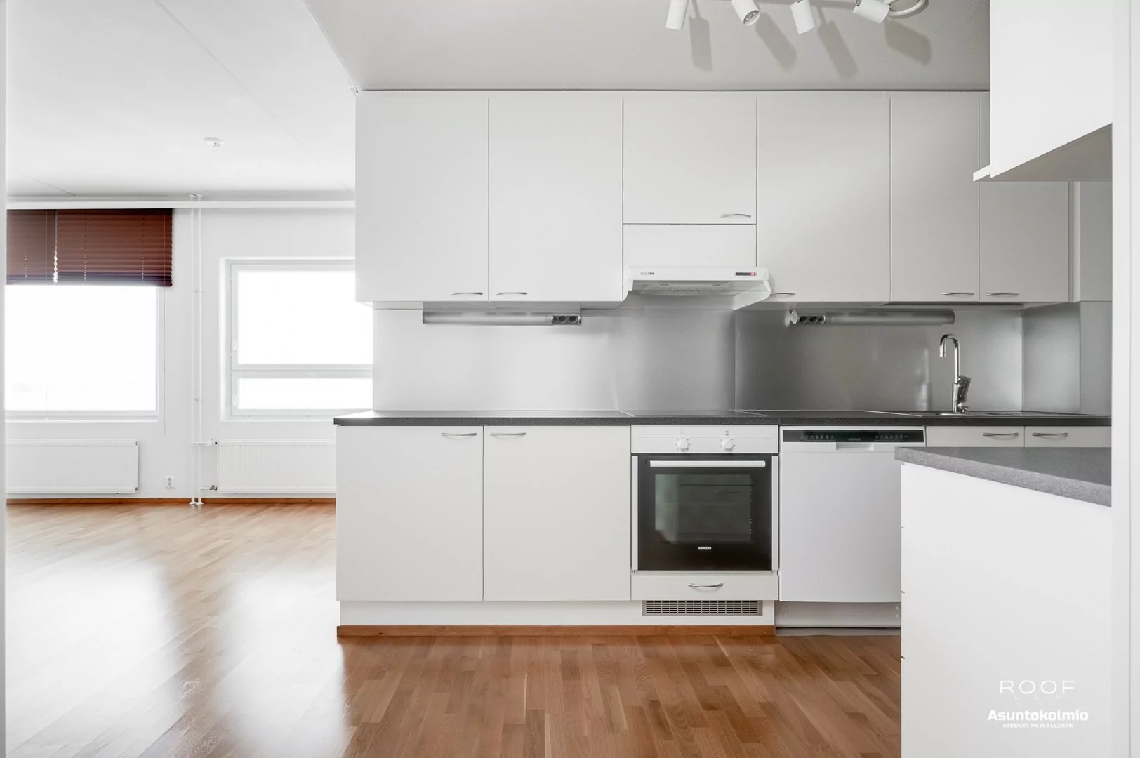 Tämä hyvän pohjaratkaisun omaava kolmio sijaitsee kuudennessa kerroksessa ja kaikista ikkunoista on hulppeat näkyvät niin kesällä kuin talvellakin. Tilava eteinen vastaanottaa sisääntulijan ja liukuovikaapistossa on tilaa takeille ja kengille. Modernissa vaalean sävyisessä keittiössä on hyvin kaappi- ja laskutilaa. Kodinkoneista jääkaappipakastin ja astianpesukone on uusittu viime vuosina. Keittiö sijoittuu todella tilavan ja valoisan olohuon...