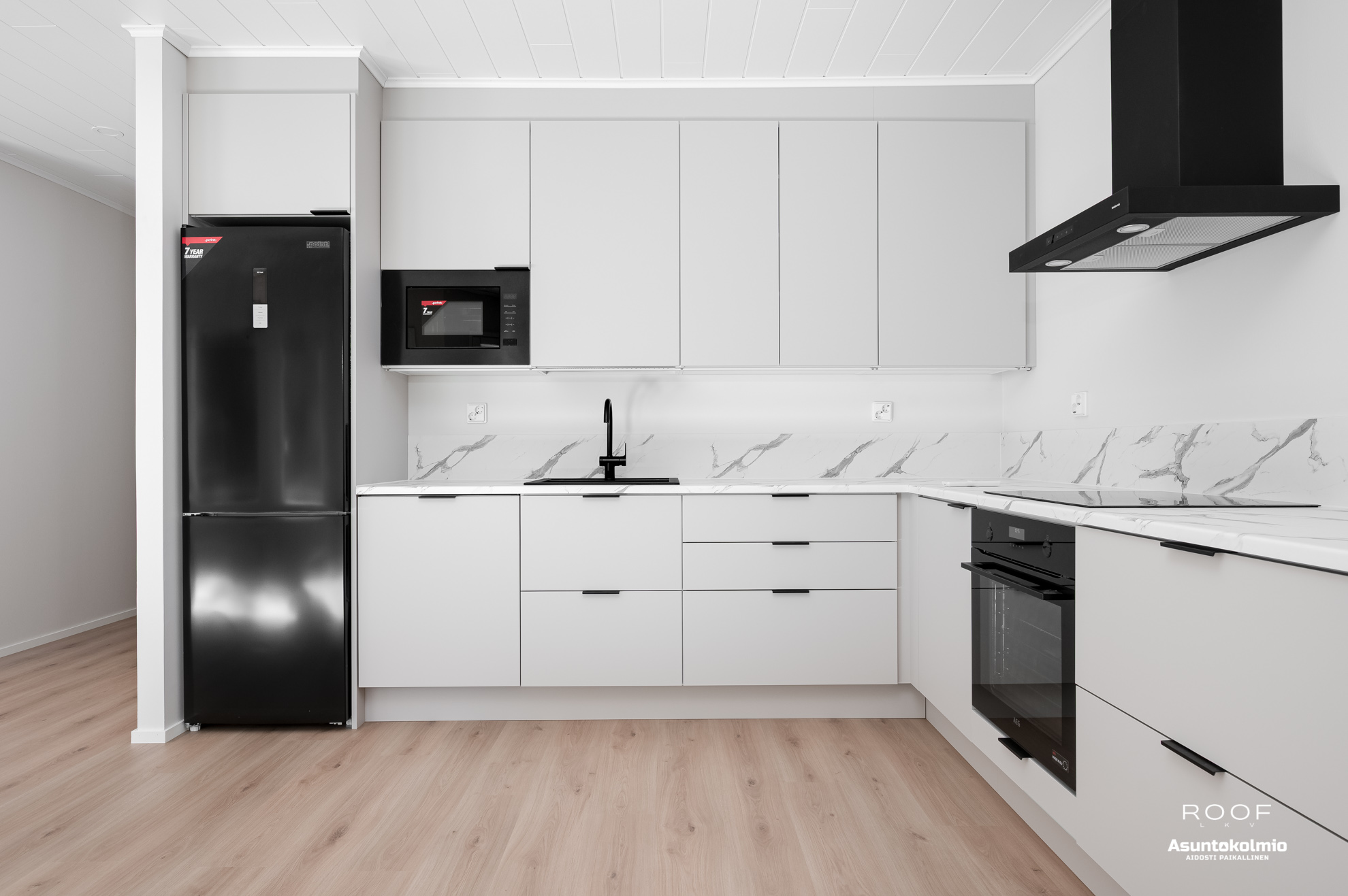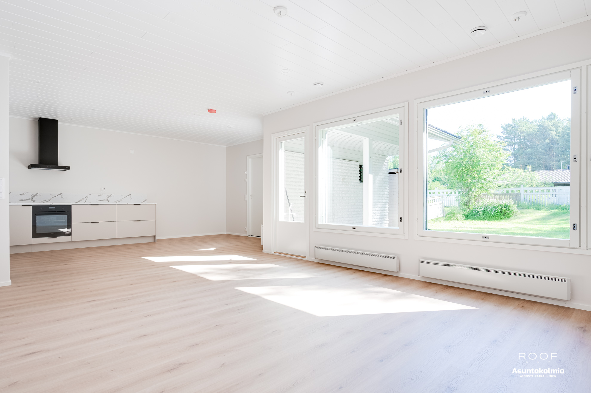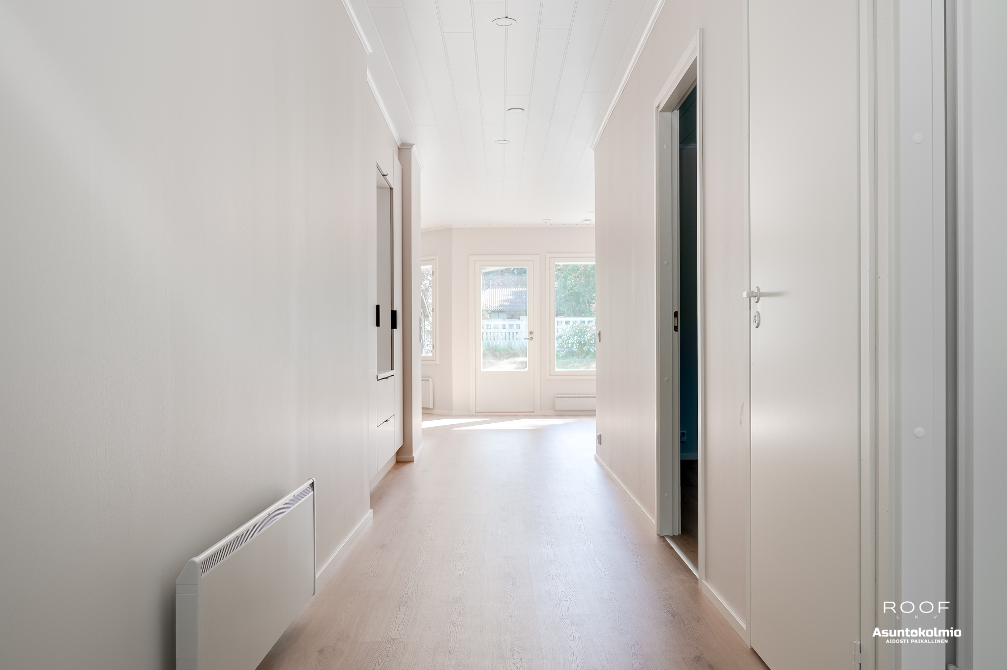 Tähän vuonna 1991 valmistuneeseen paritalon huoneistoon on tehty tänä vuonna iso määrä korjauksia, ja pääosin sisällä kaikki on uutta! Remontteihin lukeutuu mm. kengitys, jossa ulkoseinien riskirakenne on poistettu ja samalla kaikki sisäpinnat on uusittu. Kylpyhuone ja keittiö ovat erityisen komeat ja nykyaikaan sopivat. Käyttövesiputket on uusittu mittarilta asti ja ilmanvaihdon hoitaa uusi tulo-poistokone, lämmöntalteenotolla varustettuna. Remontit on toteutettu ammattilaisten toimesta ja tietysti kaupungin rakennusvalvonnan valvomina. Kaksi WC:tä, reilun kokoinen lämmin varasto ja kaapistot tuovat toivottua arjen sujuvuutta.