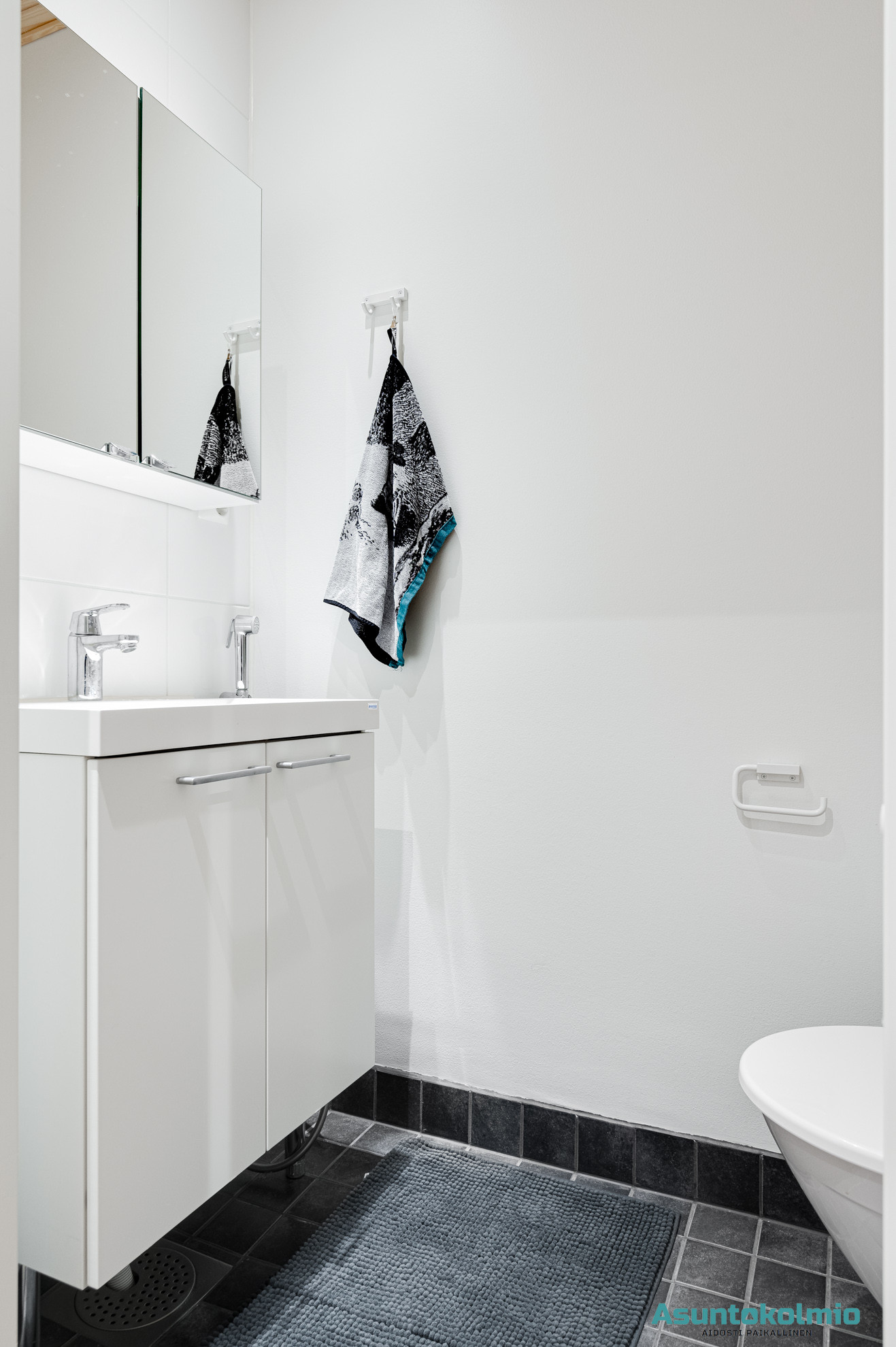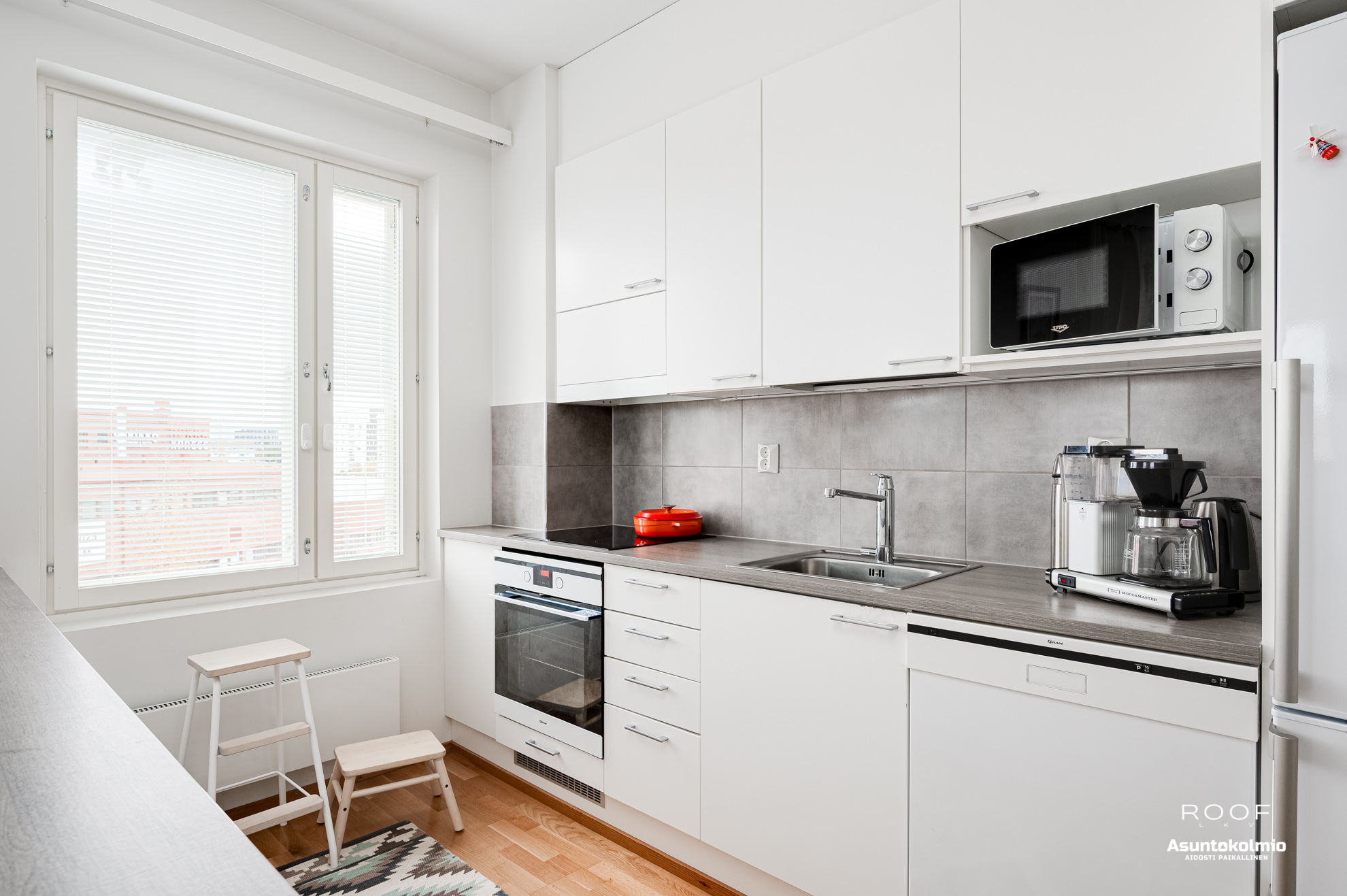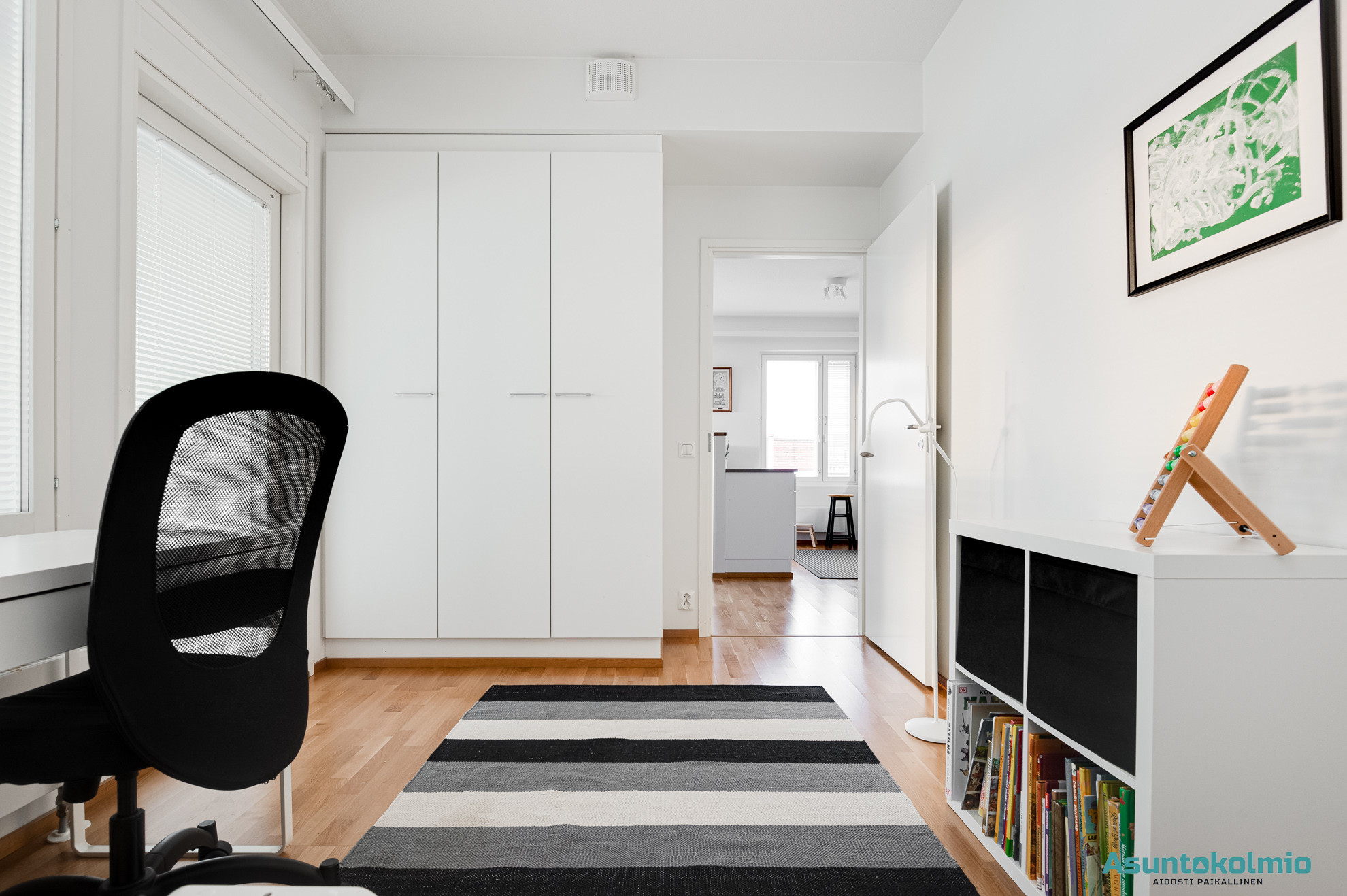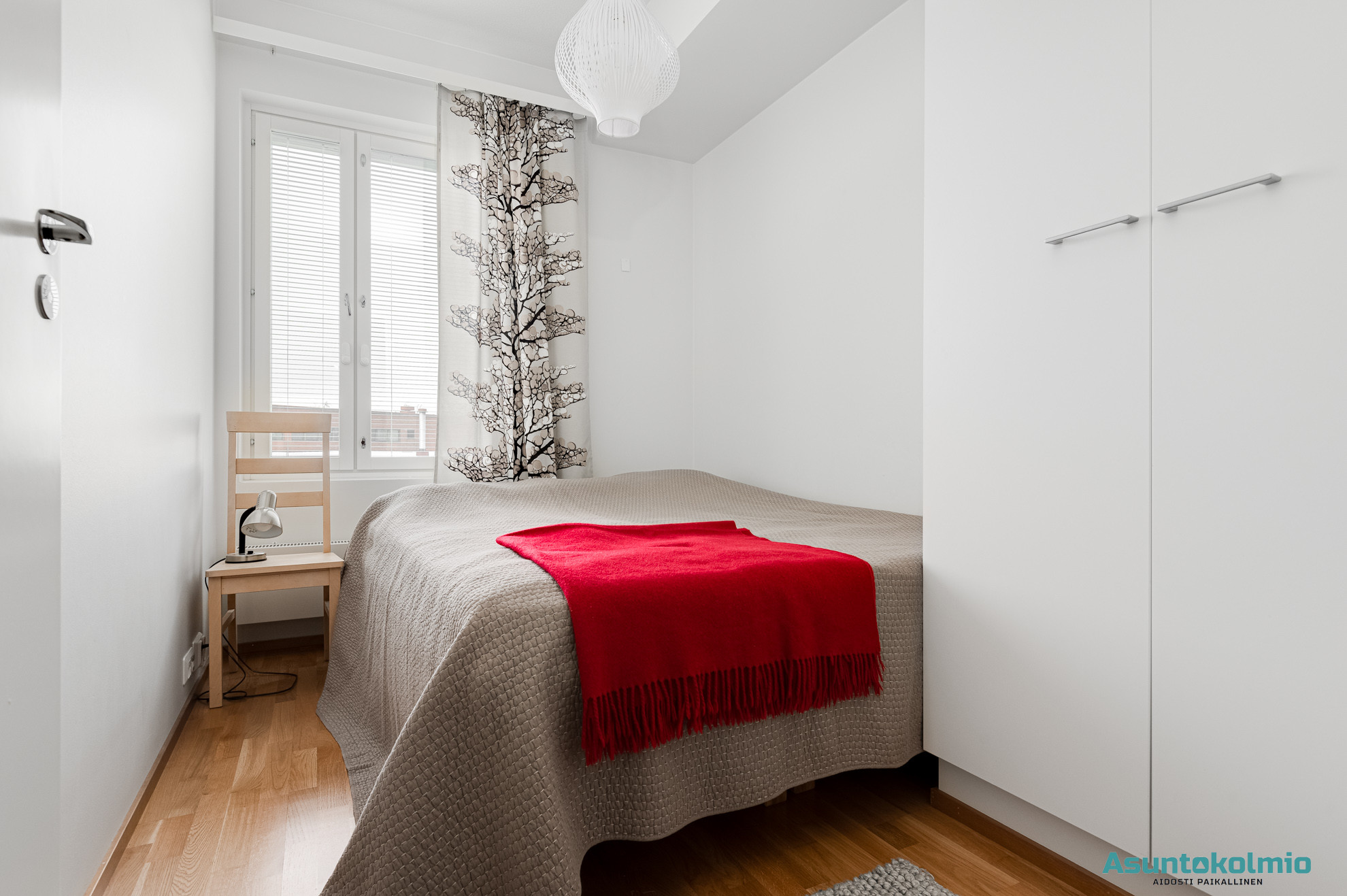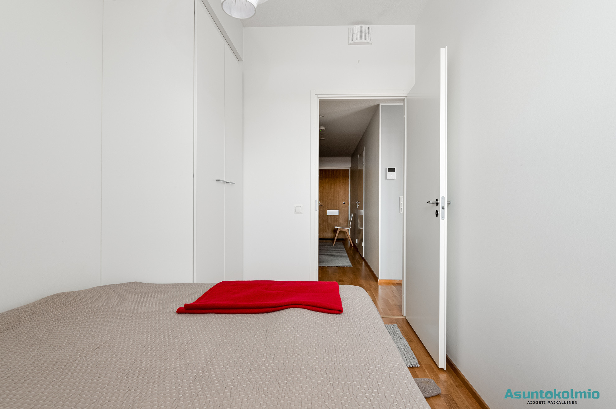 Pohjaratkaisultaan asunto on erittäin fiksu. Keittiö ja olohuone on yhtä avointa, valoisaa tilaa, missä on helppo seurustella ja mikä on kätevä sisustaa. Keittiössä on laadukkaat kodinkoneet ja mukavasti laskutilaa. Päämakuuhuoneesta on käynti ihastuttavalle, lasitetulle parvekkeelle. Erillinen wc ja hyvät säilytystilat helpottavat arjen sujuvuutta. Taloyhtiöllä OMA TONTTI, ja lämmitys kaukolämmöllä sisältyy edulliseen hoitovastikkeeseen (3.7 €/m²)!