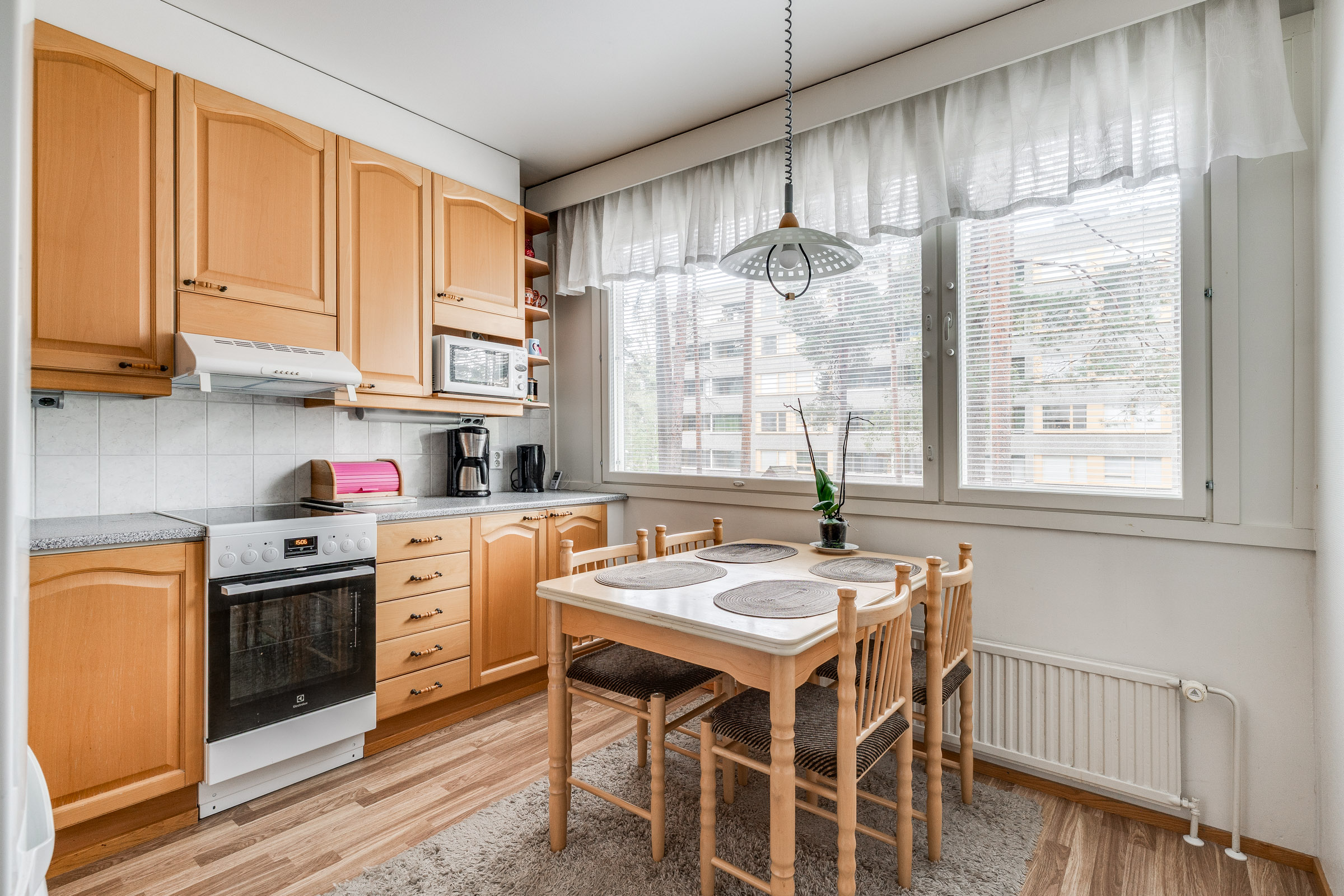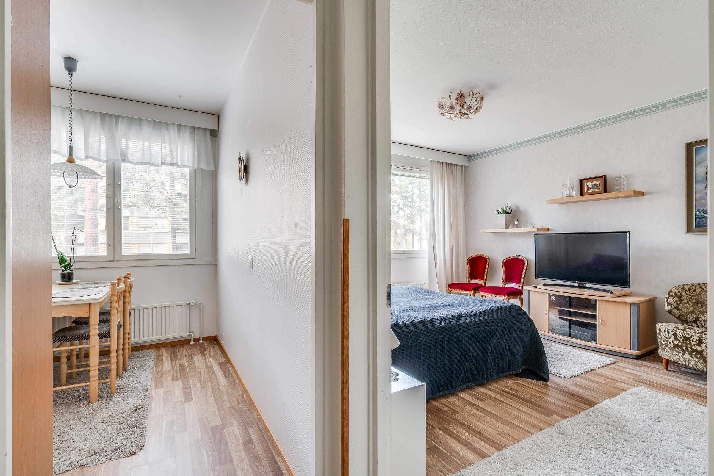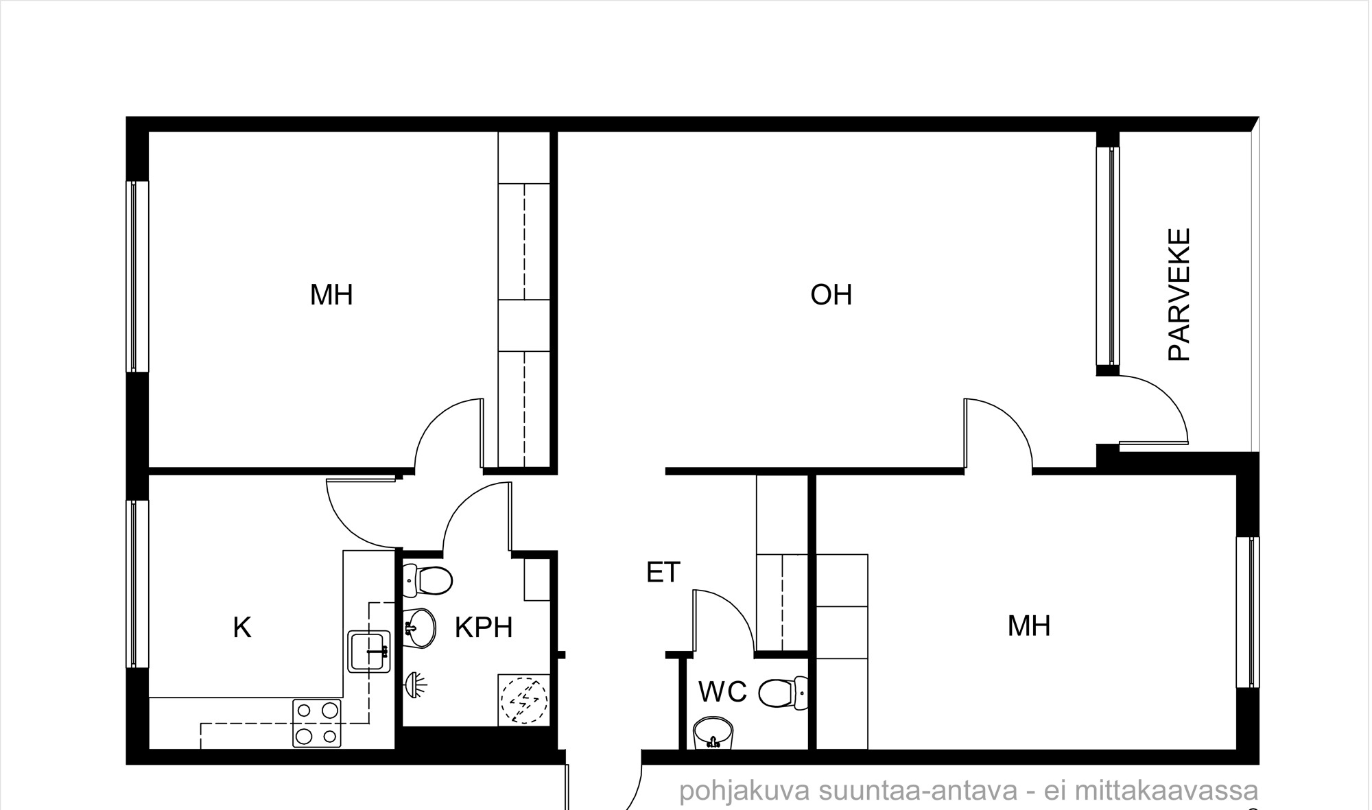 Asunnon 80 neliötä tarjoavat mukavasti tilaa perheelle tai pariskunnalle. Olohuoneen ja keittiön yhdistelmä luo avaran tilan, ja lasitettu parveke tuo lisämukavuutta ympäri vuoden. Kaksi makuuhuonetta tarjoavat rauhalliset tilat lepoon ja rentoutumiseen. Kylpyhuoneessa on pesukoneliitäntä, ja erillinen WC tuo arkeen sujuvuutta.