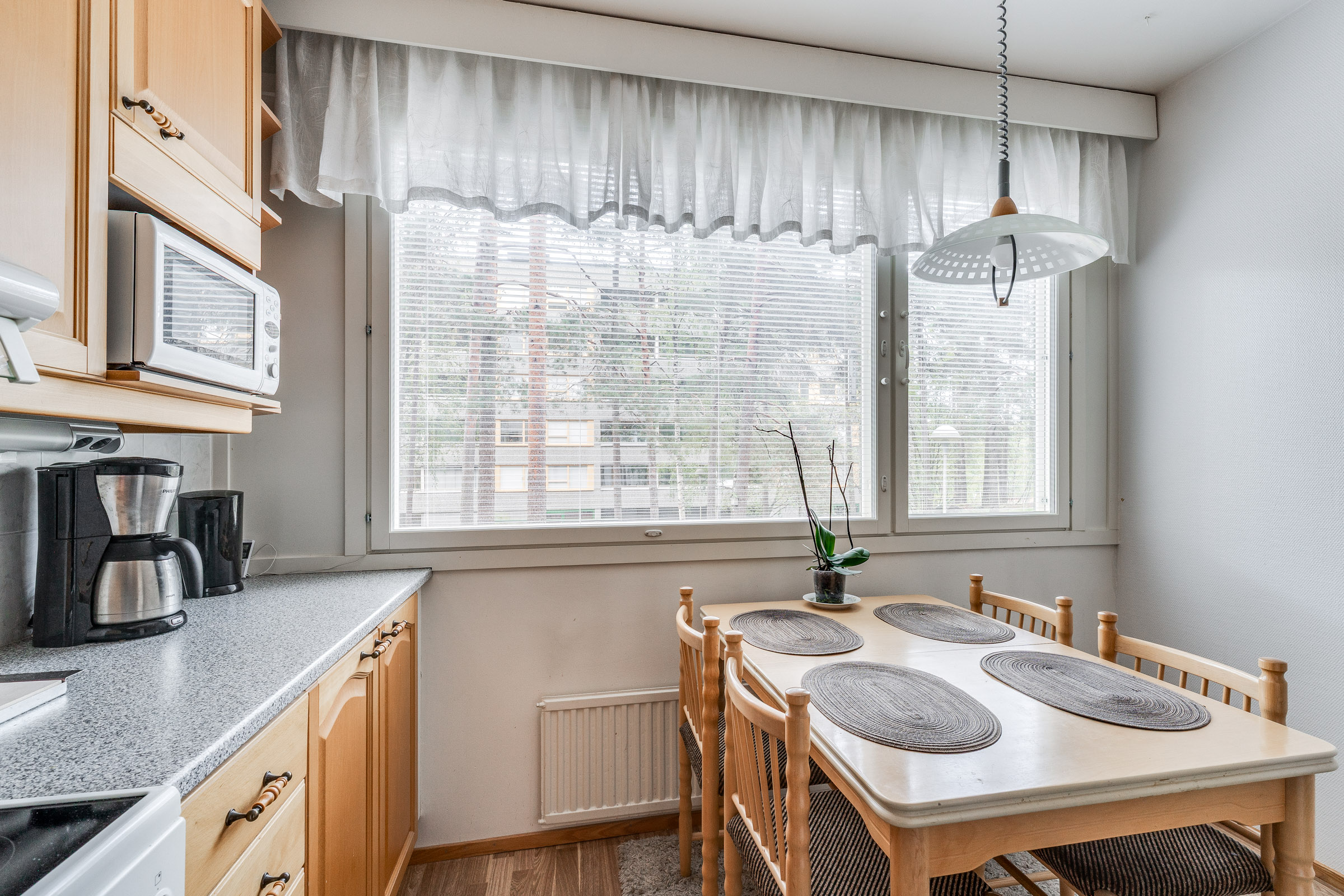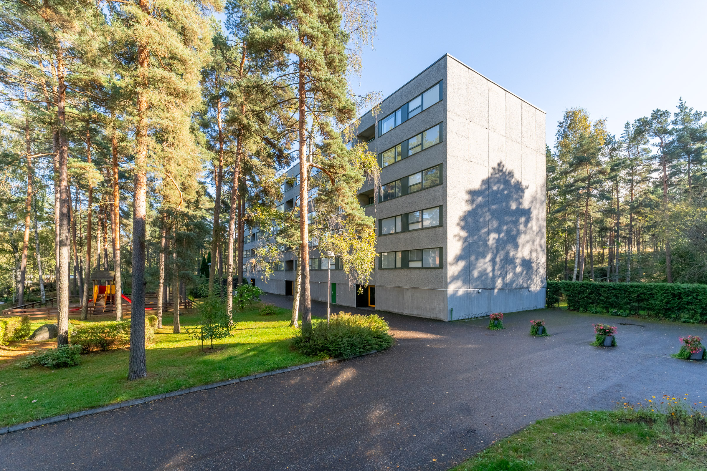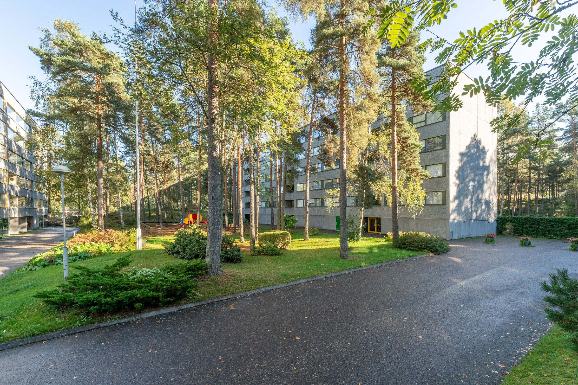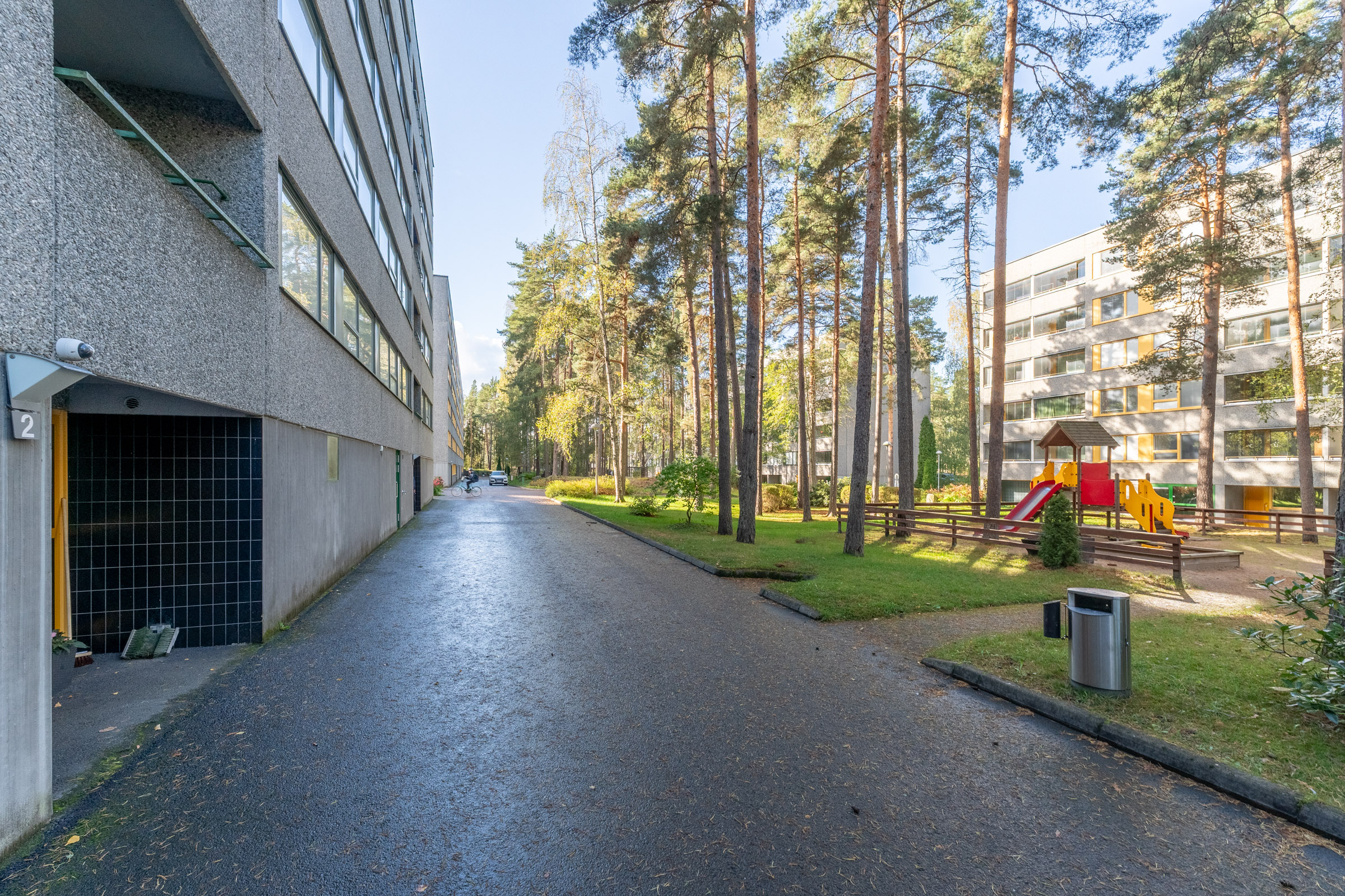 Sijainti on erinomainen: K-market on aivan vieressä ja Länsikeskus vain parin kilometrin päässä. Lähistöllä ovat myös koulut ja päiväkodit, joten arki sujuu vaivattomasti. Hyvät liikenneyhteydet takaavat helpon pääsyn keskustaan ja muihin kaupunginosiin.