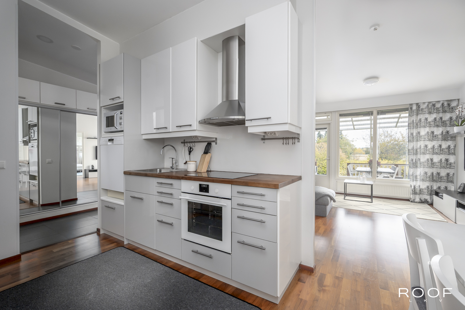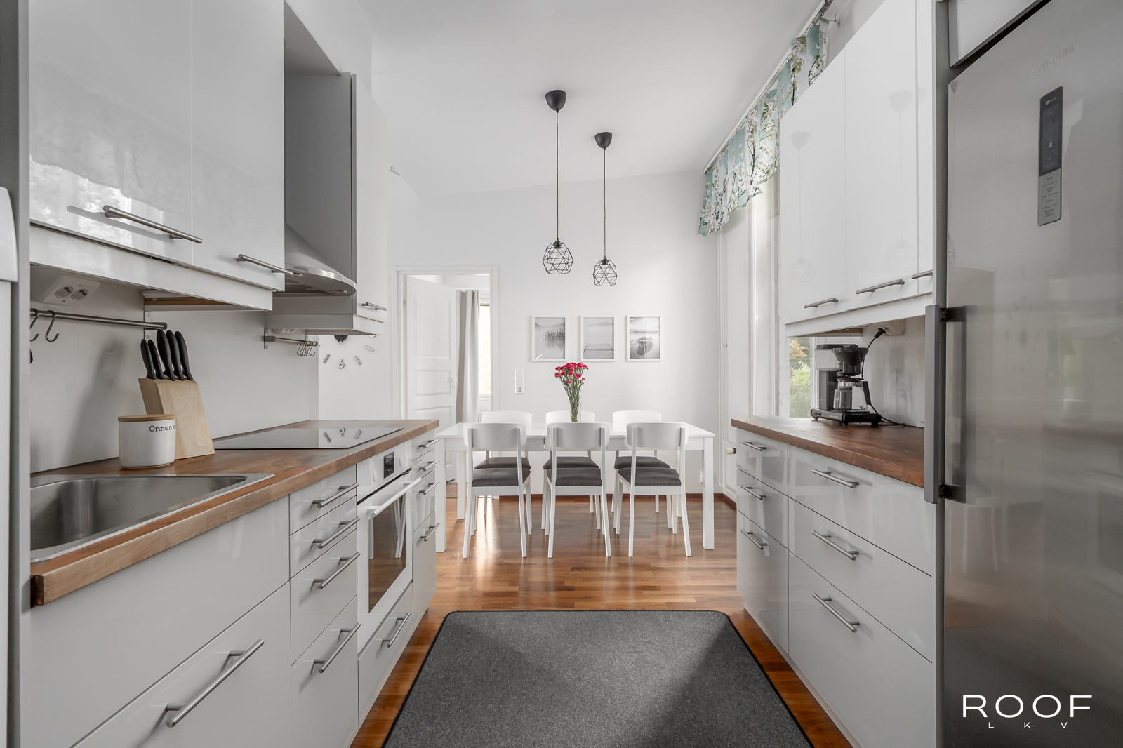 Vuonna 2017 huoneisto on saanut uuden ilmeen kattavan pintaremontin ja modernin keittiöuudistuksen myötä. Tyylikäs ja toimiva keittiö tarjoaa erinomaiset puitteet niin arjen ruoanlaittoon kuin viikonlopun herkutteluhetkiin. Vuonna 2019 uusittu saunaosasto tuo arkeen ripauksen luksusta.