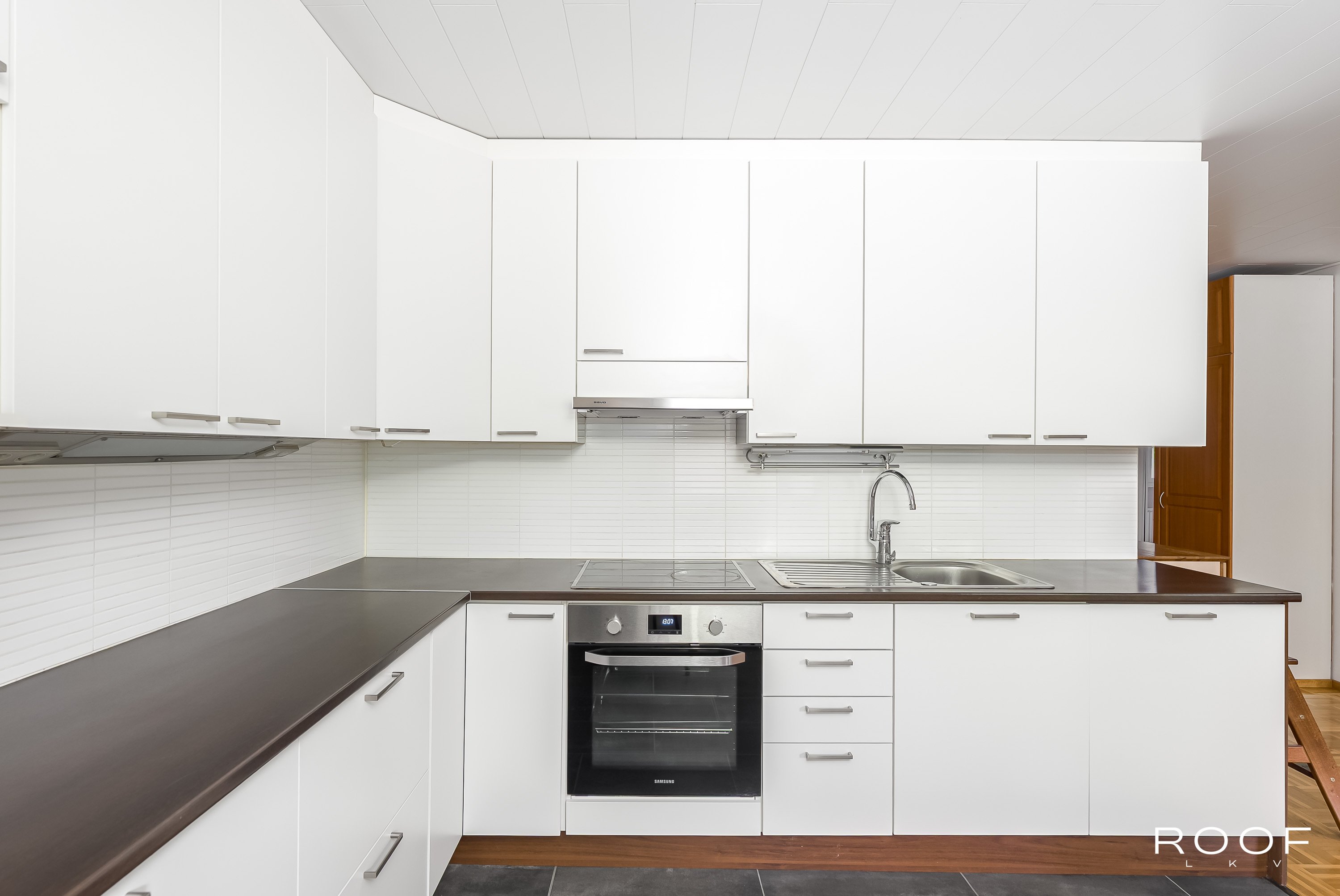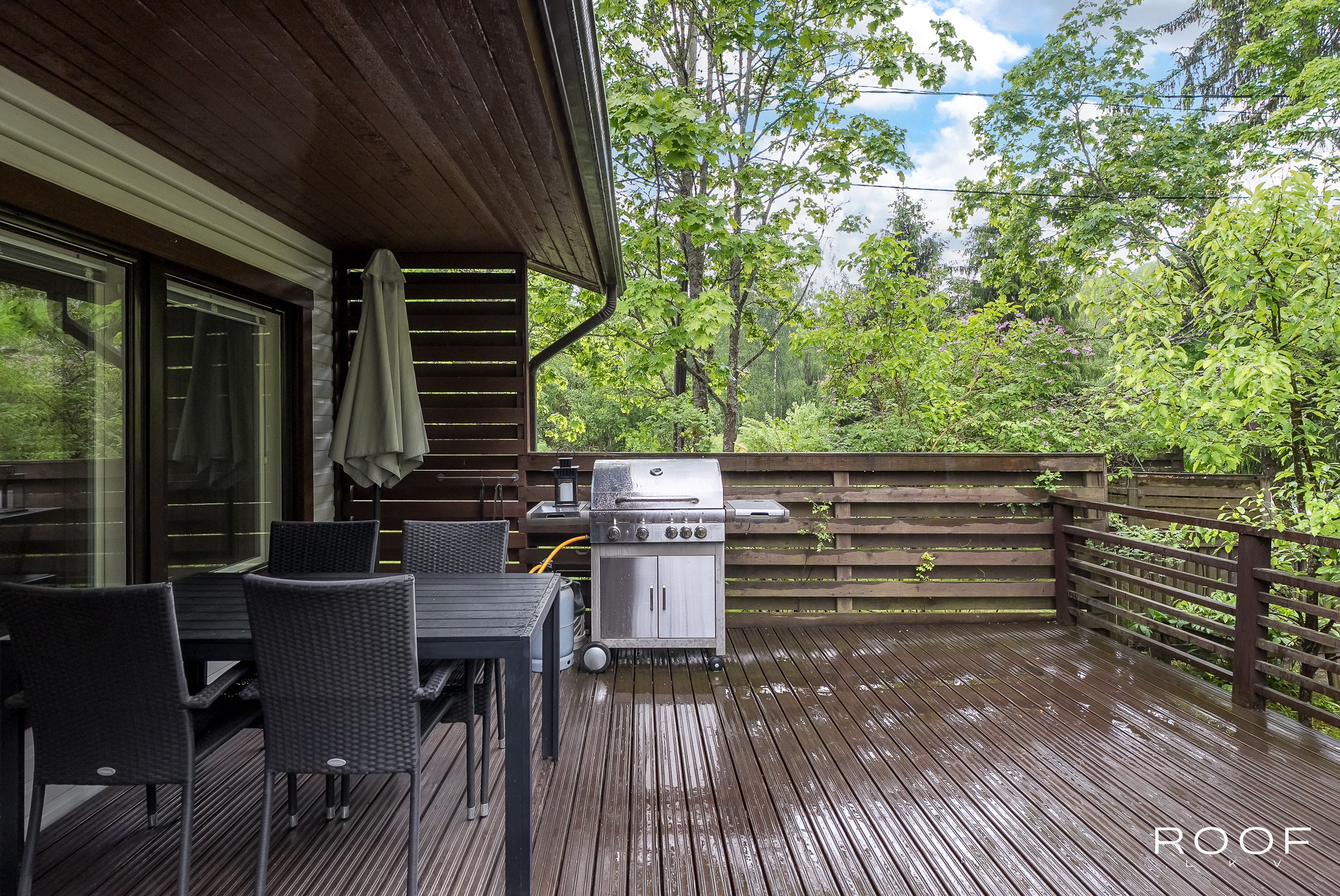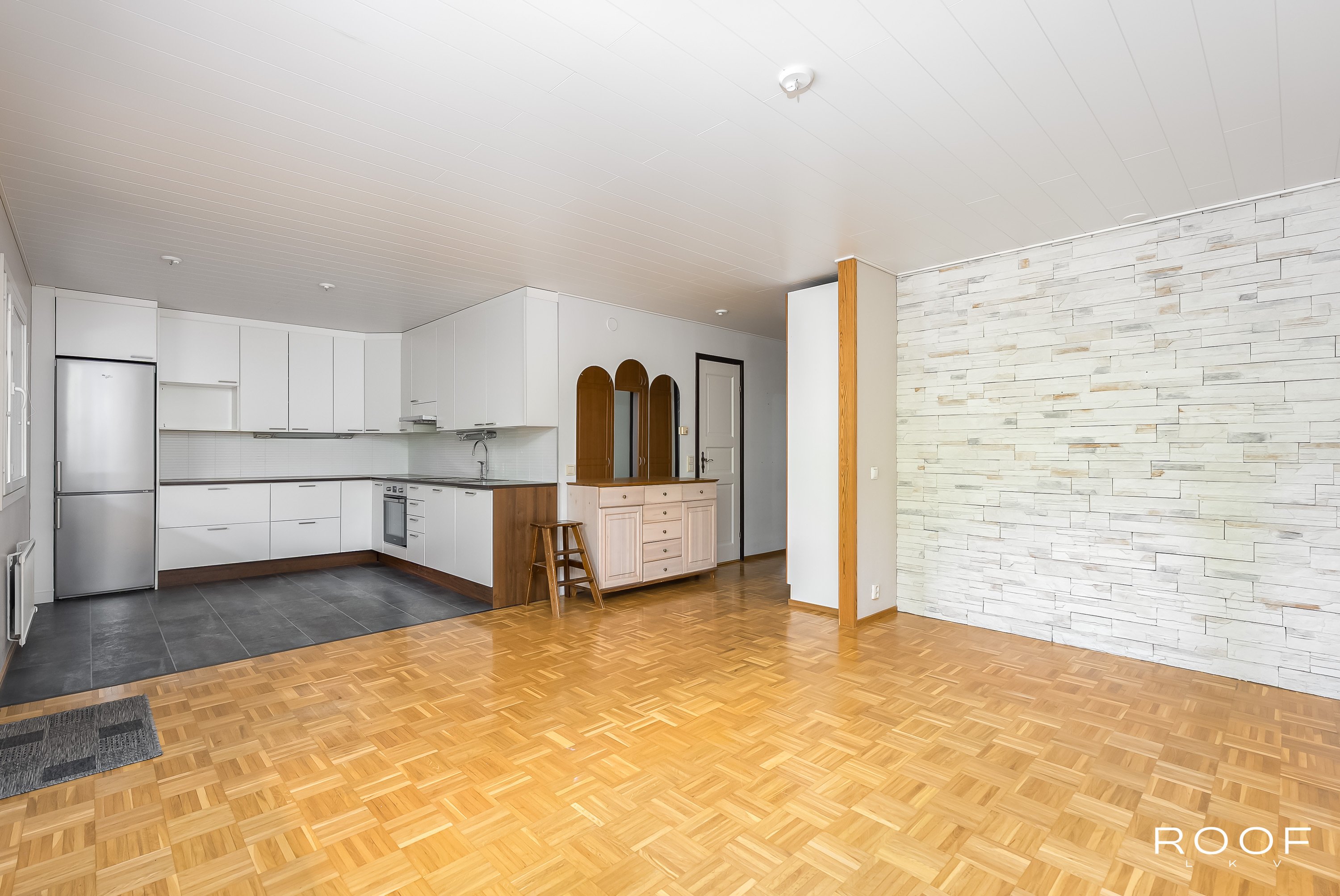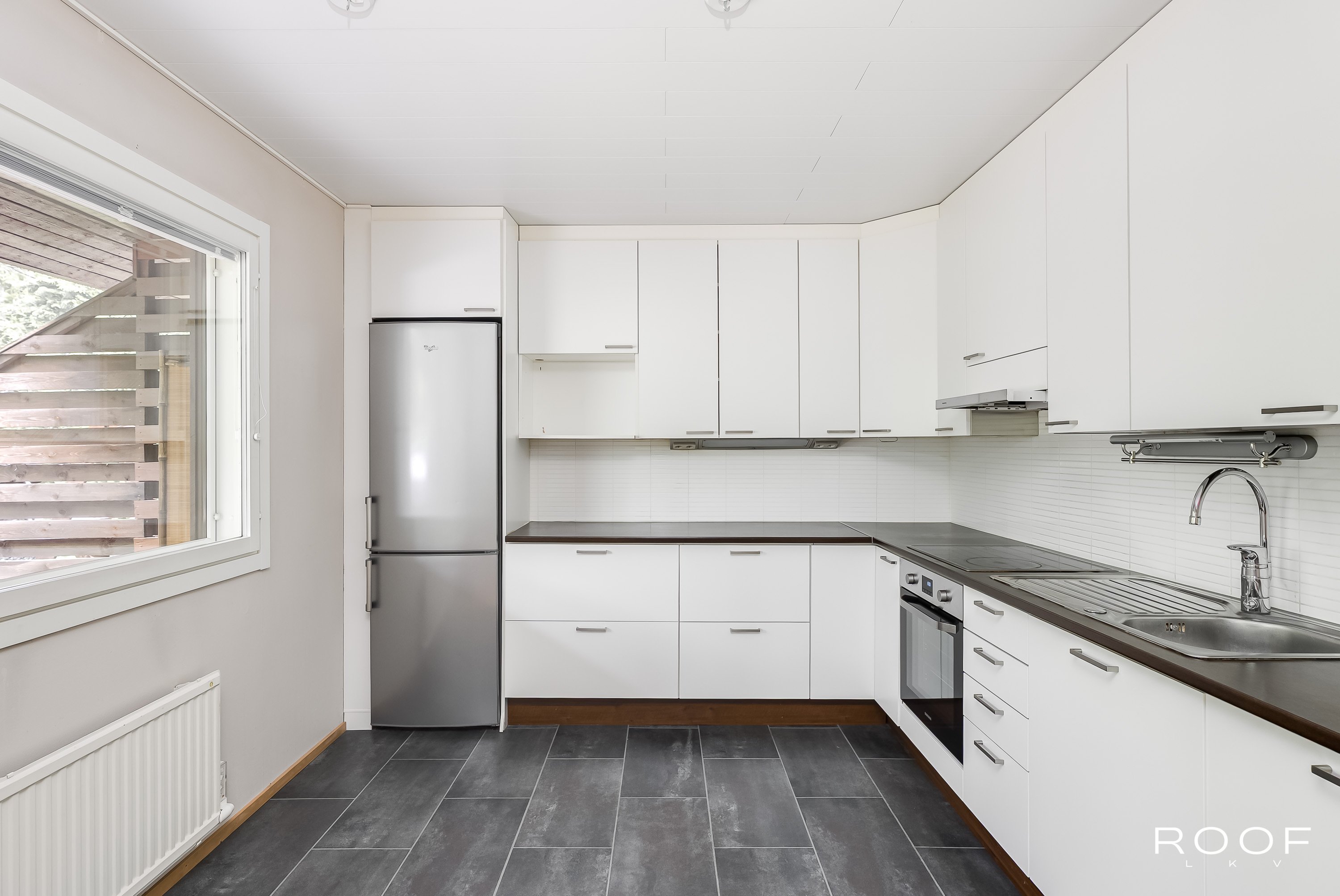 Tämän kodin pohjaratkaisu on toimiva ja tilaratkaisut sopivat hyvin pienelle perheelle tai pariskunnalle. Keittiöstä löytyy mukavasti kaappi- ja työtilaa. Olohuoneesta on kulku osittain katetulle lounaaseen avautuvalle terassille ja suojaisalle piha-alueelle, josta löytyy myös leikkimökki.