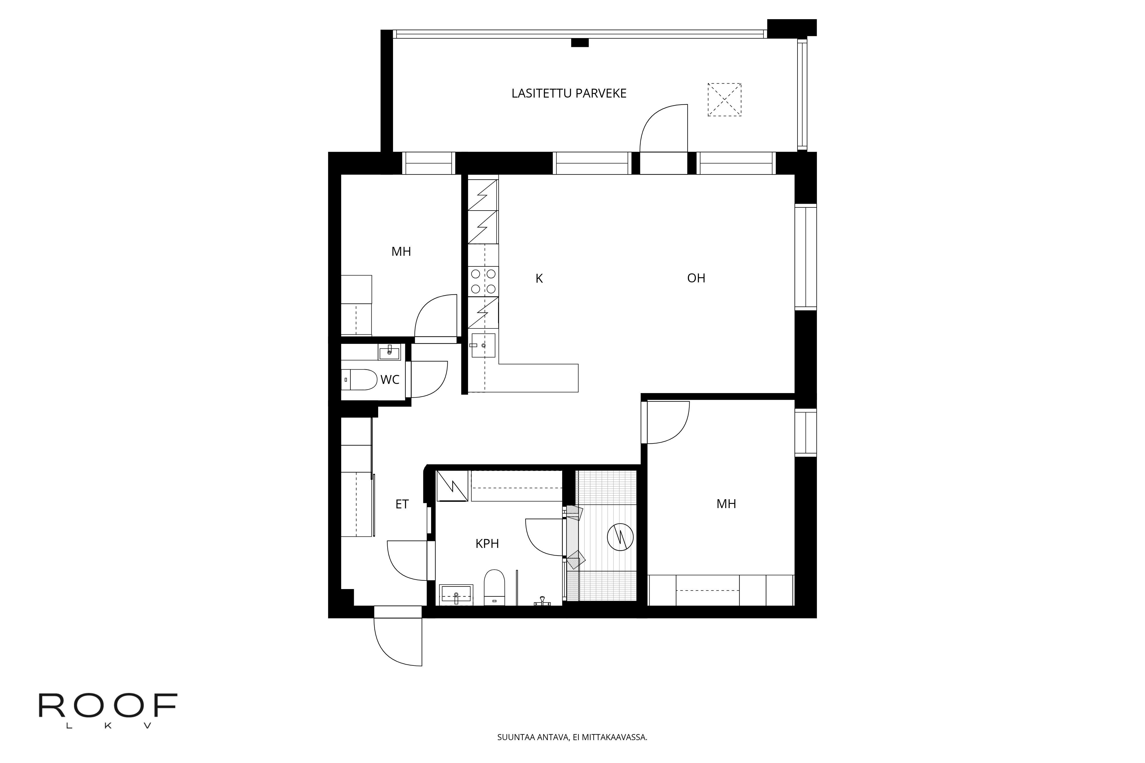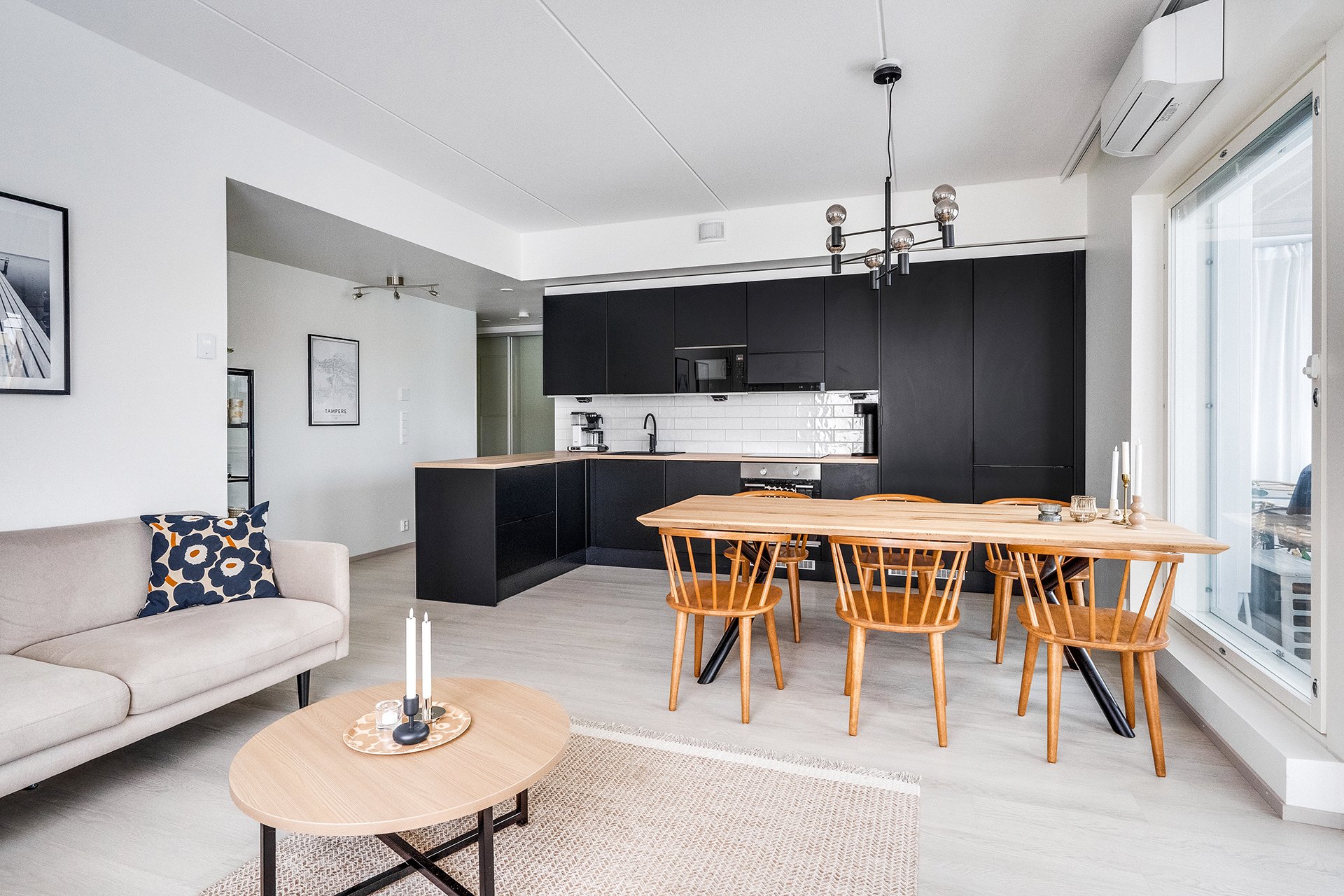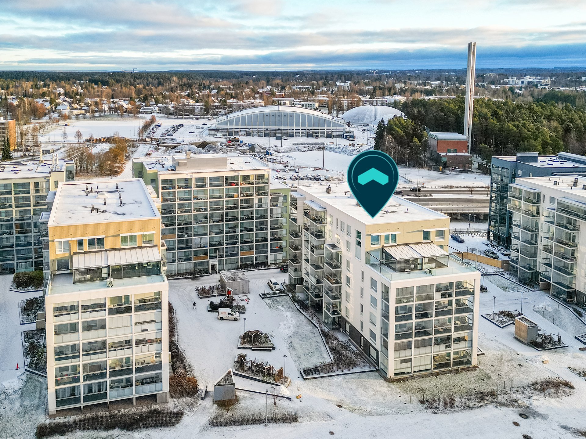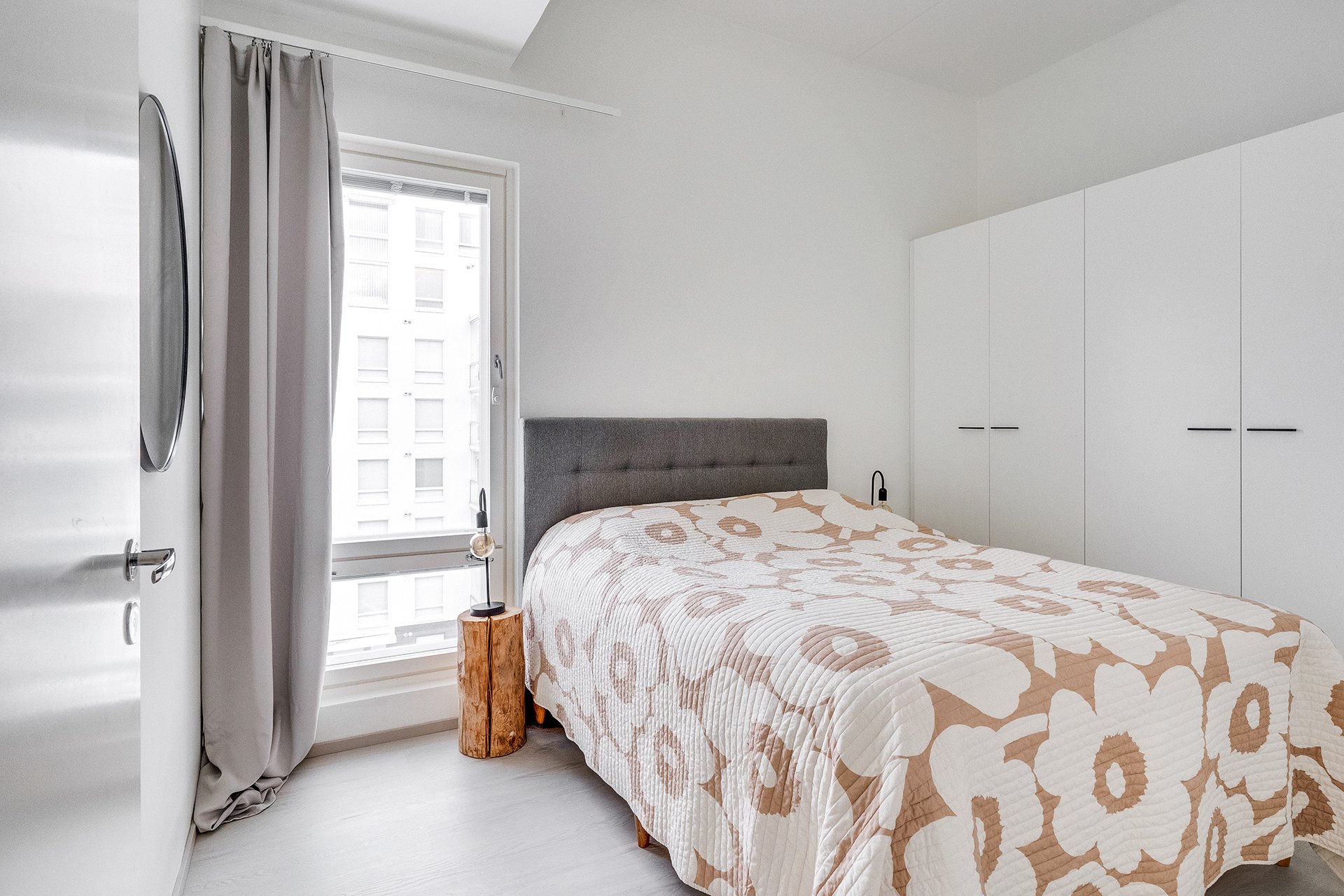 Nyt vapautumassa todella valoisa viidennen kerroksen huoneisto. Asunnossa on normaalia korkeampi huonekorkeus, joka lisää tilantuntua entisestään. Lisäksi asunnossa on paljon ikkunapinta-alaa joka täytyy kokea paikan päällä. Keittiöön on lisätty rakennusvaihdeessa kaappi- sekä laskutilaa ja ruokailutilaan mahtuu suurempikin ruokailuryhmä. Olohuoneesta on käynti isolle lasitetulle parvekkeelle, joka antaa mahdollisuuden moneen käyttötarkoitukseen. Kaksi makuuhuonetta sijoittuu eri puolille huoneistoa tuoden lisää yksity...