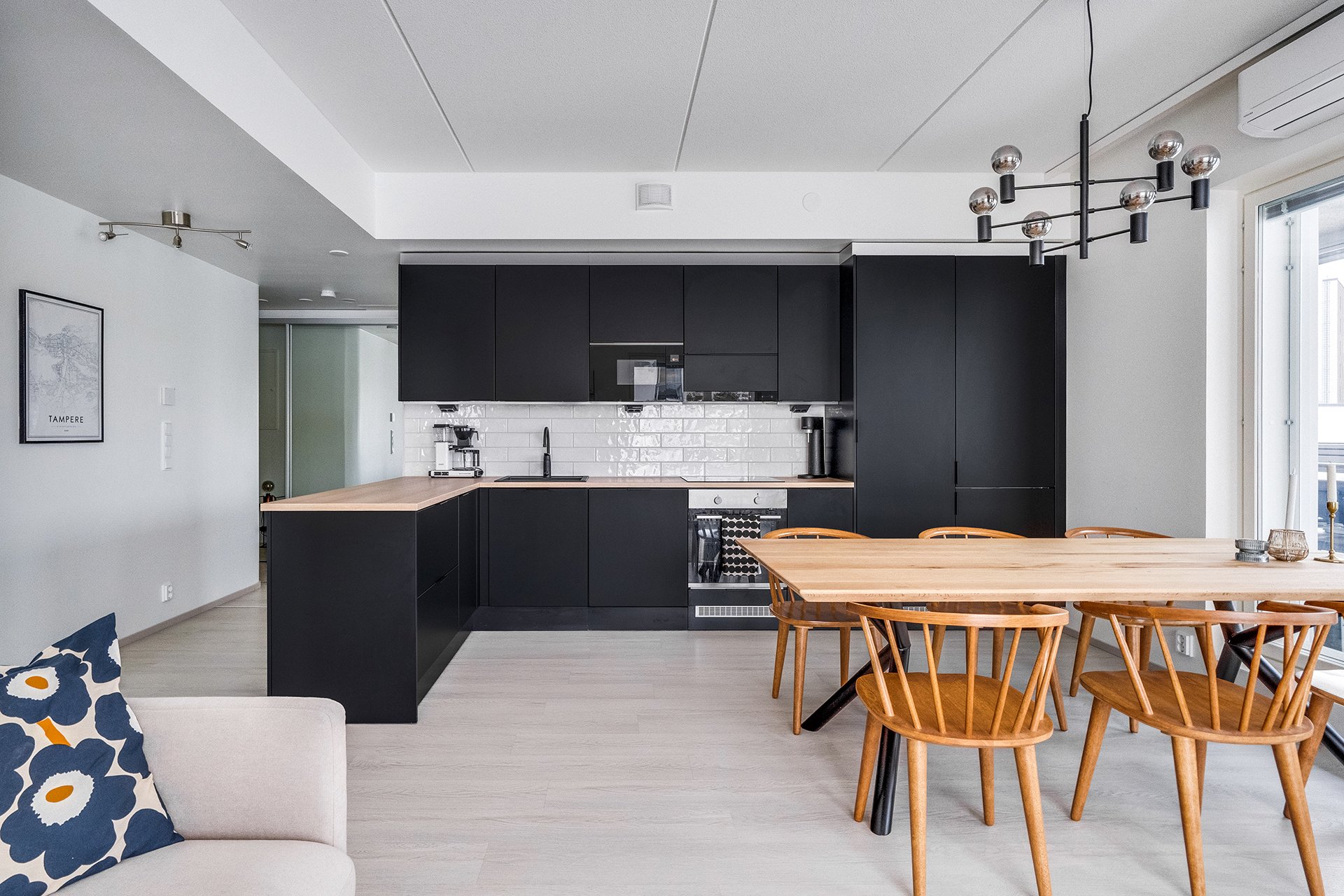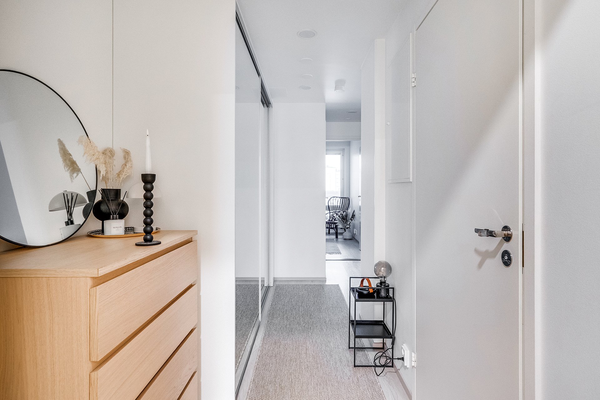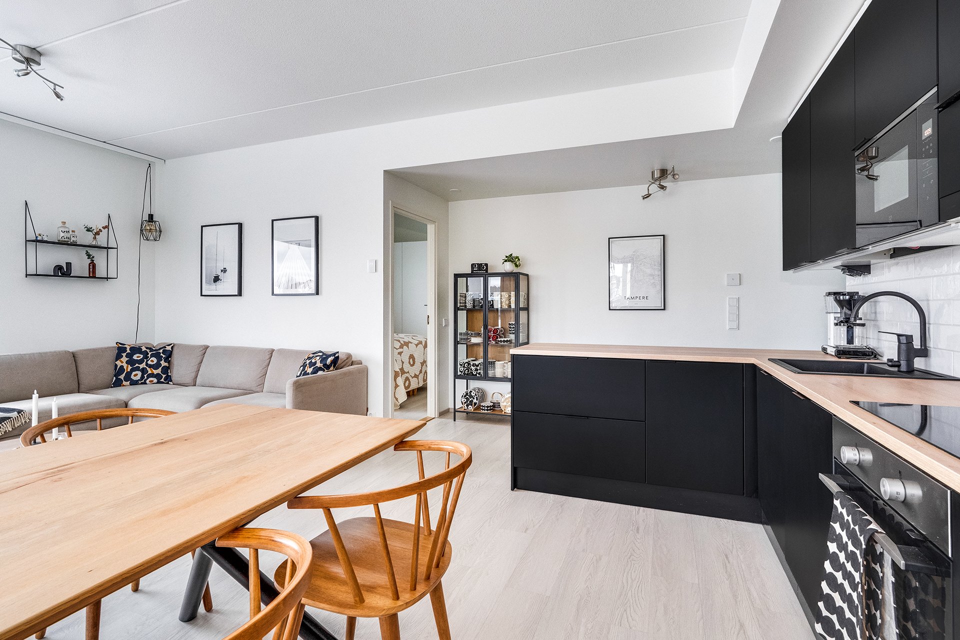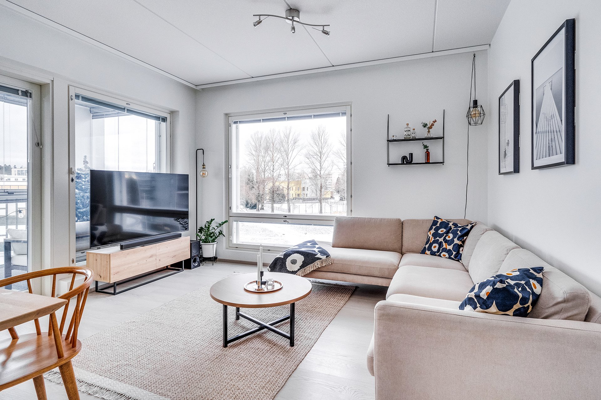 Nyt vapautumassa todella valoisa viidennen kerroksen huoneisto. Asunnossa on normaalia korkeampi huonekorkeus, joka lisää tilantuntua entisestään. Lisäksi asunnossa on paljon ikkunapinta-alaa joka täytyy kokea paikan päällä. Keittiöön on lisätty rakennusvaihdeessa kaappi- sekä laskutilaa ja ruokailutilaan mahtuu suurempikin ruokailuryhmä. Olohuoneesta on käynti isolle lasitetulle parvekkeelle, joka antaa mahdollisuuden moneen käyttötarkoitukseen. Kaksi makuuhuonetta sijoittuu eri puolille huoneistoa tuoden lisää yksity...