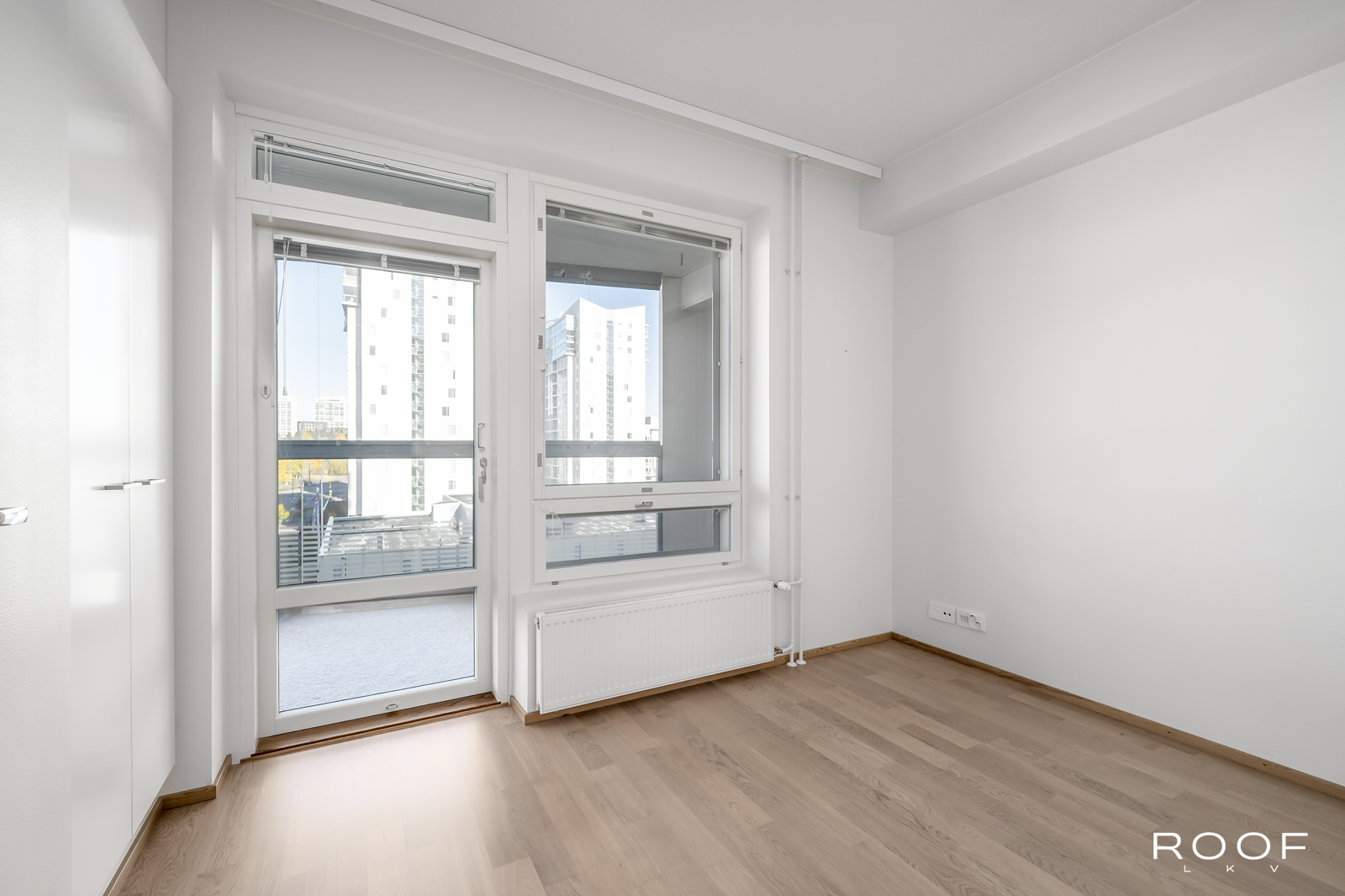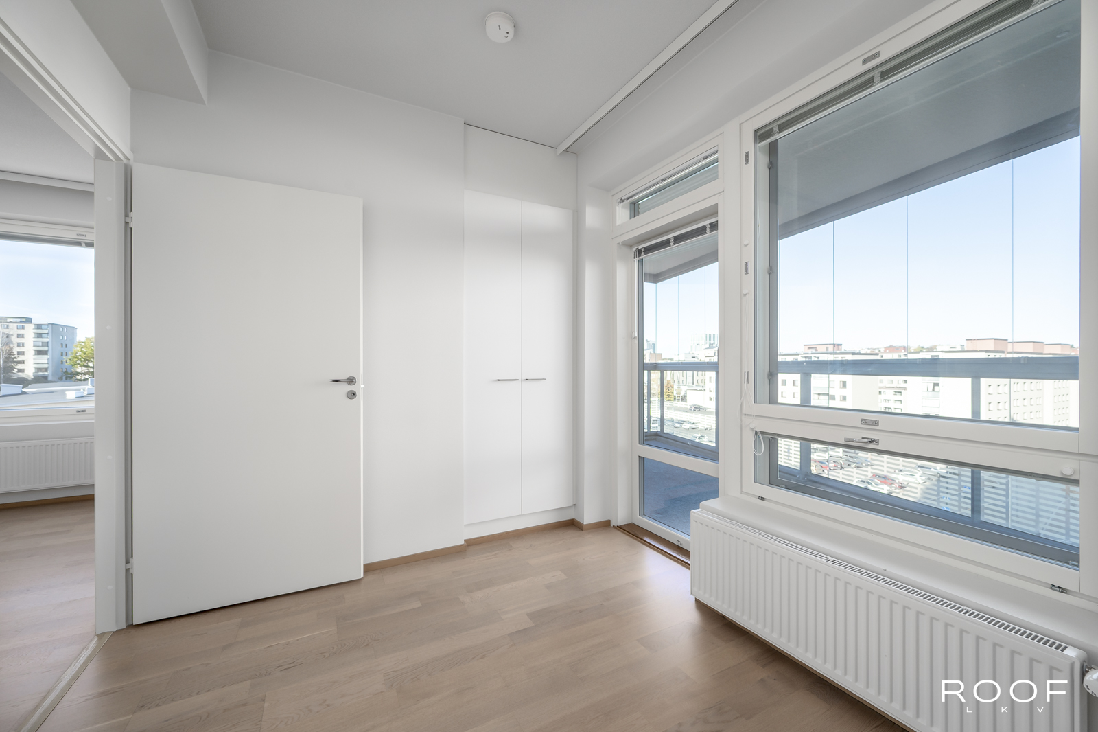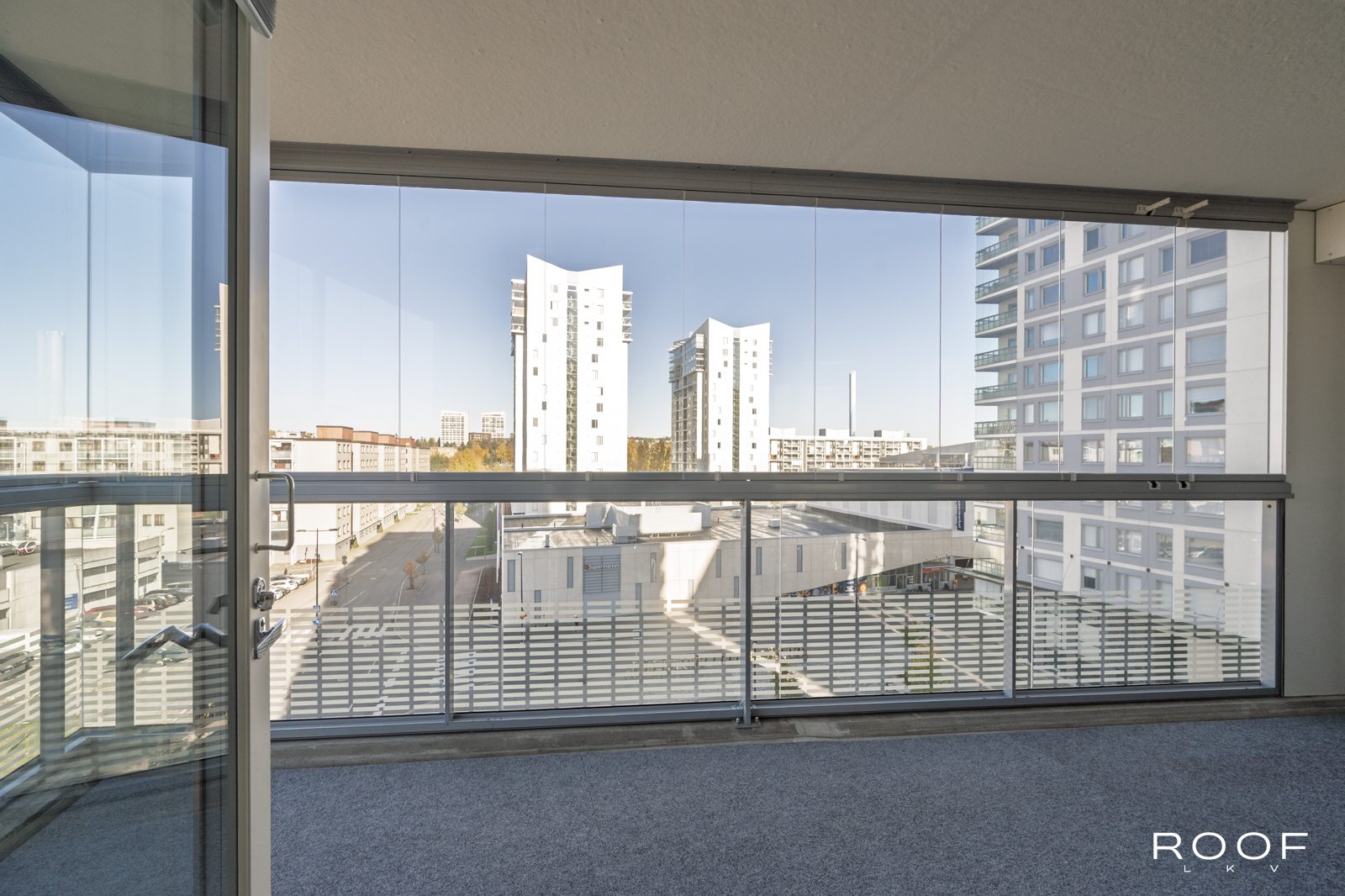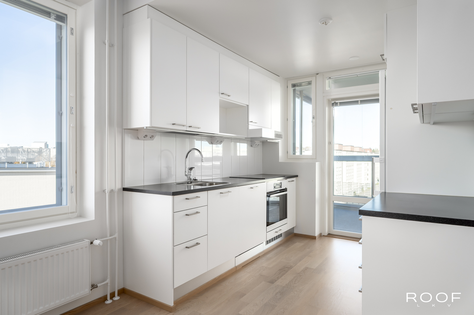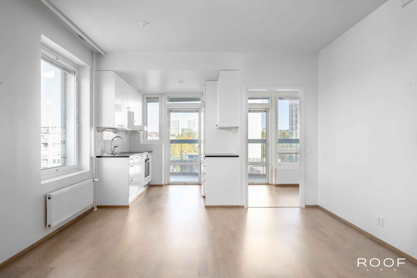 Tässä asunnossa olohuone ja keittiö muodostavat yhtenäisen, tilavan kokonaisuuden. Makuuhuoneet ovat sijoitettuina huoneen eri puolille ja toisesta makuuhuoneesta on pääsy lasitetulle parvekkeelle. Länteen suuntautuvat ikkunat tuovat asuntoon mukavasti luonnonvaloa ja tarjoavat miellyttävät näkymät ilta-auringon suuntaan. Lisäksi oman saunan lämmöistä pääset rentoutumaan tilavalle lasitetulle parvekkeelle, joka tarjoaa niin lisätilaa oleskeluun, kuin myös paikan nauttia auringosta ja rauhallisista näkymistä ympäri vuoden.