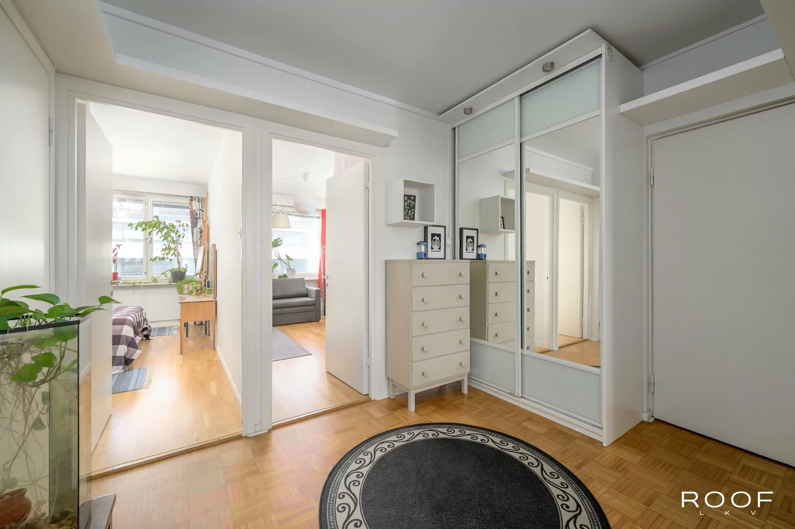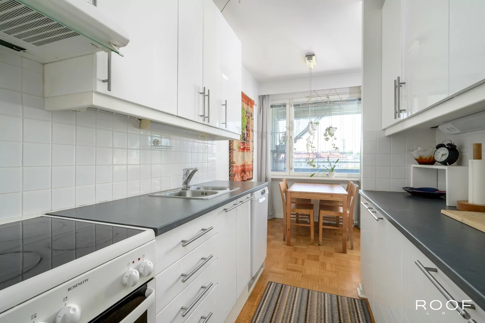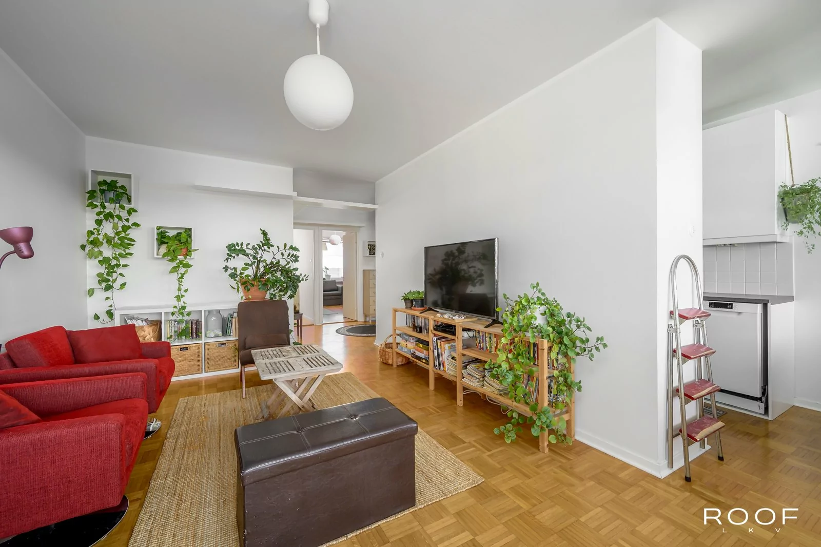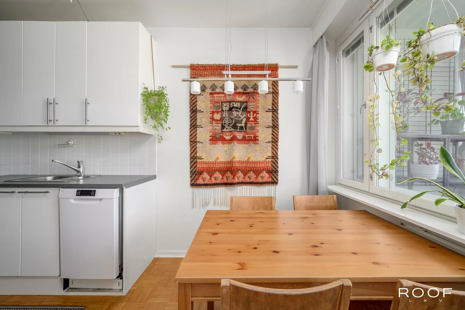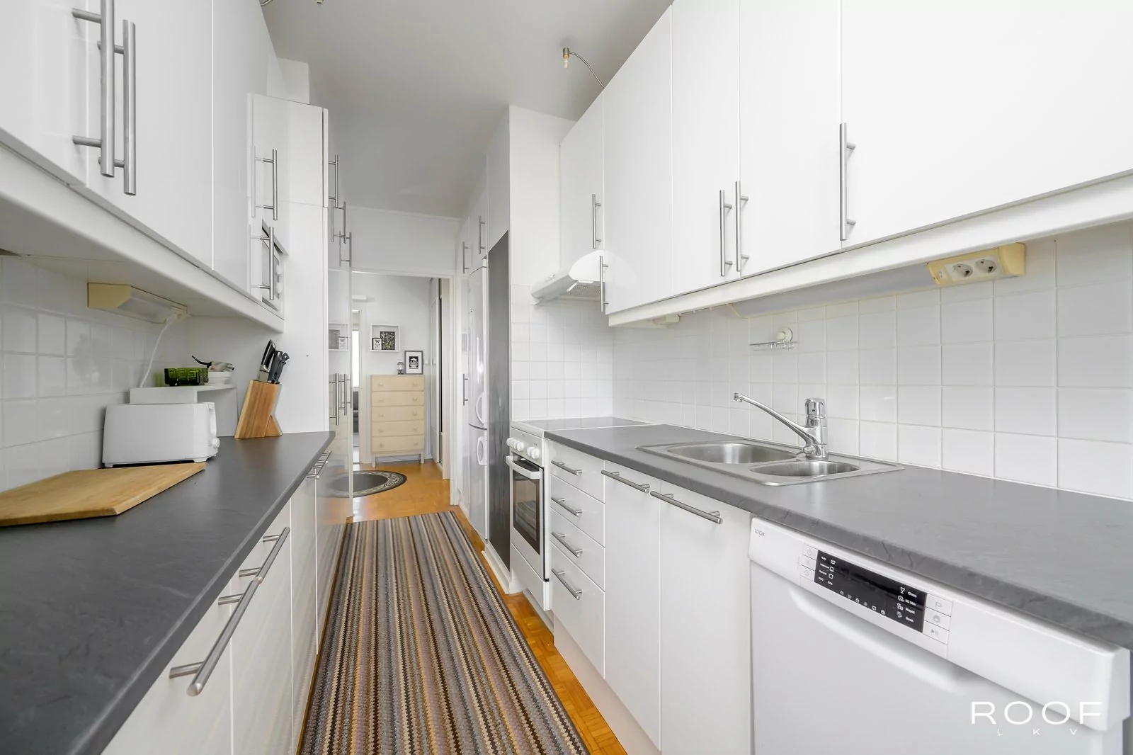 Keittiössä on hyvin kaappi- ja laskutilaa, mikä tekee ruoanlaitosta ja arjen järjestelyistä vaivatonta. Molemmat makuuhuoneet ovat tilavia ja helposti kalustettavia, joten niihin mahtuu niin perheen arki kuin etätyöpistekin. Asunto on kokonaisuudessaan valoisa ja toimiva.