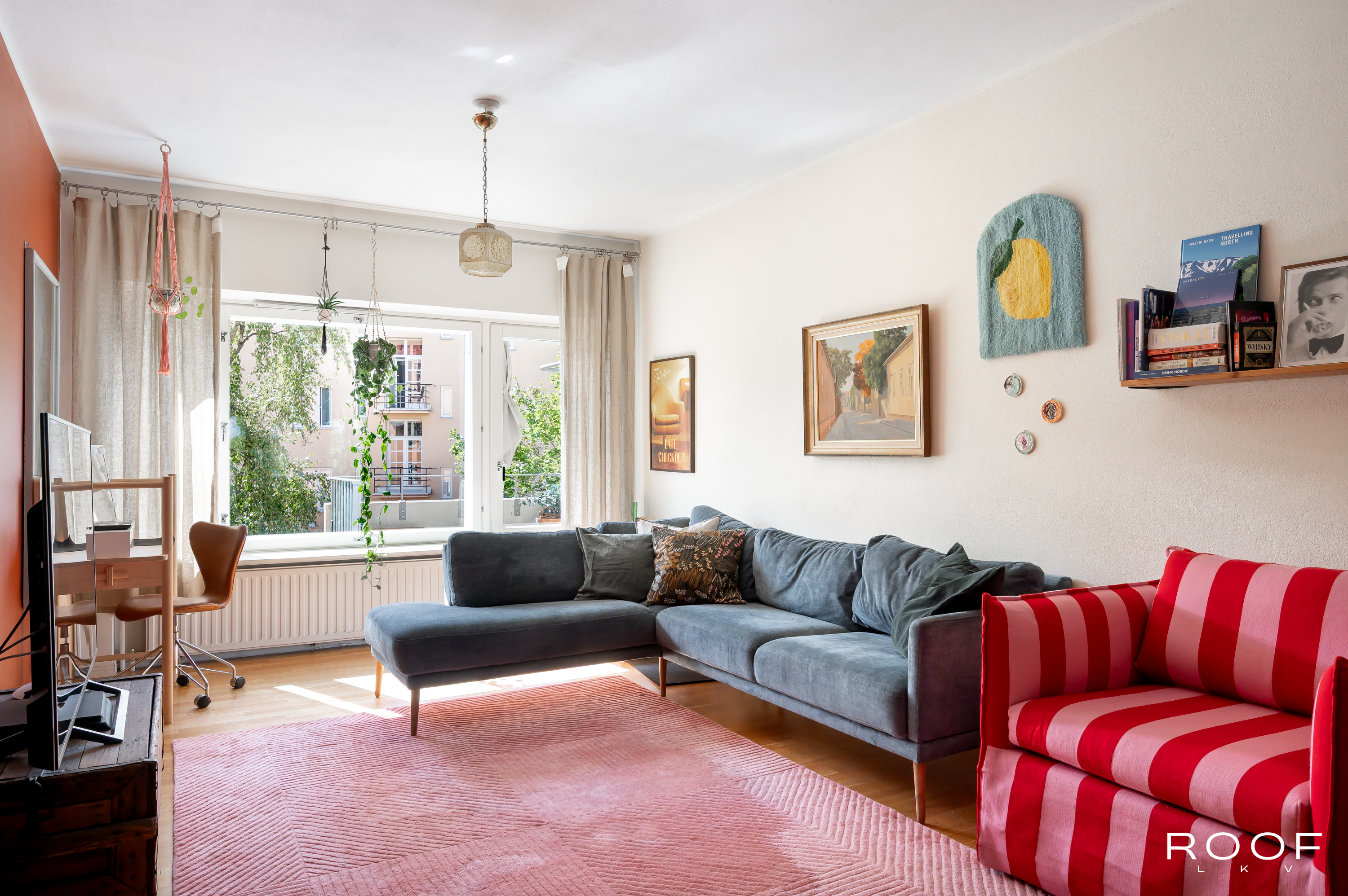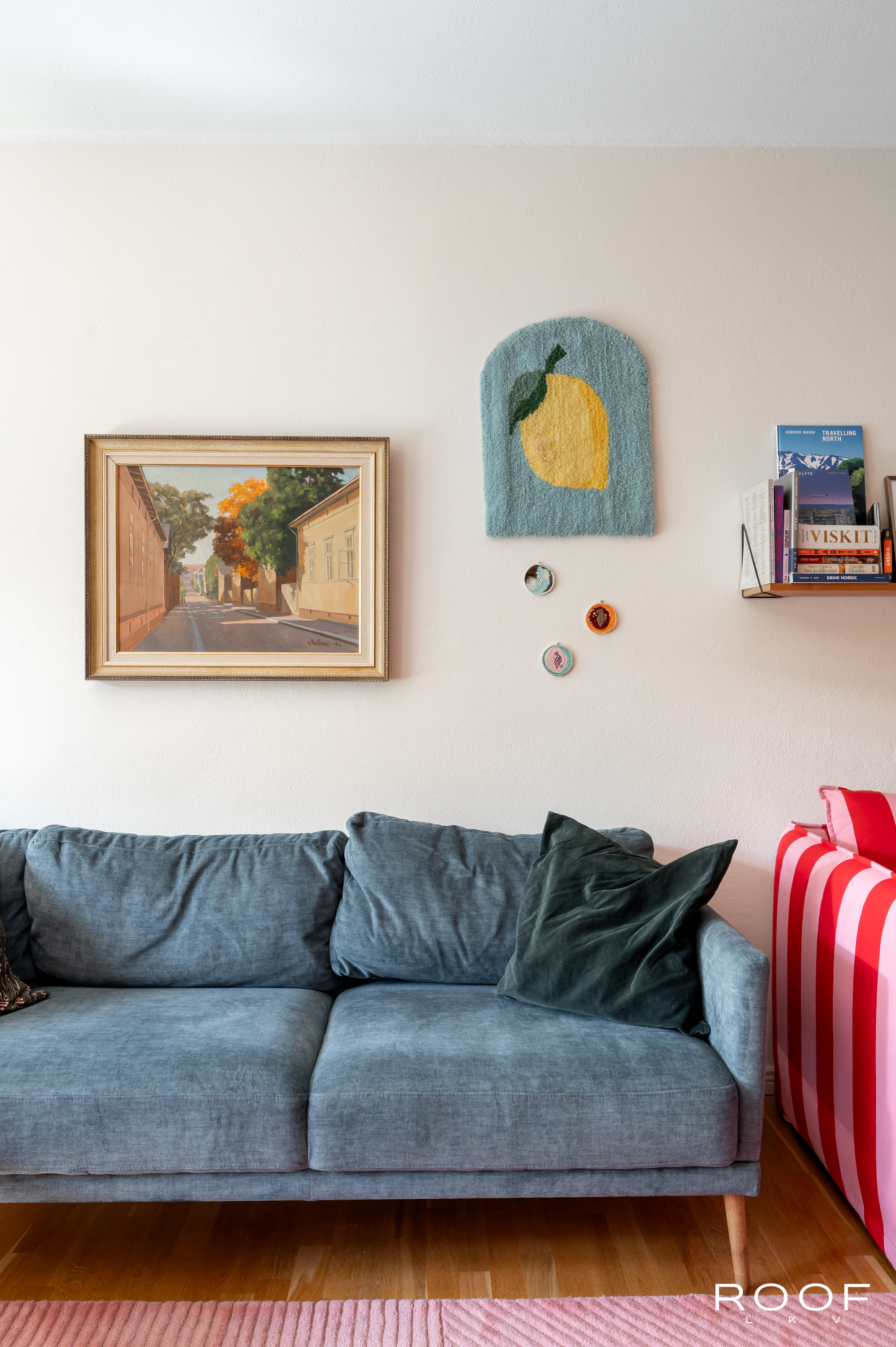 Kodin sydän on avara olohuone, joka kutsuu rentoutumaan ja viettämään aikaa yhdessä. Tänne mahtuu helposti suurempikin ruokailuryhmä. Olohuoneen jatkeena on pieni, sisäpihalle avautuva viihtyisä parveke, jossa on mukava nauttia aamukahvit tai hengähtää päivän päätteeksi.