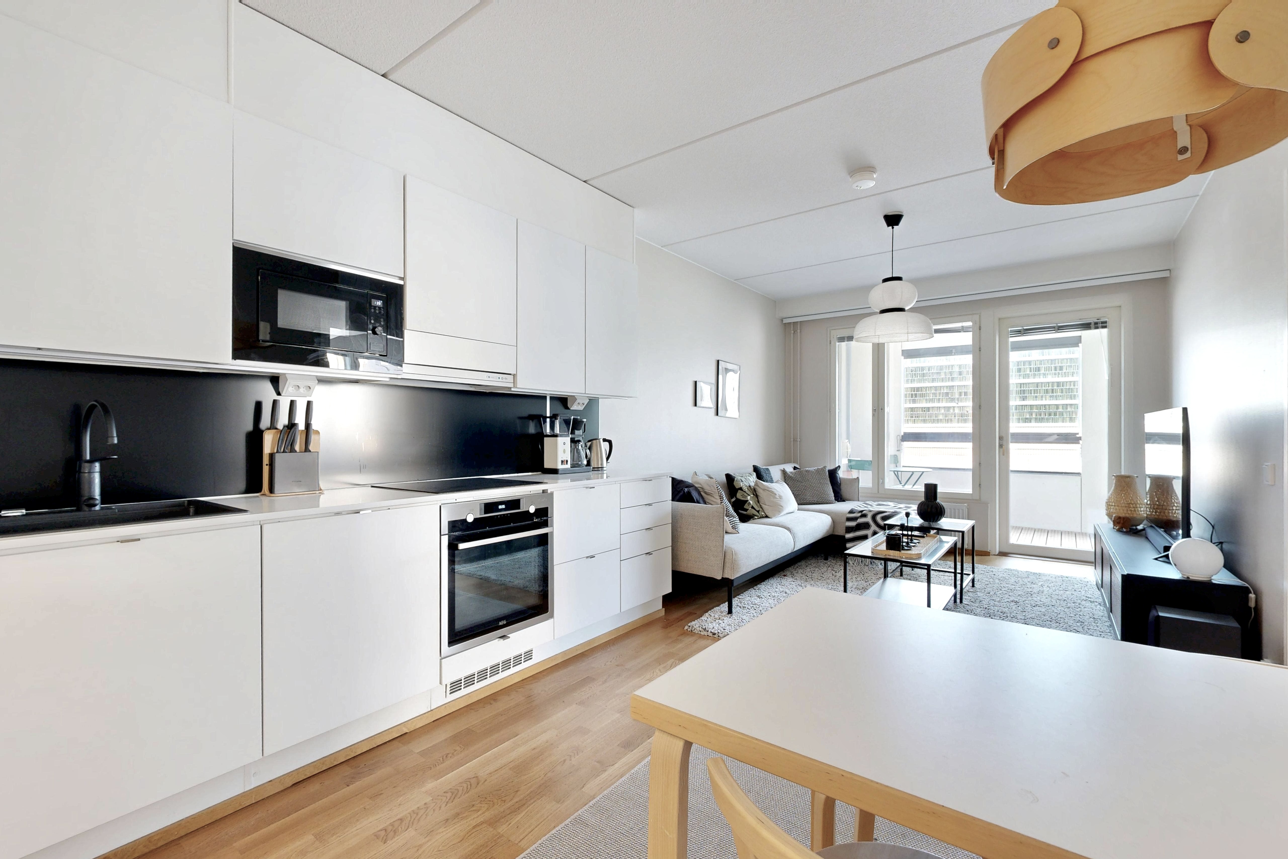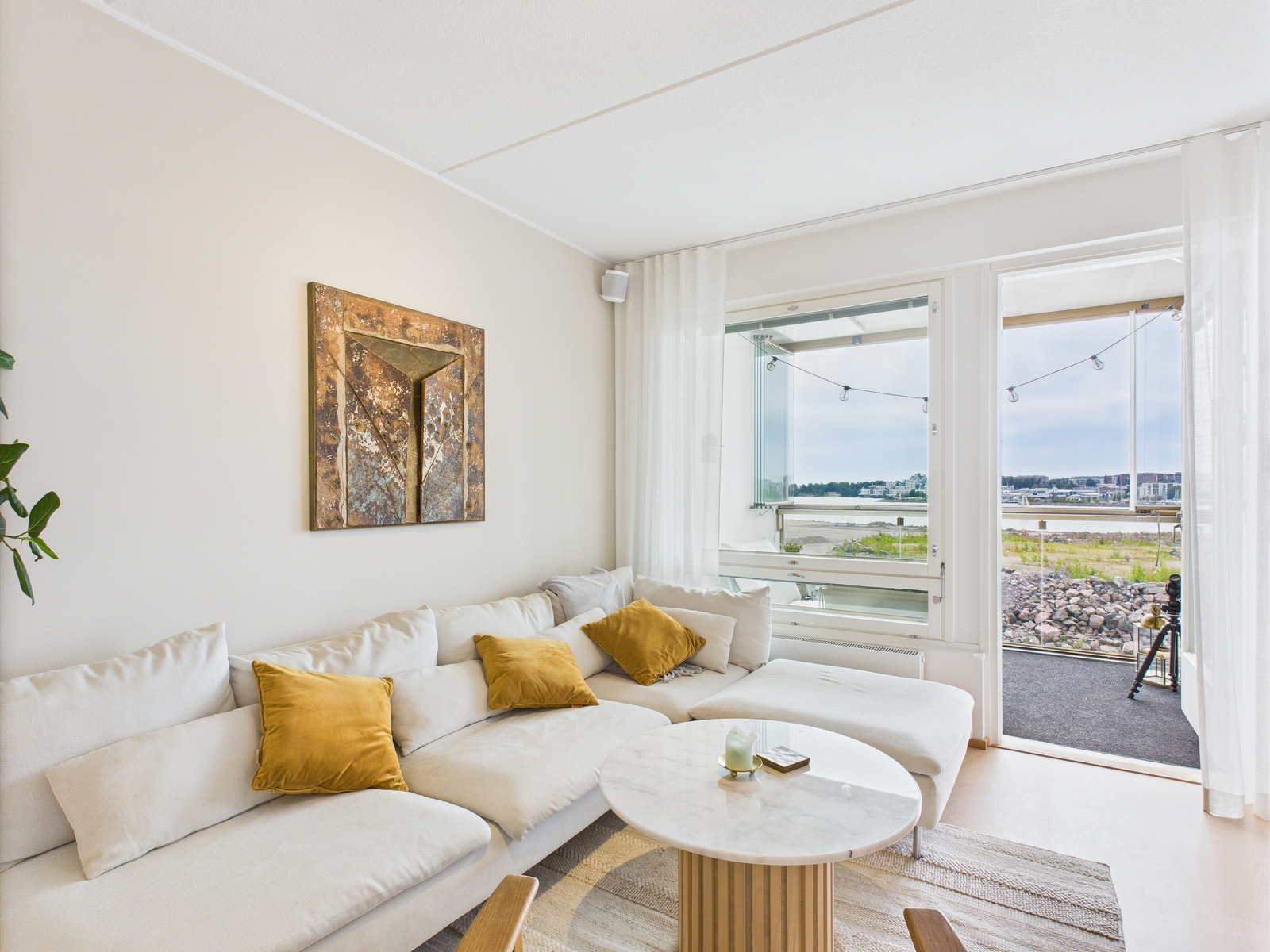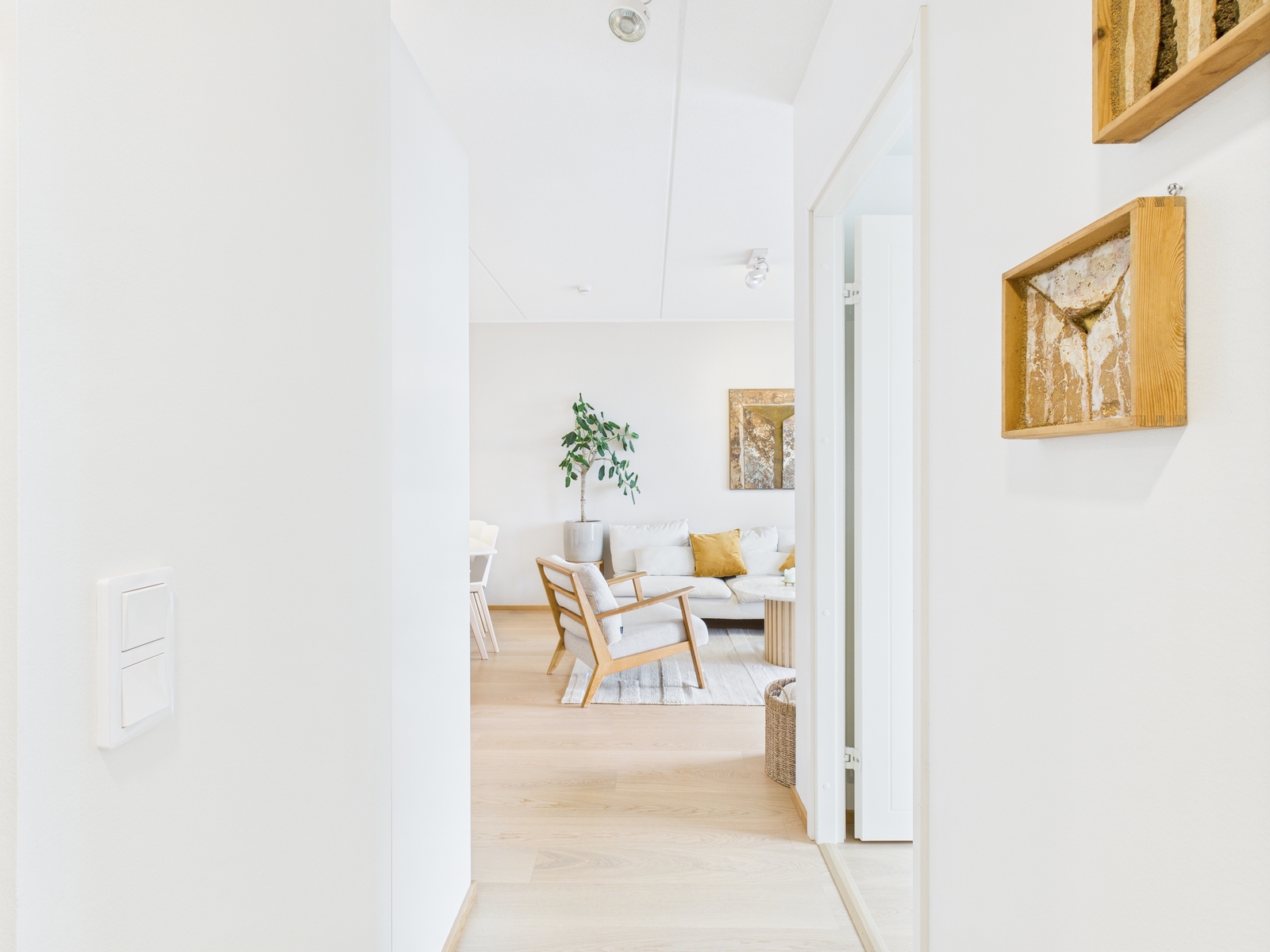 Asunnossa yhdistyvät laadukas toteutus, erinomainen pohjaratkaisu ja tehokkaasti hyödynnetyt neliöt kokonaisuus on sekä käytännöllinen että viihtyisä.