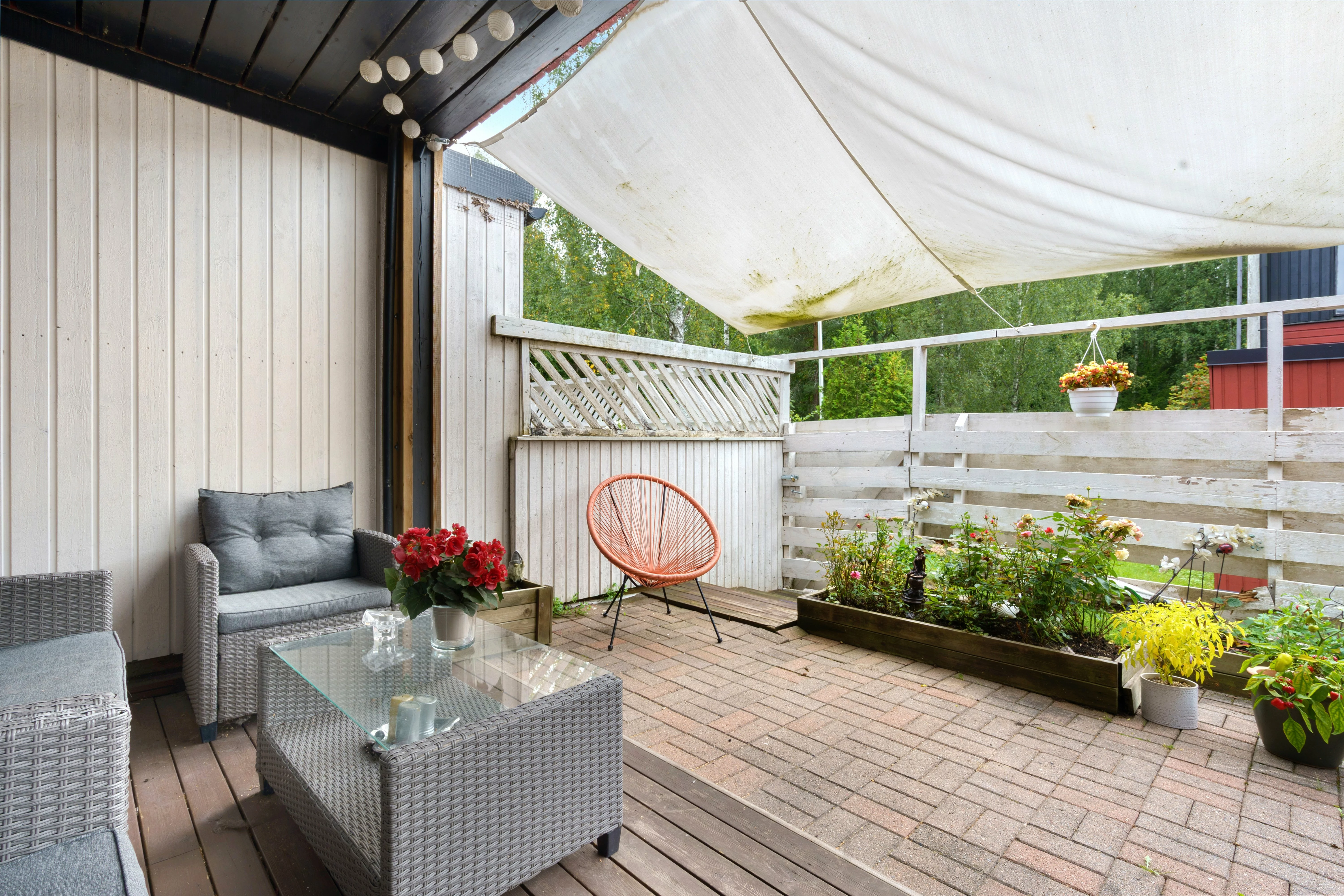 Oma sauna, parveke ja tilava piha tekevät arjesta sujuvaa ja viikonlopuista rentouttavia.